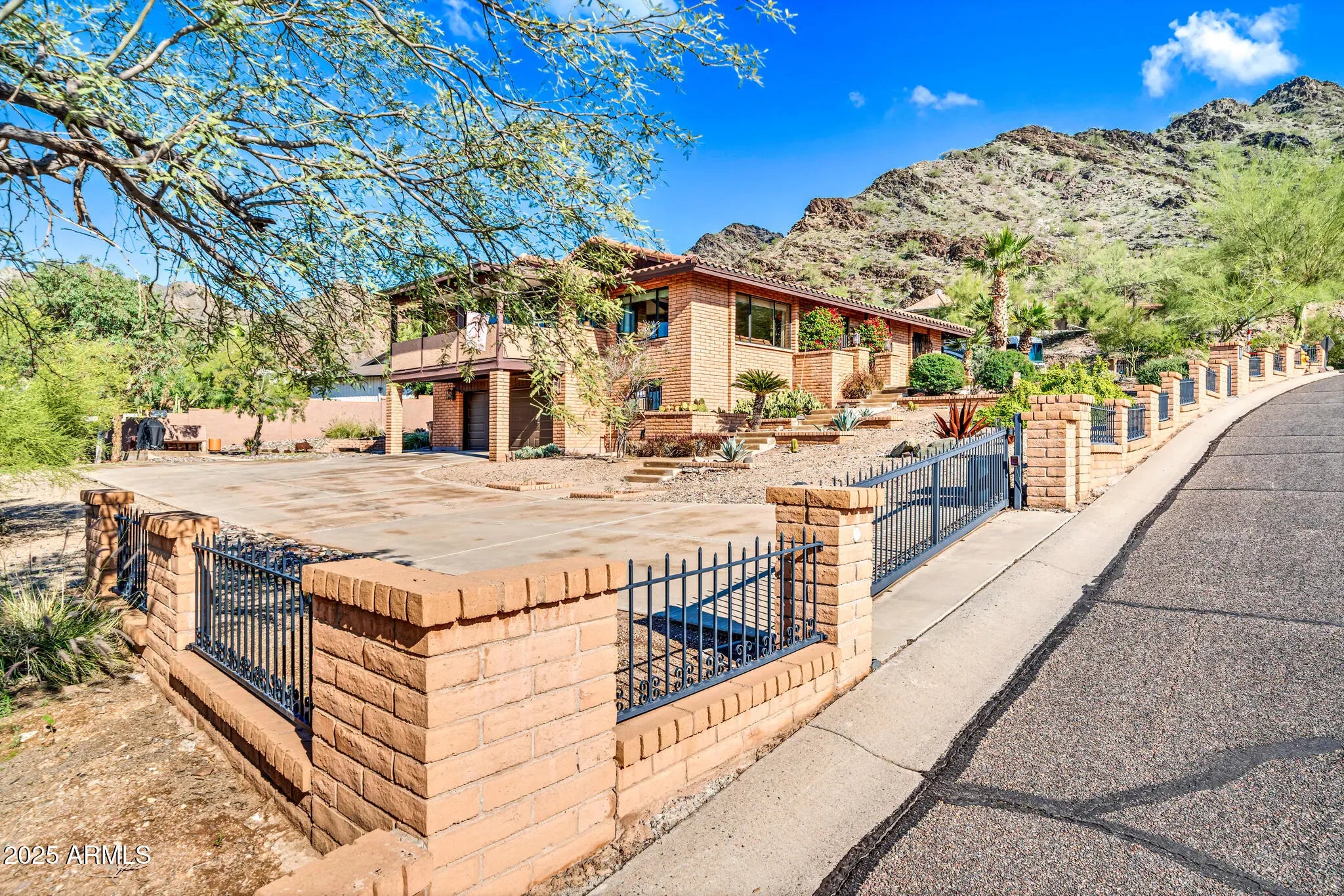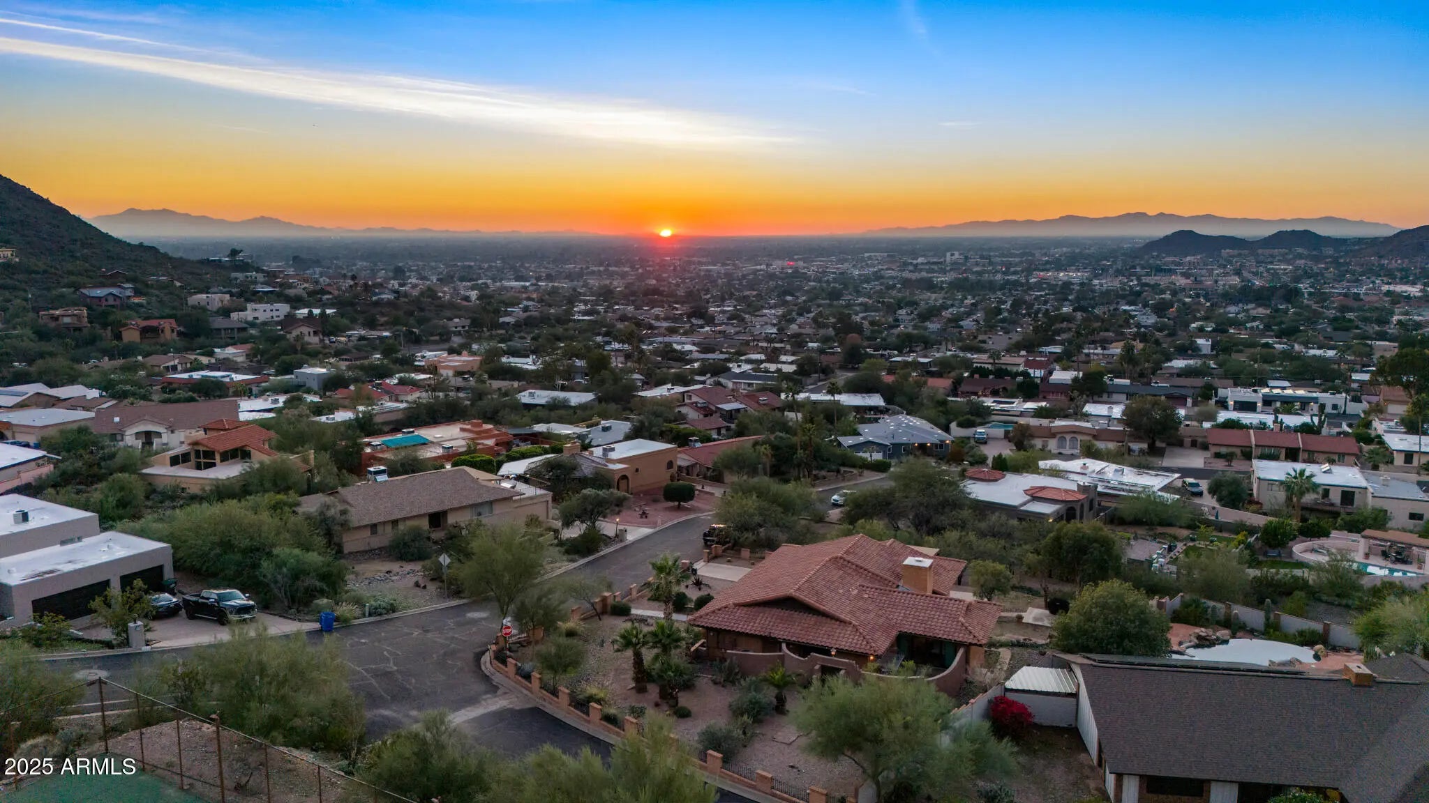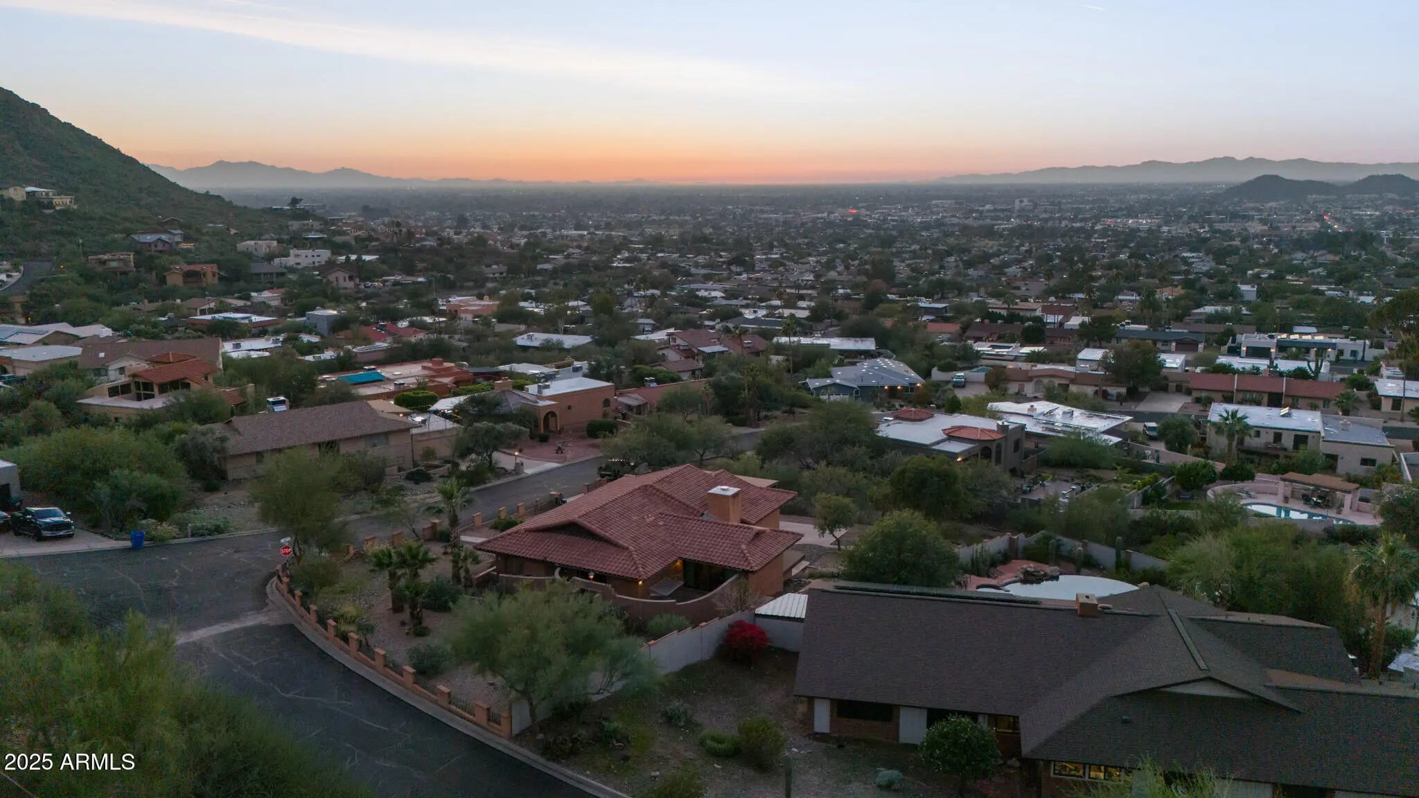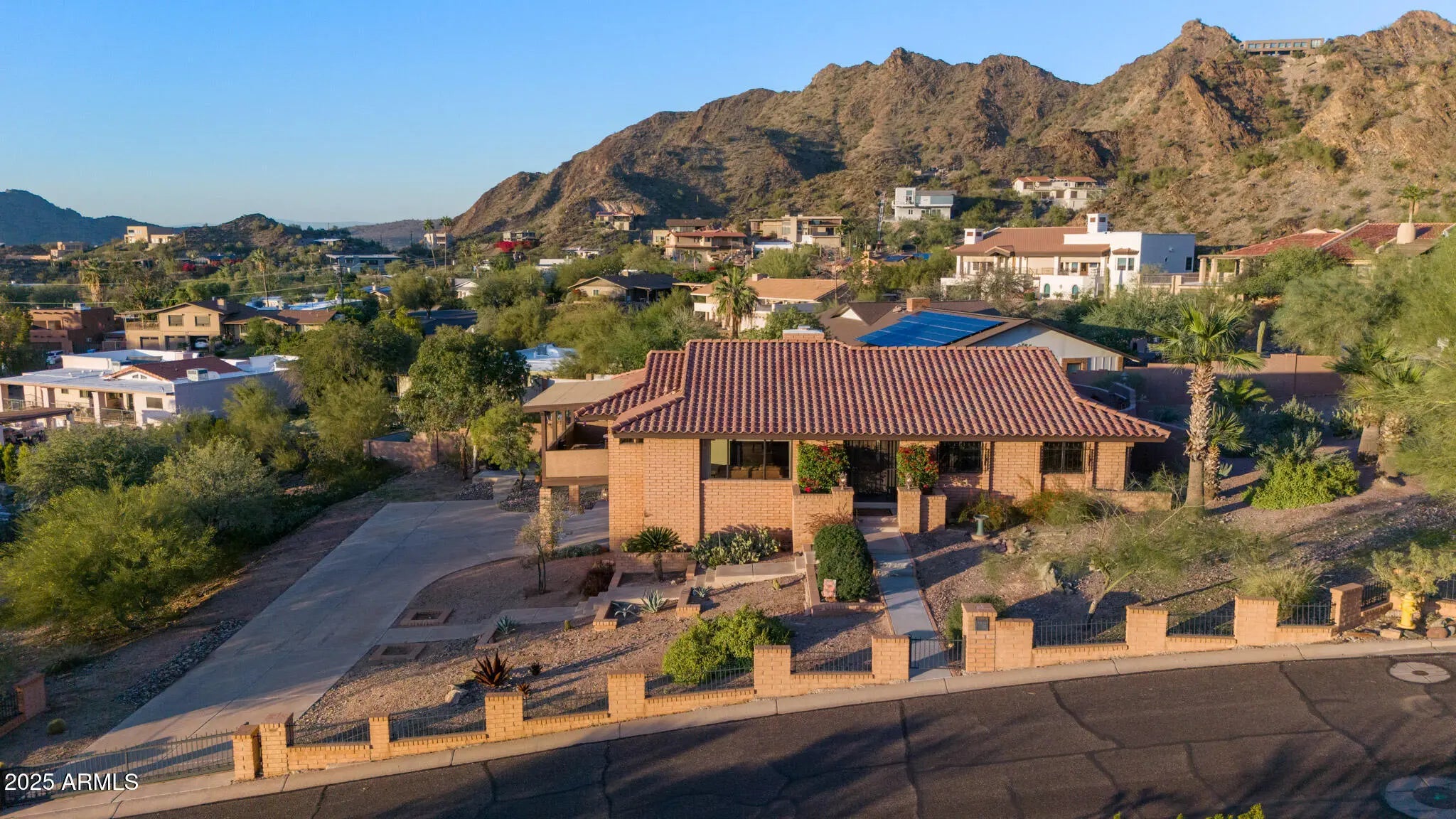 Spectacular panoramic mountain and city light views surround this custom hillside home in a quiet North Phoenix enclave with no HOA. Sitting on an oversized and elevated lot with mature desert landscaping, this property offers rare privacy and unobstructed scenery in every direction. The elevated setting creates a quiet, park-like setting never to be obstructed as the land below is yours as well. The kitchen is the true centerpiece of the home. The picture window spans the entire wall and creates a one-of-a-kind cooking and dining experience with uninterrupted city views. The layout offers extensive counter space, abundant cabinetry, and a wide island that functions as both a workspace and a gathering place. The custom quartz adds depth and character with rich veining and warm tones that complement the wood cabinetry. The kitchen flows into both the dining area and the living room, making it ideal for everyday use and for entertaining. Large windows capture the dramatic views from the living room, filling the home with natural light. The luxurious primary bedroom is connected to a private bath, a large walk-in closet, and direct access to an outdoor space that overlooks the surrounding mountains. The en-suite bathroom includes upscale elements like dual vanities, bidet, and a custom dual shower. The private patio provides a personal outdoor space directly connected to the bedroom thru sliding glass doors that span the entire wall, ideal for morning yoga or evening relaxation. The garage has a level 2 EV charger and a storage area with enough space to be used as a workshop. This is an exceptional opportunity to own a true view property with timeless character. Perfect for a buyer seeking privacy and some of the best mountain scenery in North Phoenix. Just minutes from hiking trails, dining, and freeway access. 2015 roof replacement 2017 AC replacement