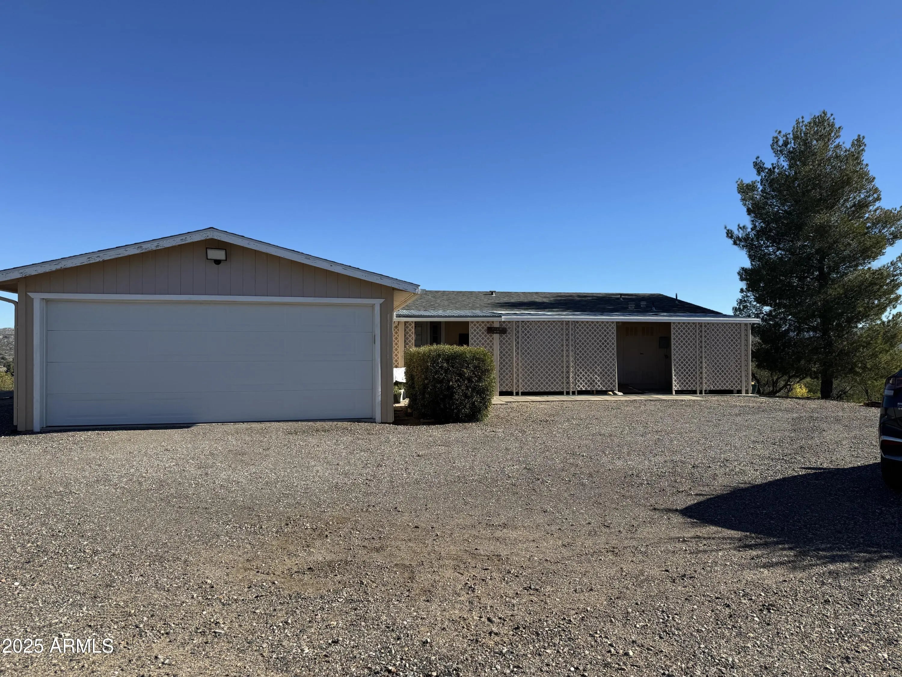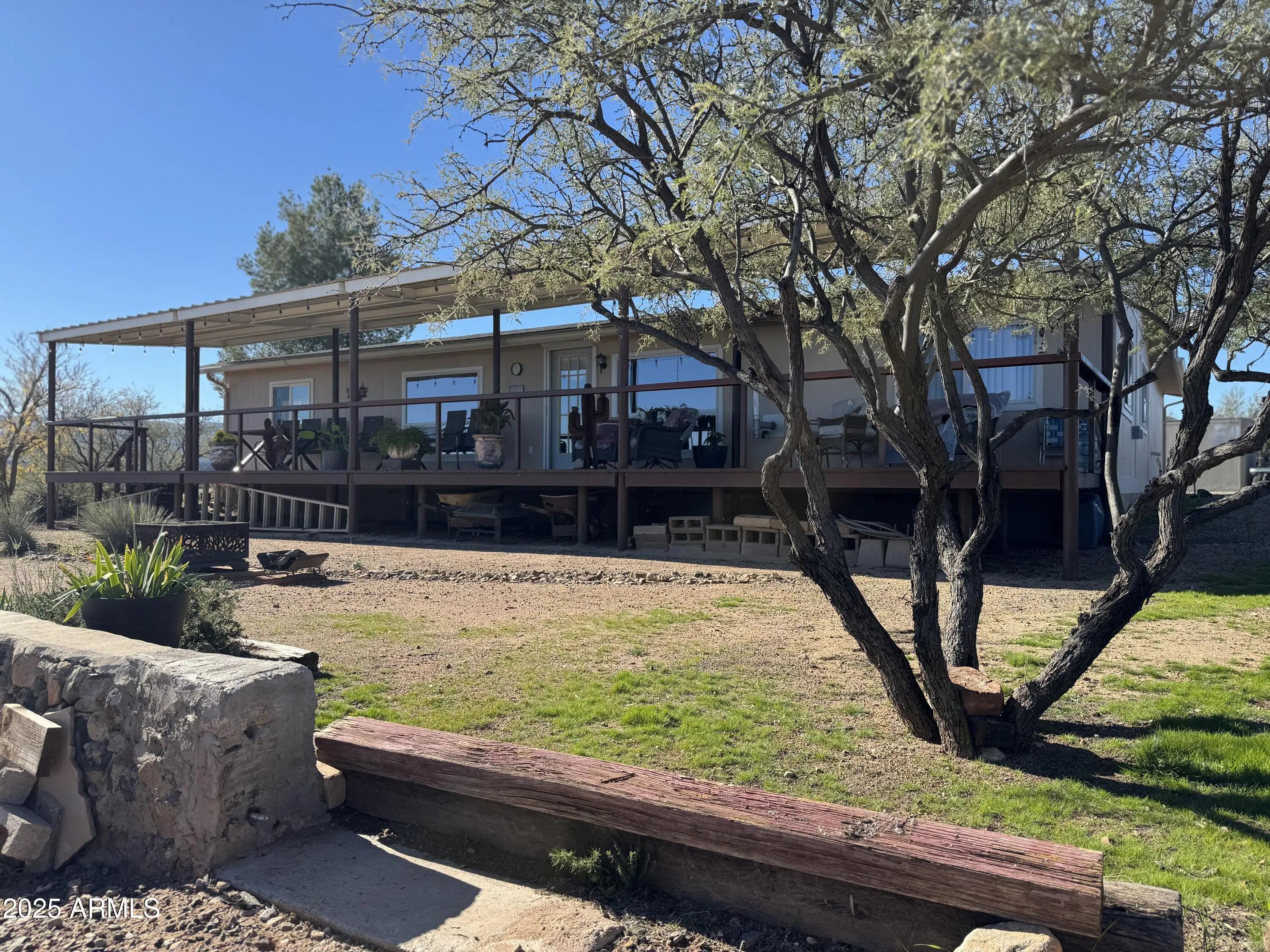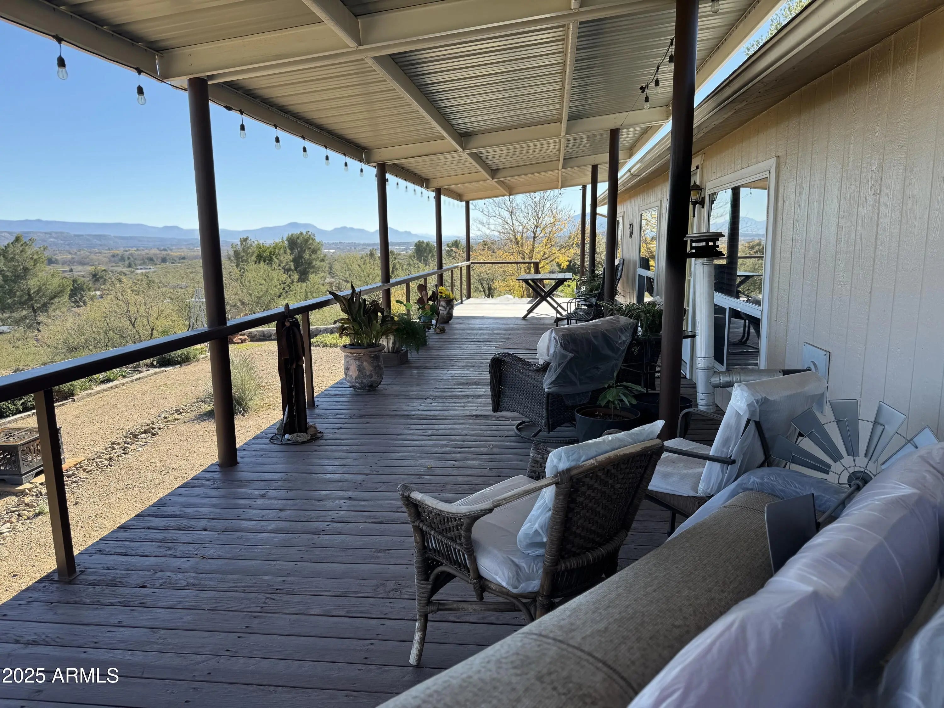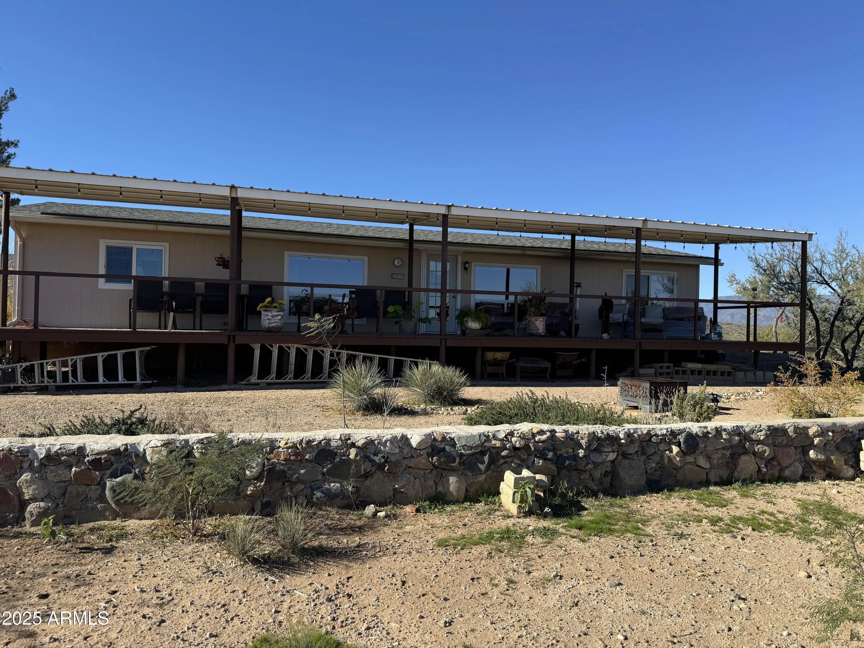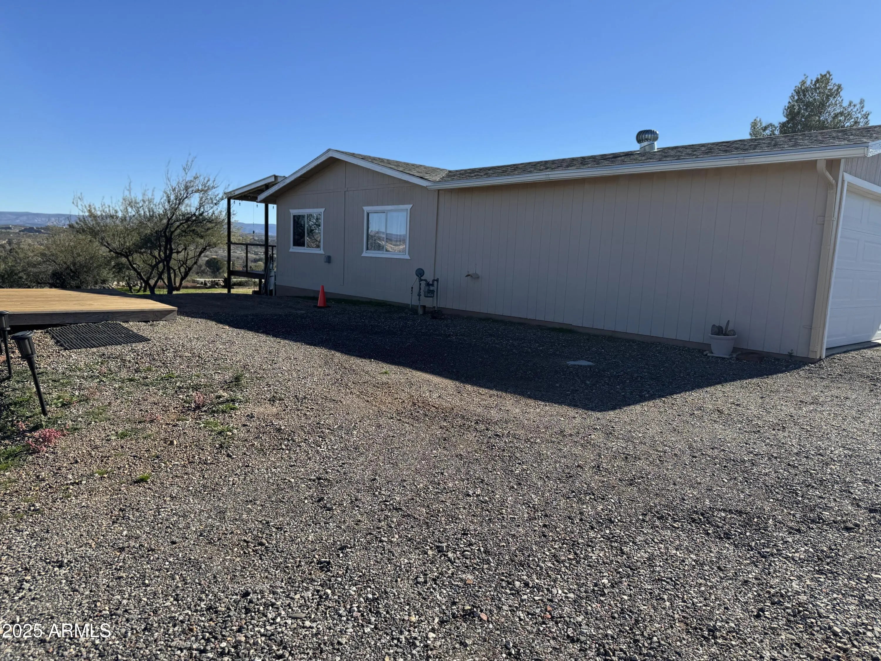 Discover this beautifully updated 3-bedroom, 2-bath home situated on 2.03 acres in the peaceful Verde West Acres 2 community. With 1,344 sq. ft. of thoughtfully refreshed living space, this property delivers modern comfort surrounded by breathtaking 360-degree views. Inside, an open and light-filled layout features luxury vinyl plank flooring throughout the main living areas. The upgraded kitchen includes granite countertops, stainless steel appliances, with a natural gas range and a pellet stove that adds cozy ambiance on cooler evenings. Outdoors, the expansive acreage offers endless possibilities—plenty of room for horses, gardening, or future improvements—along with RV parking and hookups, perfect for guests or added flexibility. Enjoy serene panoramic views from every direction