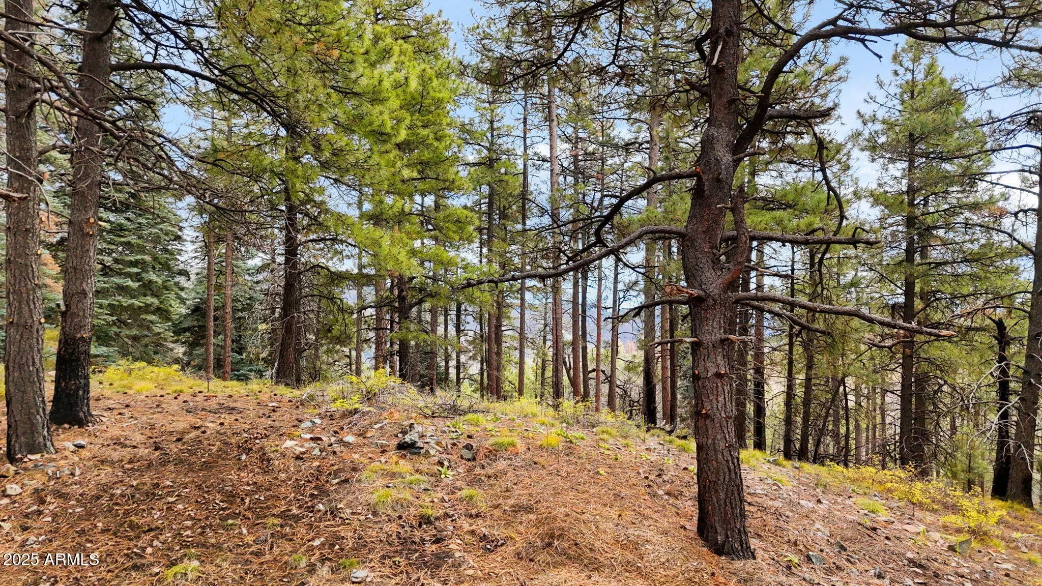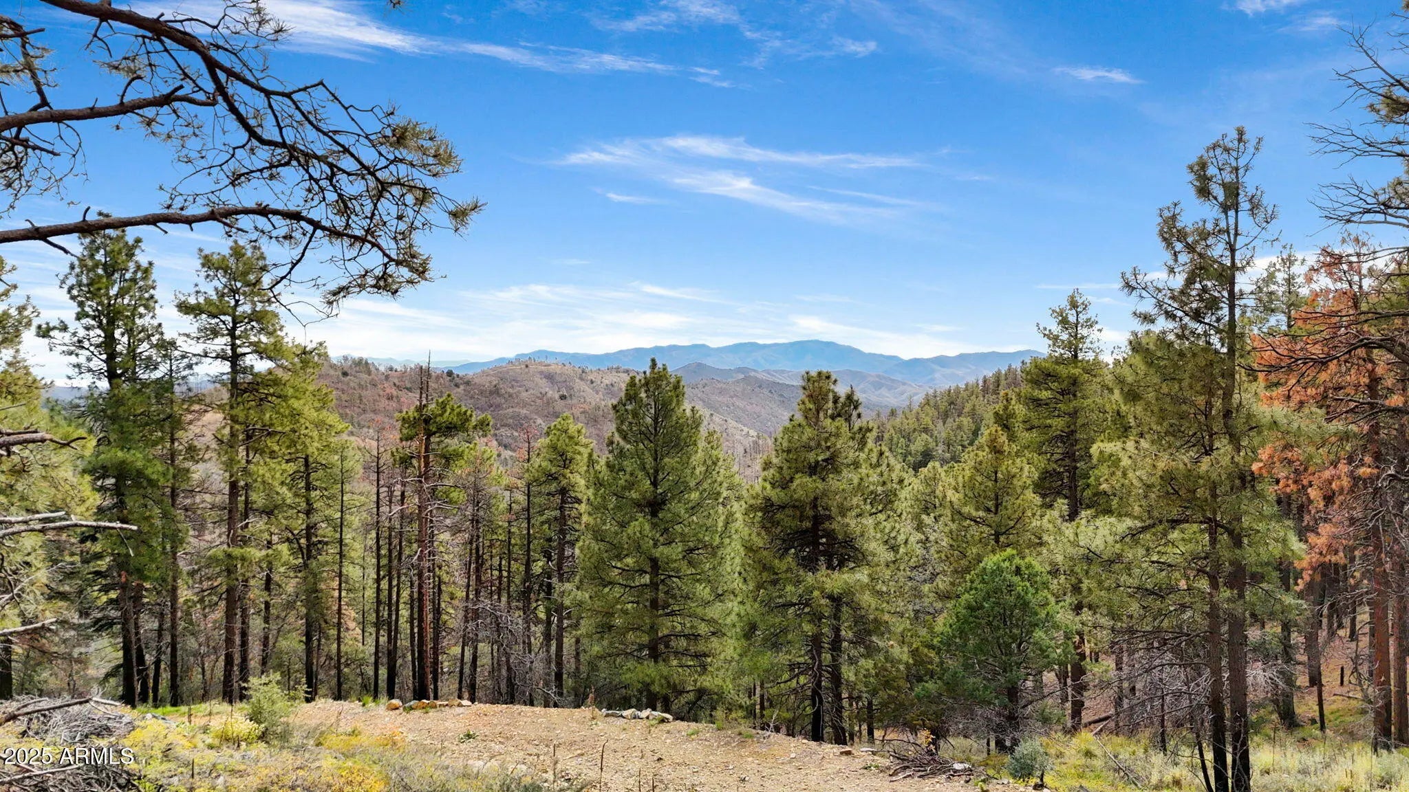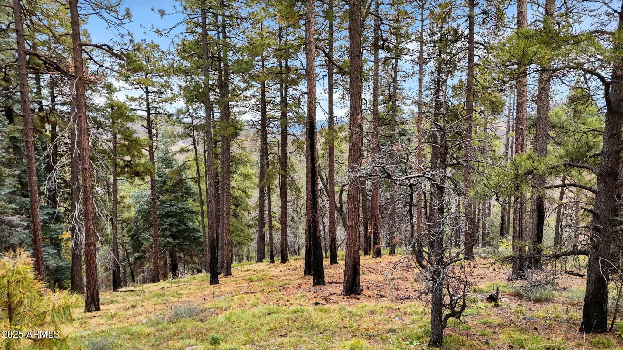 An outdoorsman's perfect opportunity to build a peaceful getaway in the Pines. 12.488 acres in the tall Pines with exceptional panoramic views & backs to the National Forest 7300' elevation. Private gated property. A driveway has been cut to the top of the parcel with a cleared area. A house that would be built on the upper 1/2 of the property will have panoramic views above the trees. Only 6 miles of unpaved road to the property from downtown Prescott. 14 miles from downtown Prescott Courthouse Square & Whiskey Row. Crown King is 23 miles away on the backroad of Senator HWY. AZ Dept of Forest management has walked the property & said they can help with fuel reduction programs offered by the state. Prescott National Forest has already thinned the area behind the property.