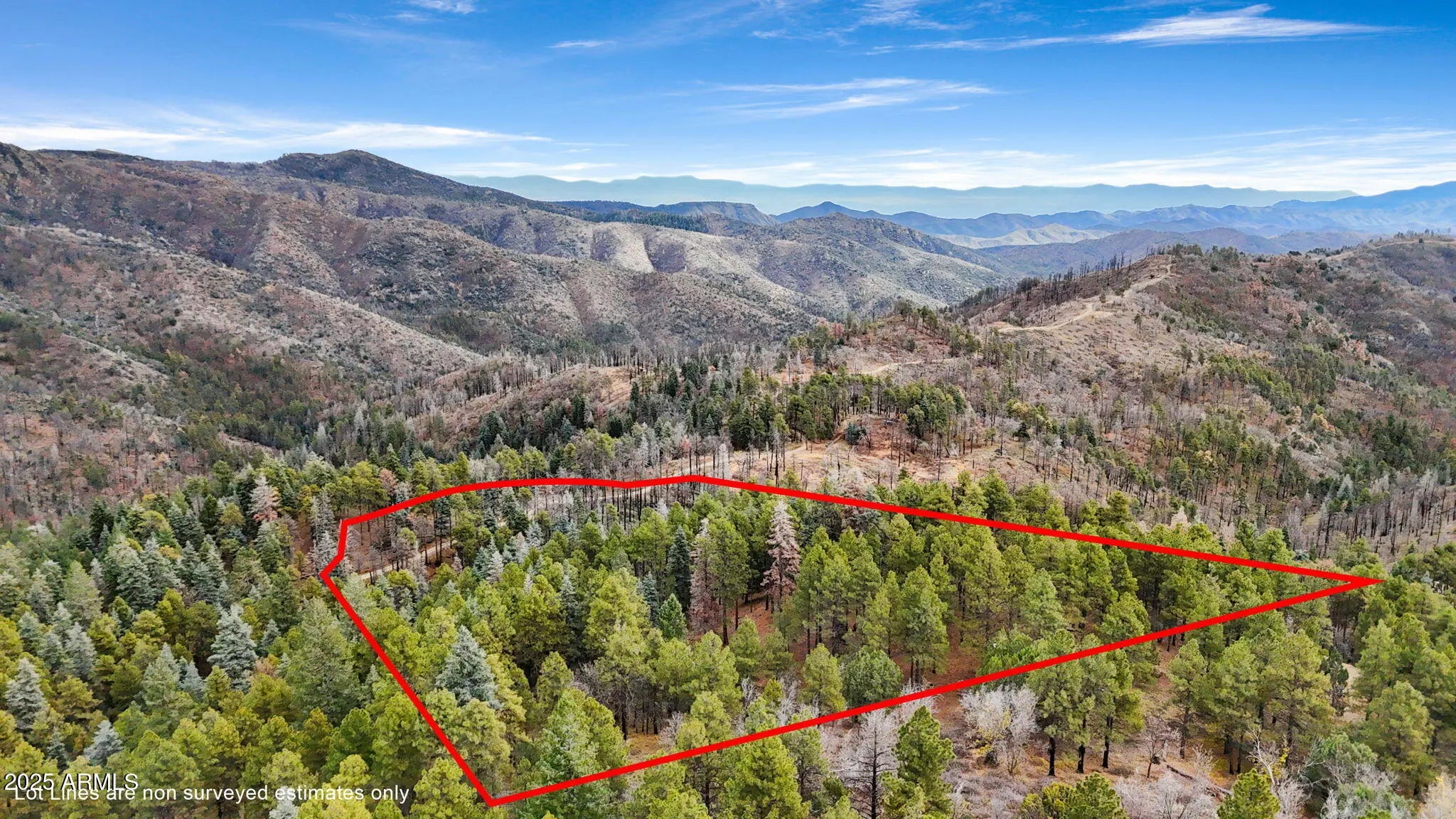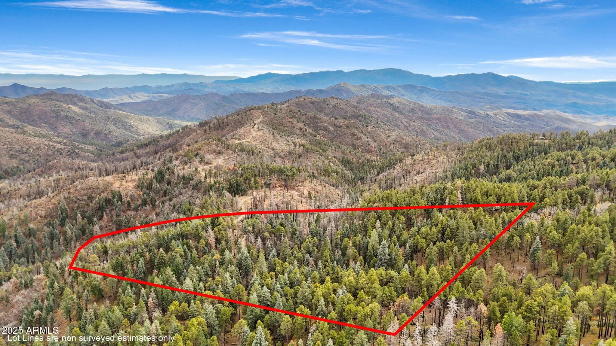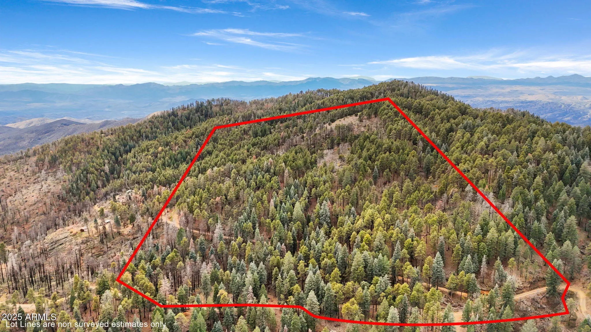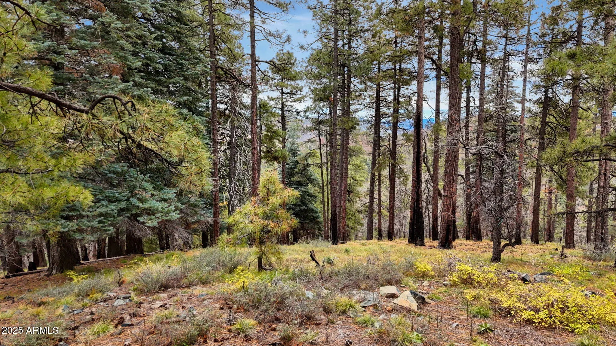 An outdoorsman's perfect opportunity to build a peaceful getaway in the Pines. 12.488 acres in the tall Pines with exceptional panoramic views & backs to the National Forest 7300' elevation. Private gated property. A driveway has been cut to the top of the parcel with a cleared area. A house that would be built on the upper 1/2 of the property will have panoramic views above the trees. Only 6 miles of unpaved road to the property from downtown Prescott. 14 miles from downtown Prescott Courthouse Square & Whiskey Row. Crown King is 23 miles away on the backroad of Senator HWY. AZ Dept of Forest management has walked the property & said they can help with fuel reduction programs offered by the state. Prescott National Forest has already thinned the area behind the property.