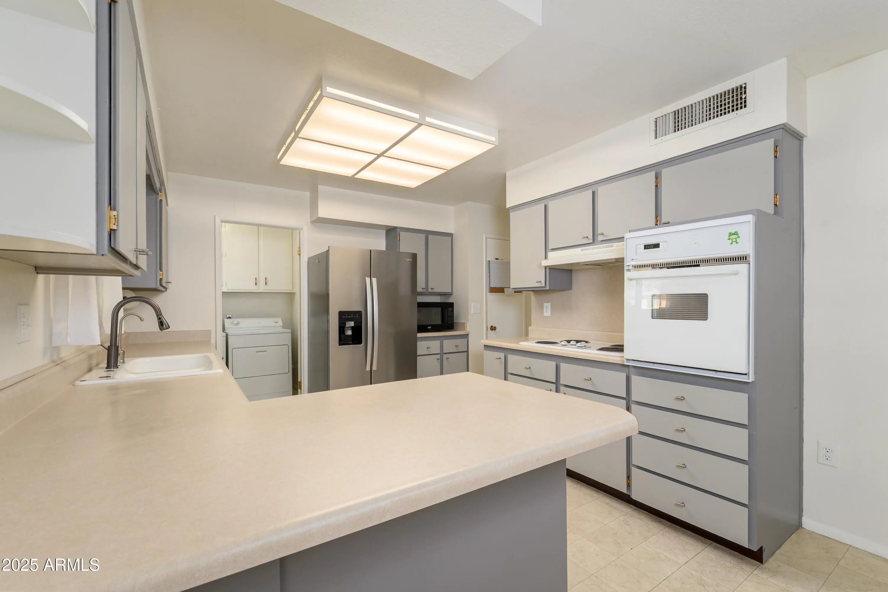 Move-In Ready Gemini Twin Home on Quiet Cul-de-Sac - Perfect For Entertaining! This charming 2-bedroom, 2-bath, 1,125 sq. ft. home is ideally located near Sun Dial Recreation Center! Features include: Front Courtyard! Bright kitchen with freshly painted cabinets with roll out drawers and separate dining area! New windows and doors throughout for modern comfort! Spacious living room and generous sized garage! Laundry room off kitchen; washer, dryer, and refrigerator included! Screened patio overlooking a lush greenbelt—ideal for gatherings! Grass backyard, perfect for pets! Enjoy a serene setting with easy access to amenities. Don't miss out—Enjoy your private tour today!