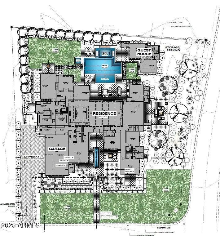 Stunning brand-new custom estate with NO HOA, offering 8,714 sq ft of luxury living including a 7,902 sq ft main home and 812 sq ft guest house. The main residence features 5 ensuite bedrooms plus a powder room, highlighted by a secluded primary suite with fireplace, backyard access, infrared sauna, soaking tub, double-head shower, dual closets, private outdoor shower and an exercise room just off the main room. The chef's kitchen boasts double islands, two dishwashers, Wolf dual-fuel range, pot filler, RO system, and an inviting morning room that opens to the patio. A fully equipped butler's pantry adds a refrigerator/freezer, wine cooler, convection steam oven, drawer microwave, dishwasher, and ice maker. ((CONTINUED)) A wine room is located just off the dining space for the true connoisseur. Entertain in the dramatic 33' x 25' Great Room with an 18-ft vaulted beamed ceiling, the front-facing dining/lounge with sliders to the courtyard, or the east wing's game room that opens to a secondary patio. Additional features include a mudroom, spacious laundry room, and a 4-car garage. The detached guest house offers a living area with kitchenette, powder room, and private ensuite bedroom. The resort-style backyard includes a large, covered patio, outdoor kitchen with built-in BBQ and dual refrigerators, a sparkling pool, spa and fire feature. An additional private patio is located off the game room featuring a fire pit. The outdoor space truly encapsulates the term of a desert oasis.