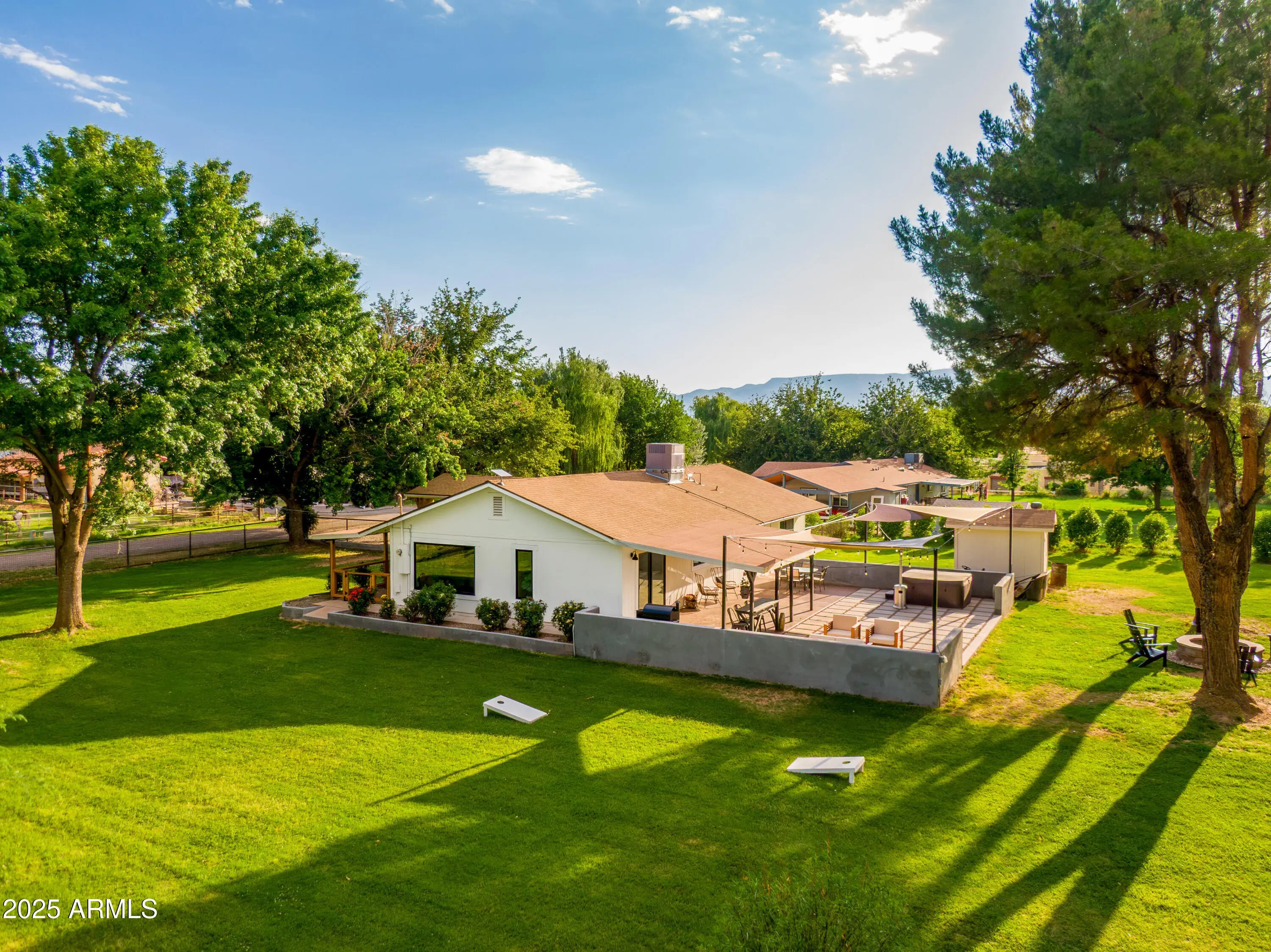 There's a calm that settles in the moment you arrive, tall trees swaying above, soft grass under your feet, and the quiet kind of space that feels like a breath of fresh air. This updated 3 bedroom, 2 bathroom home sits on just under an acre in the heart of Page Springs, surrounded by mature trees and open sky. Inside, the home has been thoughtfully remodeled with a clean, comfortable feel throughout. Outside, a paved patio offers the perfect place to unwind, shaded in the afternoon and peaceful all day long. One of the standout features of this property is its rare, grandfathered access to ultra-low-cost water rights through the Mason Lane Irrigation Ditch, an incredible benefit for gardening, landscaping, and maintaining the lush surroundings. You're just 7 minutes from DA Ranch, Oak