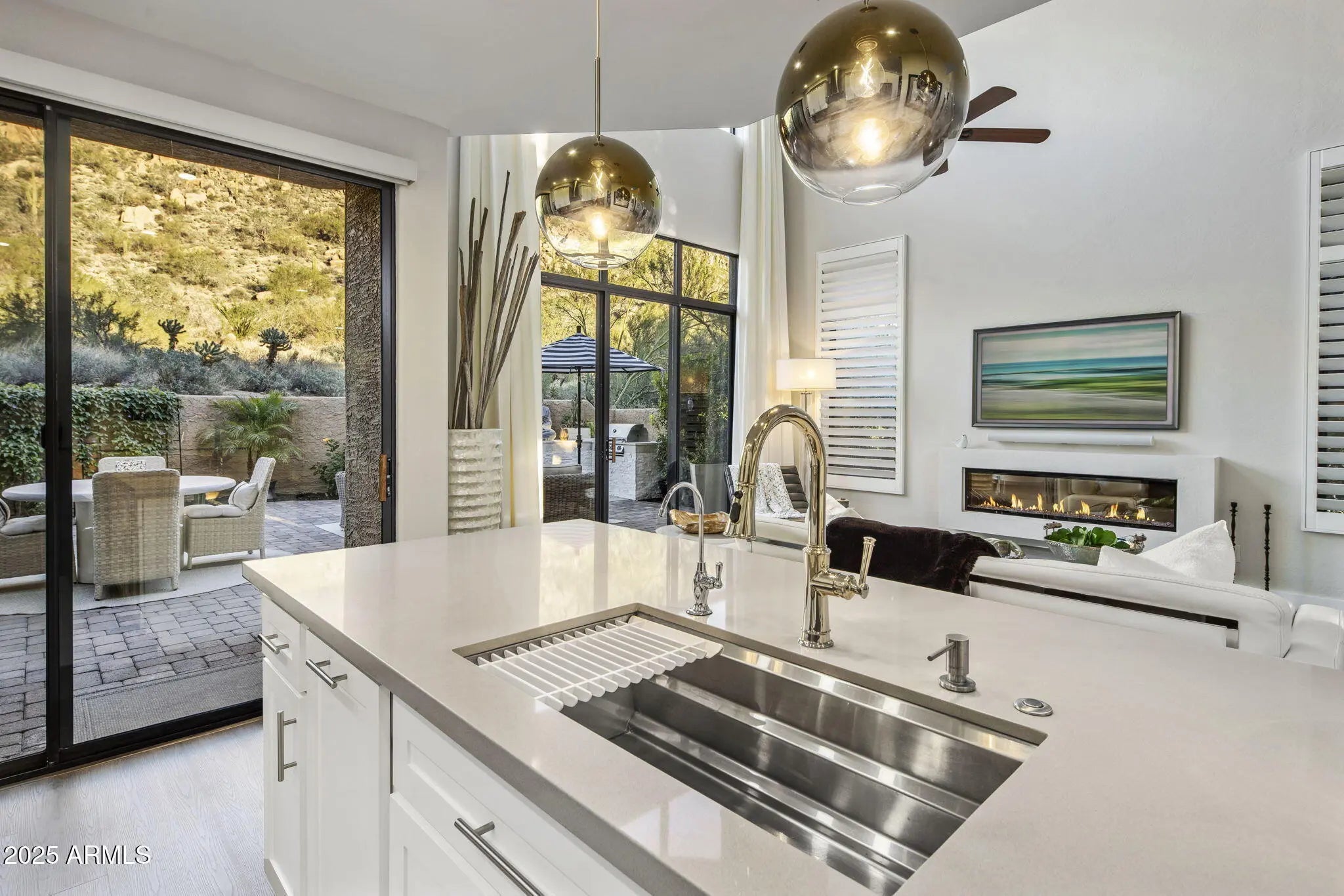 Welcome to this beautifully reimagined, turnkey residence in the prestigious Troon Country Club, surrounded by breathtaking mountain preserves. Thoughtfully renovated with premium upgrades, the home showcases soaring 30 ft. ceilings, designer styling, and exceptional craftsmanship with every detail carefully considered. Just moments from one of Scottsdale's most esteemed golf courses, residents enjoy access to world-class play in a setting known for dramatic scenery and pristine fairways. The Troon lifestyle offers an unparalleled golfing experience, enhancing the appeal of this refined luxury retreat. Situated on a premium view lot within a secure 24-hour guard-gated community, the home provides exceptional privacy and an effortless full-time or lock-and-leave lifestyle. Designed for both quiet relaxation and elevated entertaining, the backyard captures unobstructed mountain and open-terrain views. An expansive 900 sq. ft. patio enhances the seamless indoor-outdoor connection, while refreshed landscaping and a built-in BBQ create a tranquil desert sanctuary. Opportunities within this enclave are rare. This is a truly special chance to secure a fully turnkey residence in one of Troon's most sought-after settings.