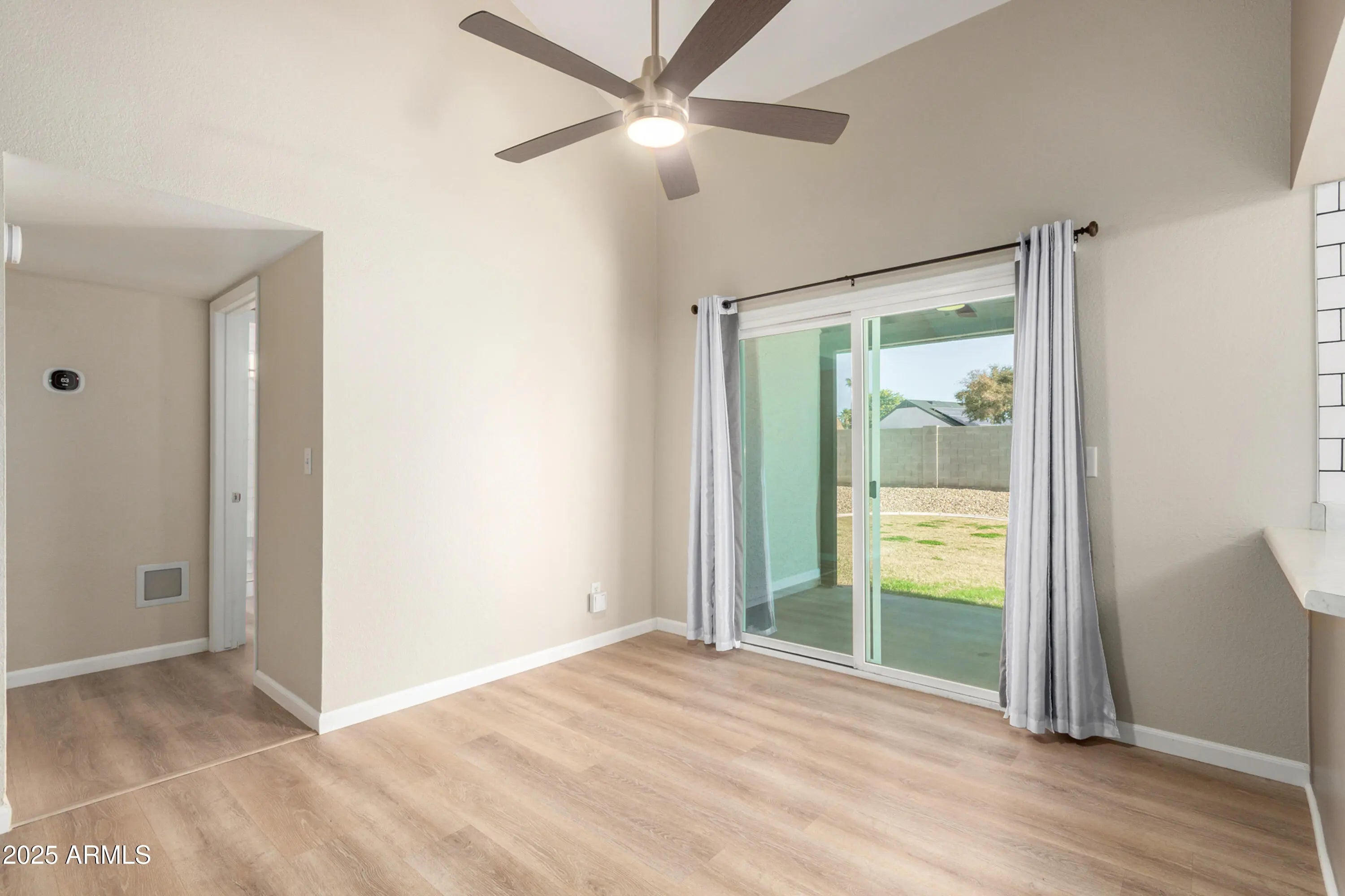 Charming 2-bed, 2-bath Glendale home with no HOA, perfect for first-time buyers or those looking to downsize. Vaulted ceilings, abundant natural light, and beautiful LVP flooring throughout create a warm, welcoming feel. Updated kitchen with new side-by-side refrigerator, farmhouse sink, white cabinetry, tile backsplash, pantry, and modern fixtures. Relax in the professionally maintained backyard with a 25' covered patio, side deck, and grassy area ideal for entertaining or quiet evenings. Major updates include new dual-pane windows, solar shades, new HVAC and ducting, added attic insulation, and a brand-new water heater. Built 1983, truly turnkey and move-in ready.