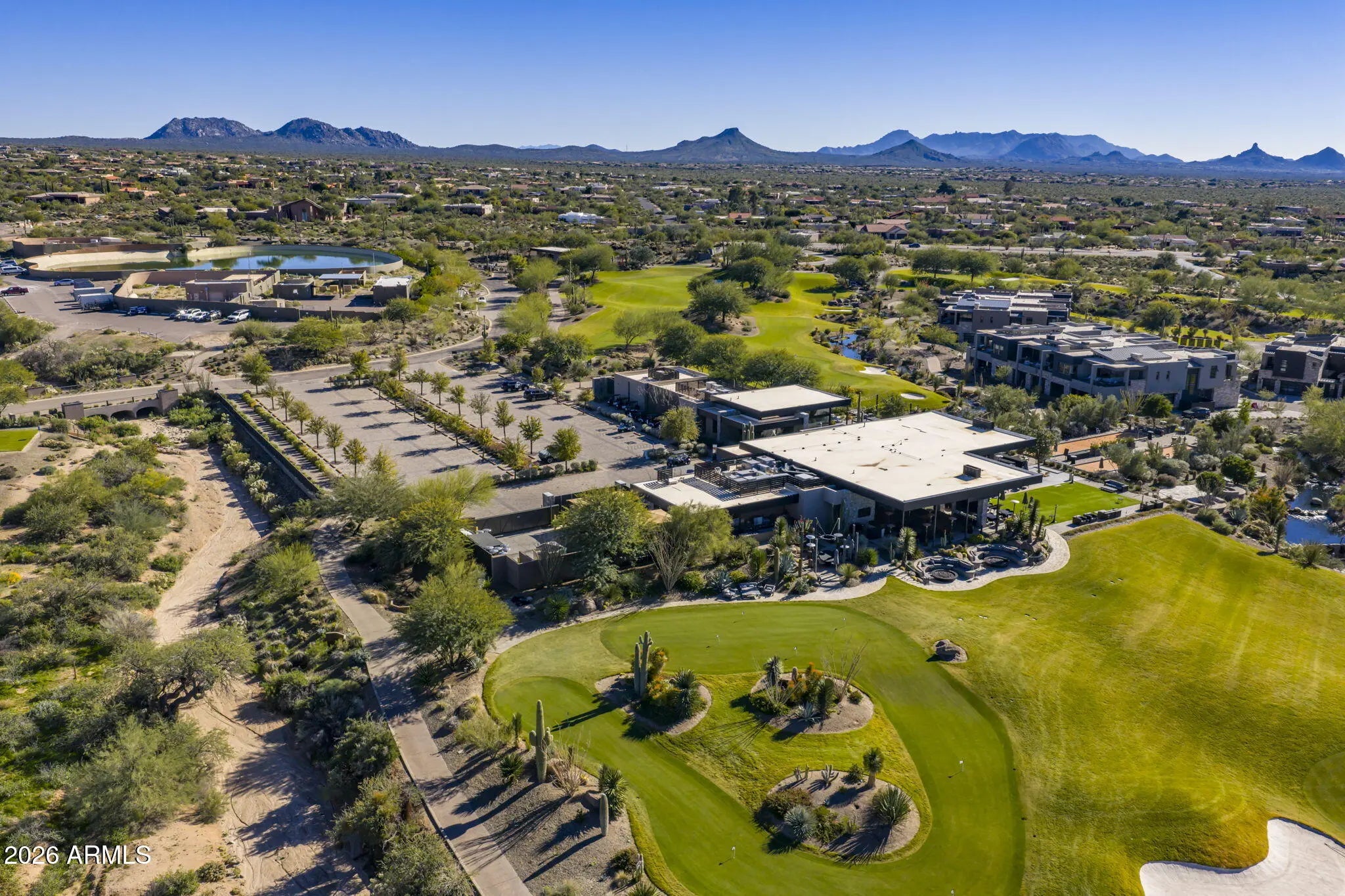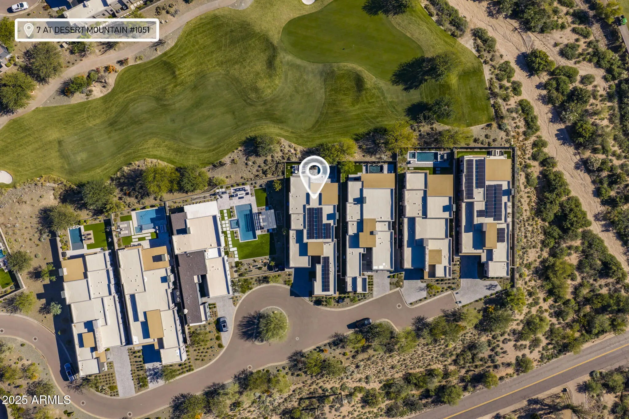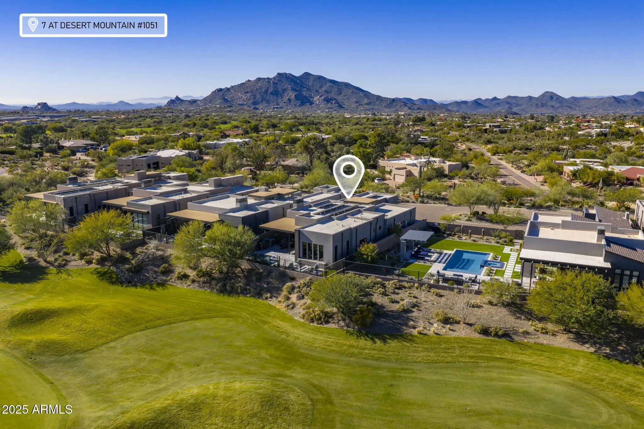 Full Desert Mountain Golf Membership + $750,000+ in Builder & Post-Closing Upgrades + Owned Solar + Guard Gated Lock-And-Leave + Golf Villa. Experience elevated desert living in this stunning contemporary Camelot golf villa, ideally positioned along the 13th hole of the Seven Course in the guard-gated community of Seven at Desert Mountain. A full Desert Mountain Golf Membership is available to purchase, offering access to all seven championship courses and the world-class club amenities that define this premier lifestyle community. Thoughtfully curated with over $750,000 in upgrades -- including more than $500,000 at the design center and an additional $250,000 invested after closing -- this residence is enhanced beyond builder standards. Highlights include owned solar, a resort-style heated spool with cascading water features, custom landscaping, fire feature lounge, misting system, automated window treatments, air-conditioned garage, and more. Inside, sophisticated contemporary design meets seamless indoor-outdoor living. Wide-plank hardwood floors, dramatic drop ceilings with integrated LED lighting, floating vanities, and a sleek linear fireplace create a refined yet inviting atmosphere. Two telescoping glass wall systems open effortlessly to the outdoor living spaces, maximizing golf course views. The chef's kitchen is built for both everyday living and entertaining, featuring Sub-Zero and Wolf appliances, dual islands, double sinks, double dishwashers, dual beverage coolers, a pot filler, and exceptional storage. The expansive great room and primary suite capture panoramic fairway vistas, while the intelligently designed floor plan offers three bedrooms and three-and-a-half baths, including a private casita ideal for guests. Outdoor living rivals a private resort with marble pavers, synthetic turf, built-in BBQ, firepit seating, and sweeping views over the course, all designed for effortless lock-and-leave enjoyment. Located within the exclusive Desert Mountain community, full golf members and social member residents enjoy access to multiple clubhouses, dining, fitness, spa, tennis, pickleball, hiking, and more. This is modern golf-course luxury at its finest in one of Scottsdale's most coveted enclaves.
