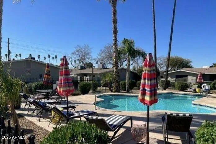 RARE 3-bedroom, single-level corner unit in a gated community! This upgraded condo features all tile flooring, neutral paint, ceiling fans, window treatments, sunscreens, and granite counters in the kitchen and bathrooms. Newer double-pane windows and a full-size primary shower with custom tile and glass doors. Enjoy a private paver patio, community pool, fitness center, and assigned covered parking plus guest spaces. Minutes to Biltmore, and about 10 minutes to Arcadia, Old Town Scottsdale, or Downtown Phoenix. Perfect for hikers with quick access to Camelback, Piestewa Peak, and major freeways!