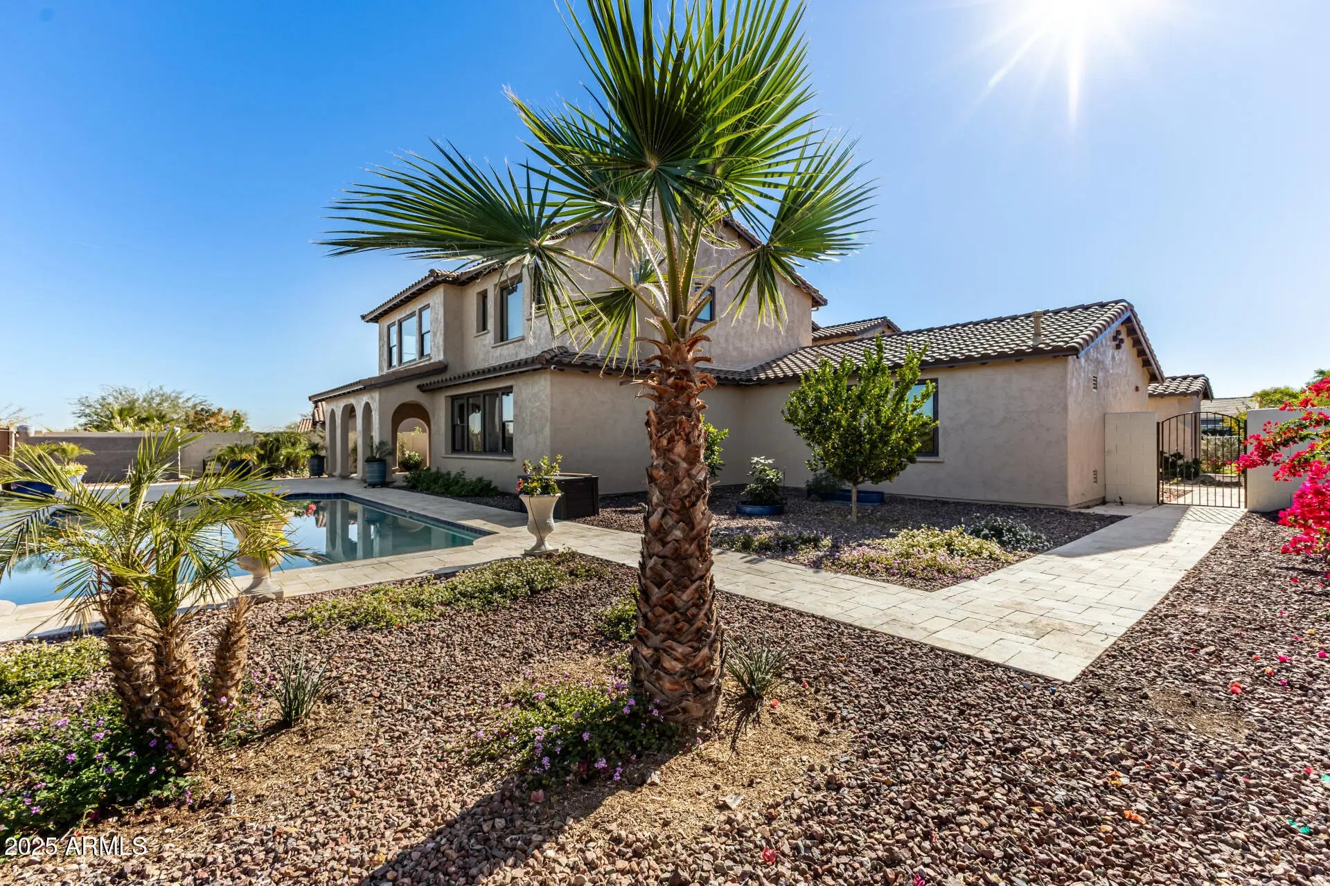Original owners! This beautifully remodeled luxury home sits on one of Verrado's most coveted lots—no behind neighbors and breathtaking mountain, city, wash, and neighborhood views from every angle. Perfectly positioned in Verrado, this residence offers unmatched privacy, scenery, and livability on an expansive 1/4-acre lot.Designed by Cachet Homes and upgraded throughout, this 4,893 sq ft home features 4 bedrooms, 3.5 bathrooms, and multiple flexible living spaces including two dens/offices, a teen room, formal dining and sitting rooms, and generous living areas complete with a fireplace. A full ensuite master bedroom is conveniently located on the main floor—ideal for multi-gen living or visitors. The gourmet kitchen impresses with granite countertops, a large island, walk-in pantry and butler's pantry with a beverage fridge. Authentic real wood floors, French doors opening to the backyard oasis with a pool, elevate the home's luxury feel. Fresh interior and exterior paint create a bright, turn-key atmosphere. Upstairs, the oversized primary suite showcases dramatic mountain views, a private sitting area, and a remodeled ensuite bathroom featuring a soaking tub and walk-in shower. Additional bedrooms are well-sized, and the upstairs laundry roomwith sinkadds convenience. A spacious loft offers yet another flexible living space. The home also includes a 3-car garage. The backyard is a true oasis boasting a pool, pavered patio, and lush landscapingan entertainer's dream with ample room for future enhancements such as a sports court or pickle ball. With no neighbors behind and sweeping views, the outdoor experience is exceptional. Residents enjoy access to parks for walking, running, playing, and community gatherings. Verrado offers world-class amenities including multiple pools, the Verrado Golf Club with two championship courses, The Center on Main, over 80 neighborhood parks, and 21+ miles of hiking and biking trails. Located within the highly rated Litchfield Elementary and Agua Fria Union school districts, this home combines luxury, location, and lifestyle in one extraordinary property.