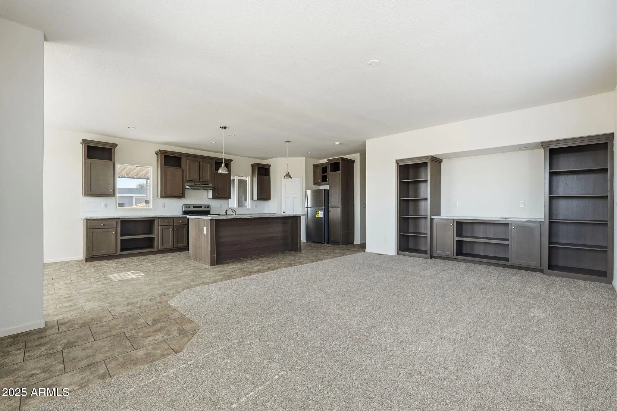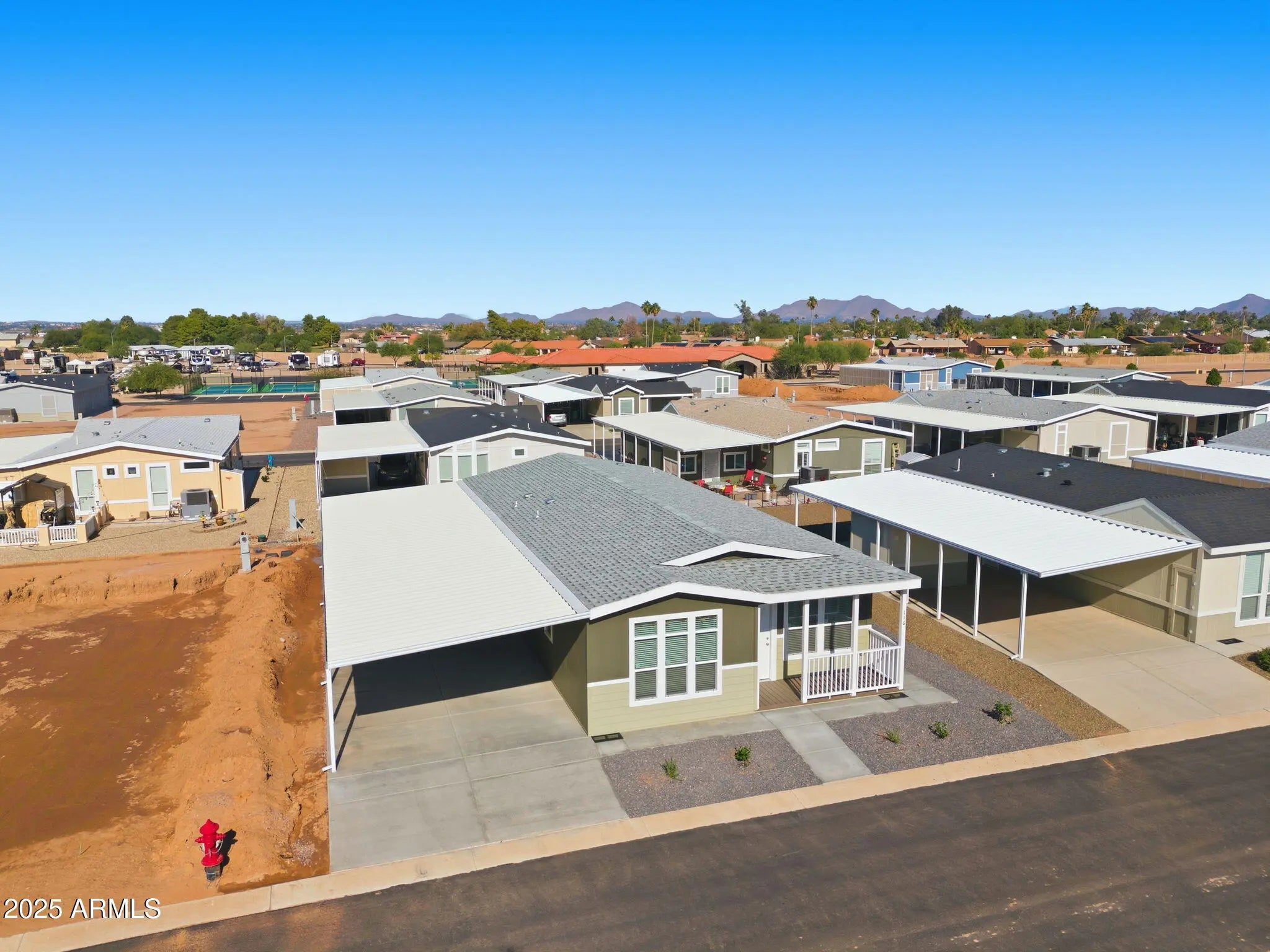 Your Low-Maintenance Lifestyle Starts Here. Brand new Champion home in Spanish Trails West offers fresh style, smart layout & easy living. Gated community offers fiber internet, a pool, a clubhouse, game room, a library & events, with low land lease fees. This 2-bedroom + den/office with a door gives flexible space for work, hobbies, or guests. The open kitchen features stainless appliances, solid surface-style counters, island seating & tons of cabinetry, flowing into a bright living area with built-in cabinetry. The spacious suite has a walk-in closet, dual sinks & large shower. Outside, enjoy ample, covered rear patio space, a covered carport, a spacious driveway & storage area or potential workspace. Explore the upgrade-packed layout & discover the community amenities waiting for you!