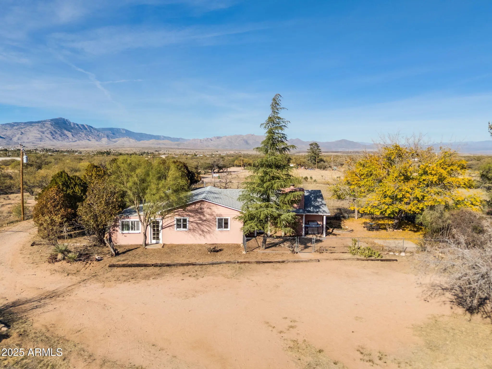 Perfectly set up for animals, hobbies, or a peaceful rural lifestyle, discover true country living on this 4.6-acre horse property with panoramic mountain views and walking access to State Land. Inside, the home features 2 bedrooms and 1 bathroom, providing a cozy, functional layout. Outside is where this property truly shines - fully fenced and cross-fenced, it includes 2 horse stalls, multiple outbuildings, and a garage with workshop space, giving you all the flexibility you need for livestock, storage, or projects. A private well ensures independence, while easy access to I-10 keeps you connected to town, travel, and amenities. Whether you're dreaming of a small ranch, a quiet desert retreat, or a property with space to expand, this one checks every box.