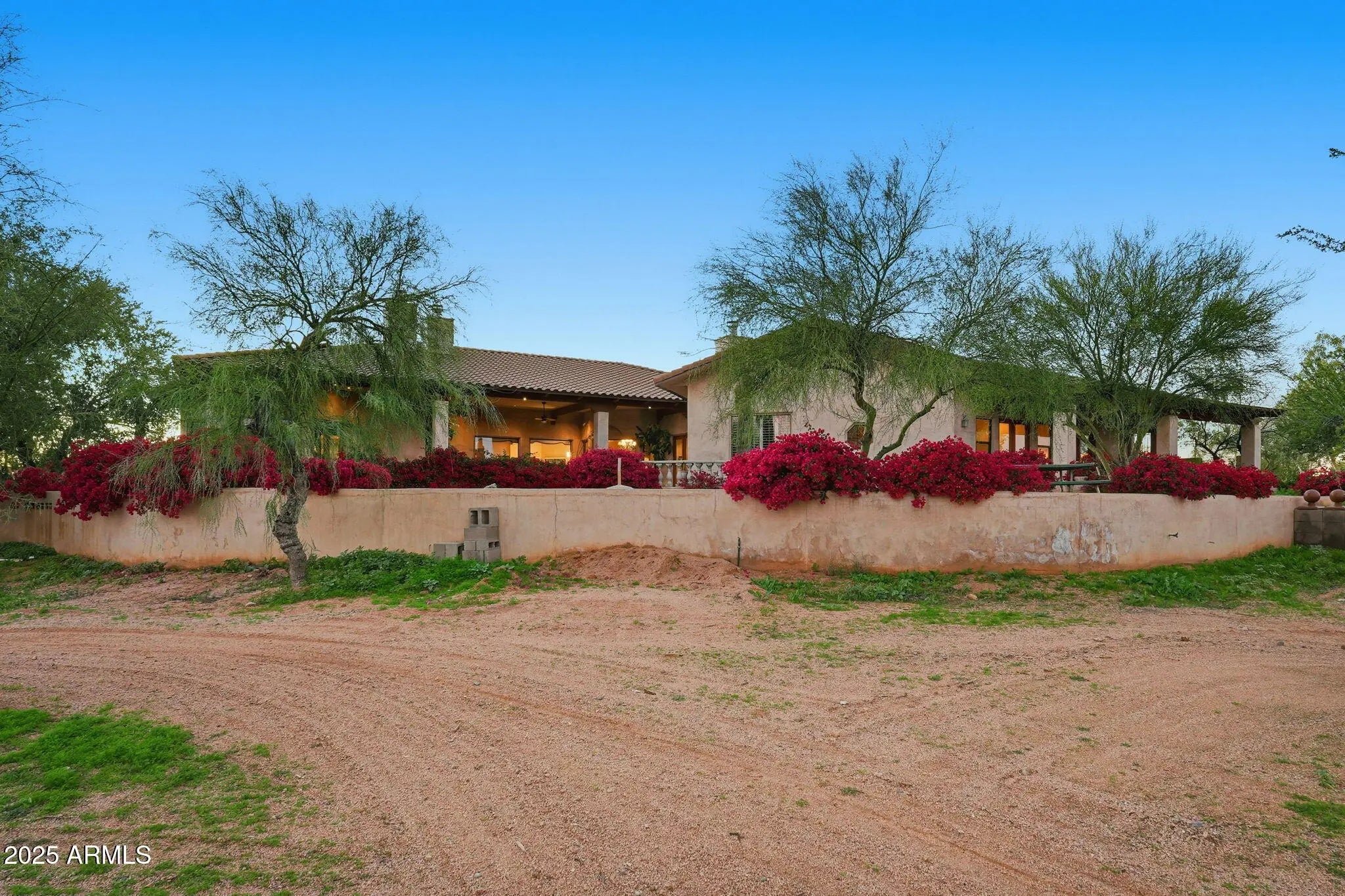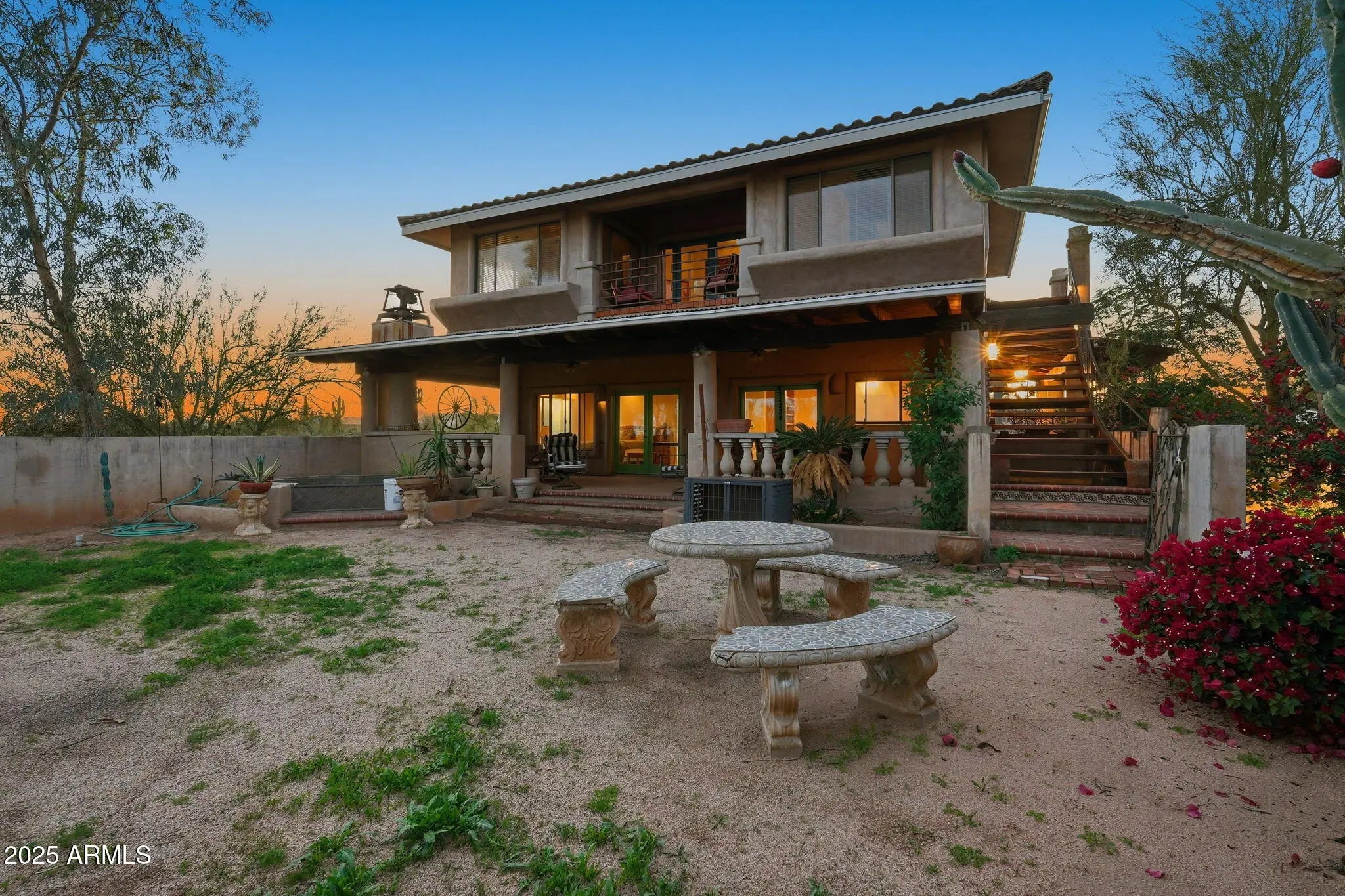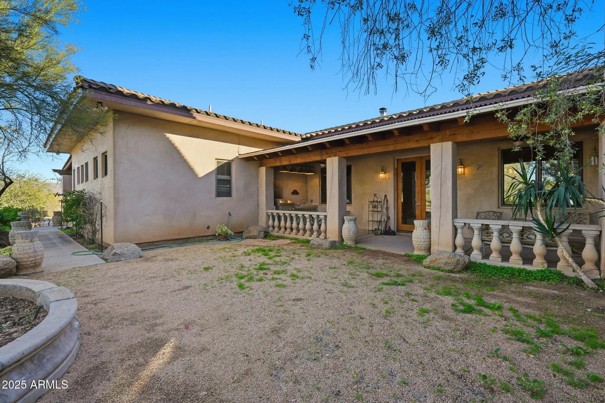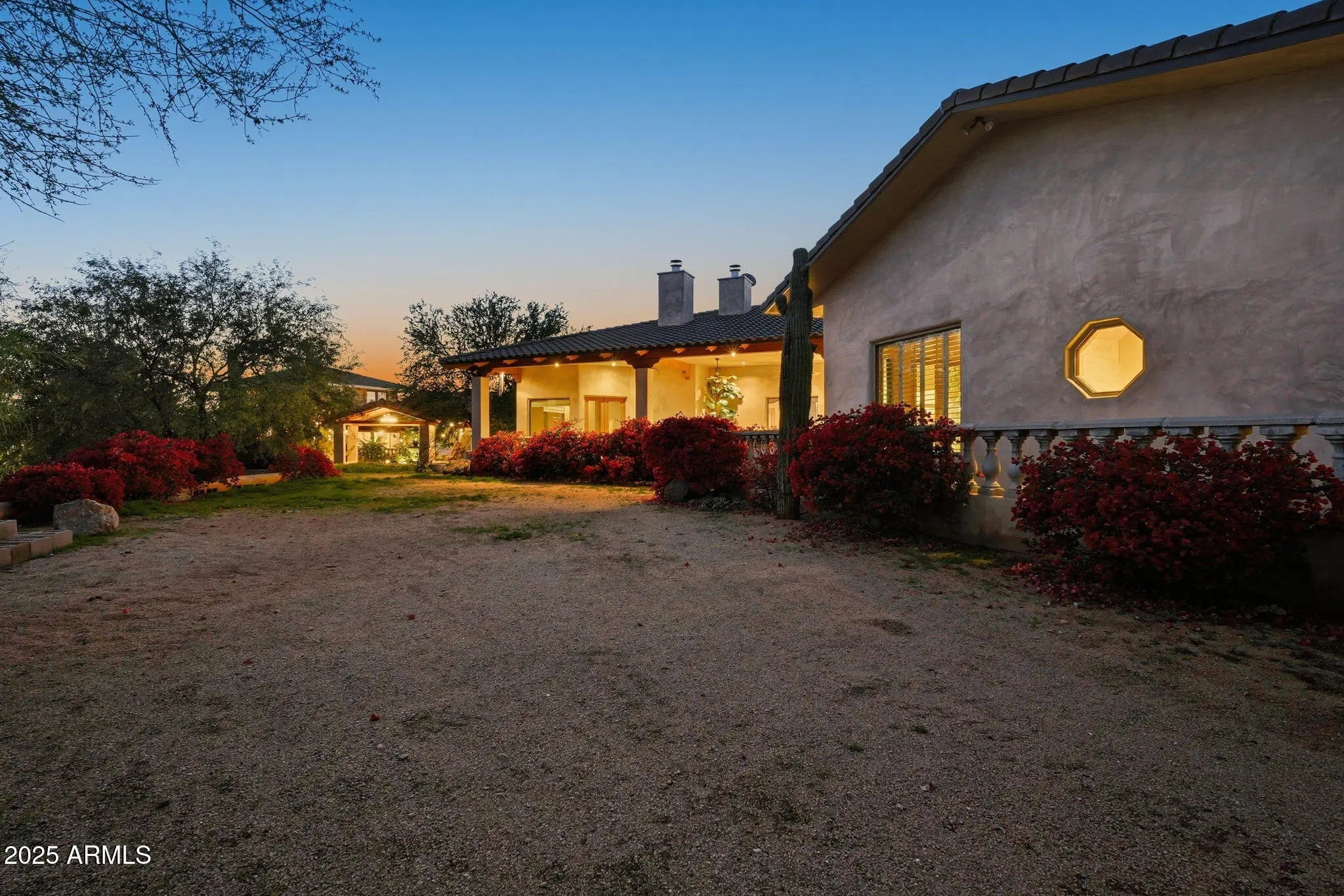 Remarkable property on a 4.6-acre lot! This gem is surrounded by desert trees galore & breathtaking mountain views. Discover a collection of garages, including a 3-car garage, a 2-car garage, & a dedicated RV garage for all your vehicles. A double iron work door introduces an interior rich with character, highlighted by stone floors, beamed ceilings, multiple fireplaces, built-in bookcases, recessed lighting, surround sound speakers, & sophisticated architectural details. The welcoming living room & formal dining area create an inviting ambiance for entertaining! Gourmet kitchen showcases SS appliances, granite counters, a two-tier island with breakfast bar, & a generous walk-in pantry. Split main bedroom provides a restful escape, complete with a walk-in closet & a spa-like bathroom. Outdoor living is elevated with adorable fountains, multiple seating areas, enchanting balconies, covered patios, & built-in BBQs for enjoying alfresco gatherings. Perfect for multi-generational living or guests, the property features both detached & attached casitas, each equipped with its own kitchen, bedrooms, & bathrooms. For the equestrian enthusiast, the grounds include horse corrals & stalls, as well as a dedicated garden area that further enhances this estate's unique charm. This extraordinary property won't last long!