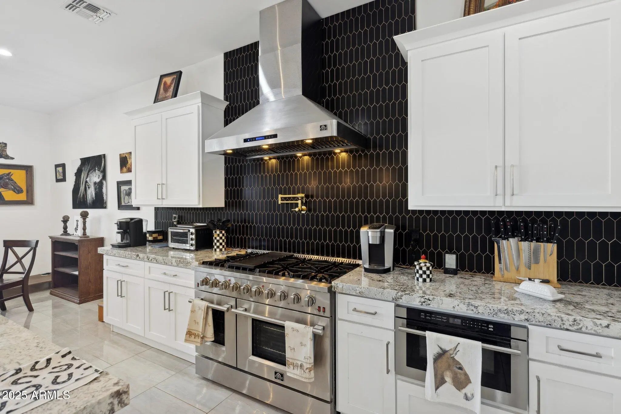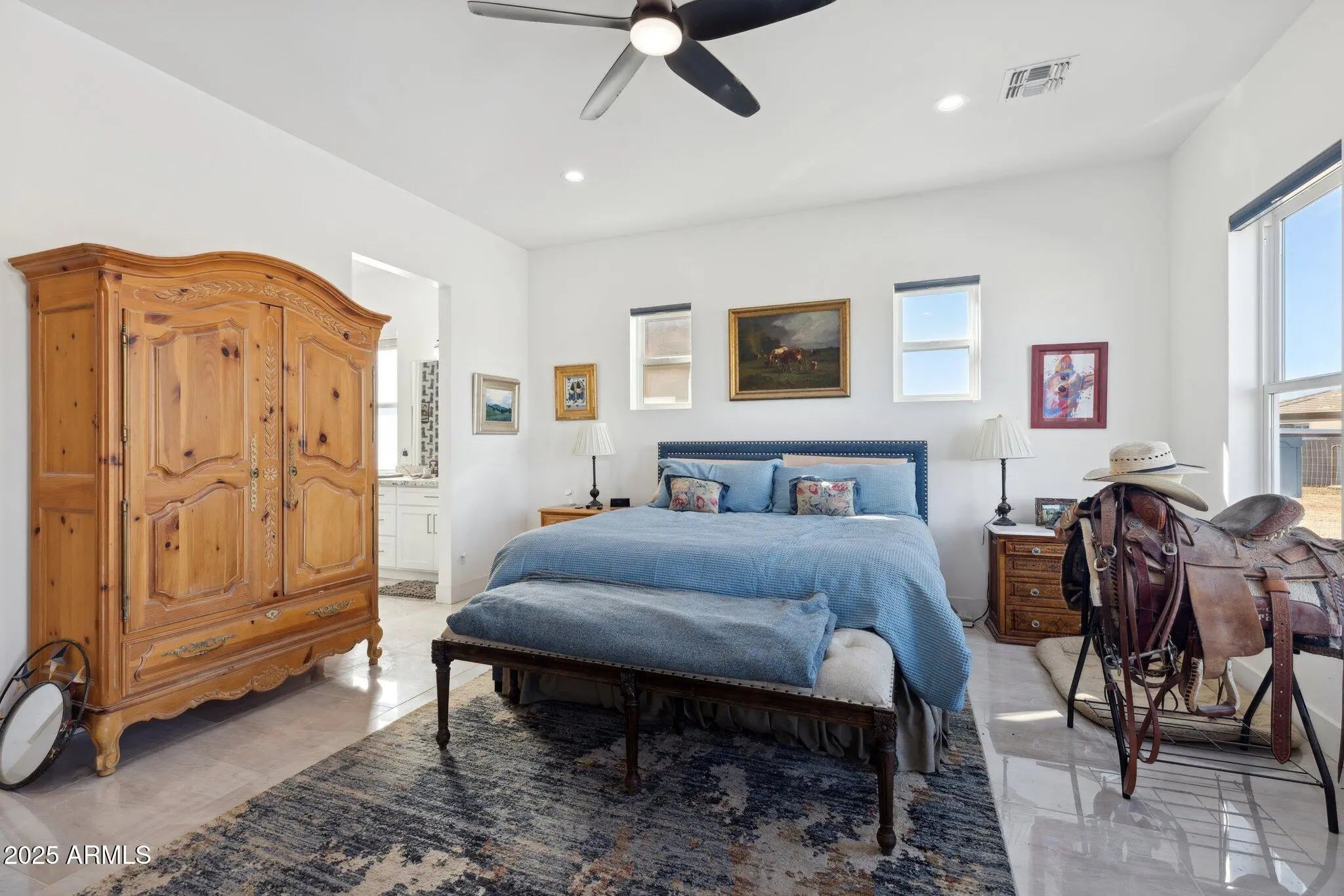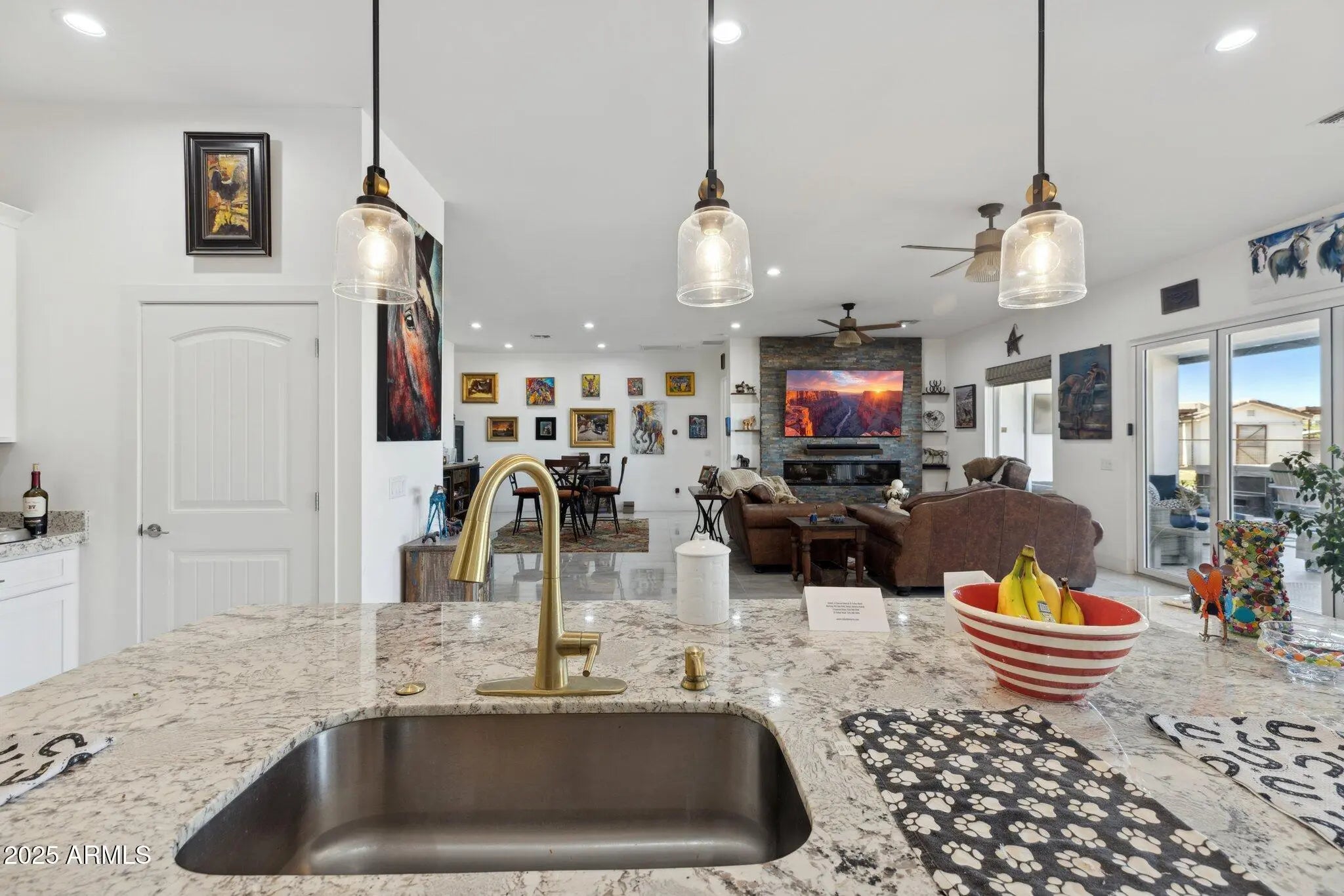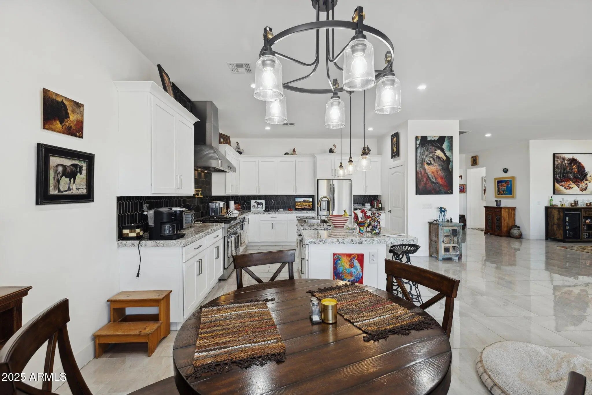 NO HOA! MOUNTAIN VIEWS! Welcome to this custom built 3 bedroom, 3.5 bath home situated on a full acre. Thoughtfully designed with superior craftsmanship and attention to detail, this unique property offers the perfect blend of luxury, space, and functionality. Upon arrival, decorative iron doors welcome you into a grand living room filled with natural light and highlighted by elegant marble tile flooring. The open layout flows seamlessly into a chef-inspired kitchen featuring rich granite countertops, stainless steel appliances, a high-end gas range with custom hood, stylish backsplash, and a spacious island made for gathering and entertaining. The primary suite is a private retreat with upgraded lighting, custom blinds, and an oversized walk-in shower. Two additional guest bedrooms each include their own private bathrooms offering exceptional comfort and privacy while a convenient half bath adds to the home's thoughtful design. Step outside to a fully fenced backyard designed with versatility in mind. The expansive area offers ample space for RV parking and all your outdoor toys. It also includes shelters, a tack room, and wash rack should you prefer horses. And custom iron gates provide easy access. Whether you're storing, riding, or exploring this property is built to support an active lifestyle. A covered patio overlooks the open landscape and provides the perfect place to relax, along with a plunge pool and above-ground spa for year- round enjoyment. With plenty of room to enjoy wide-open spaces and scenery along with the freedom of NO HOA, this property is a rare find in Coolidge.