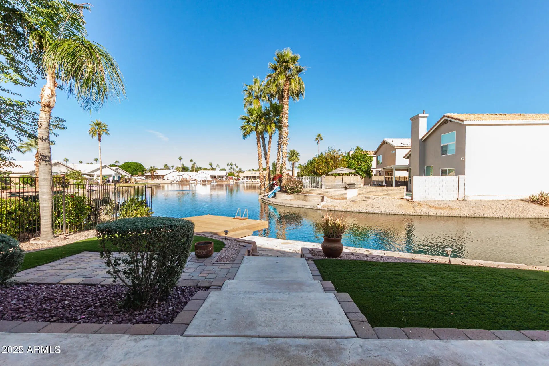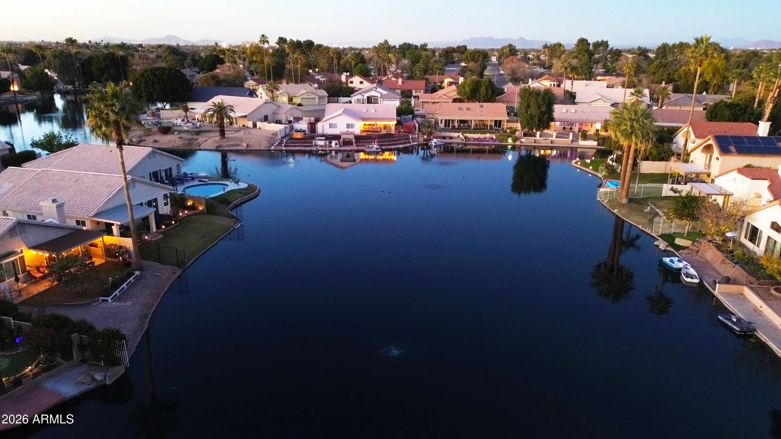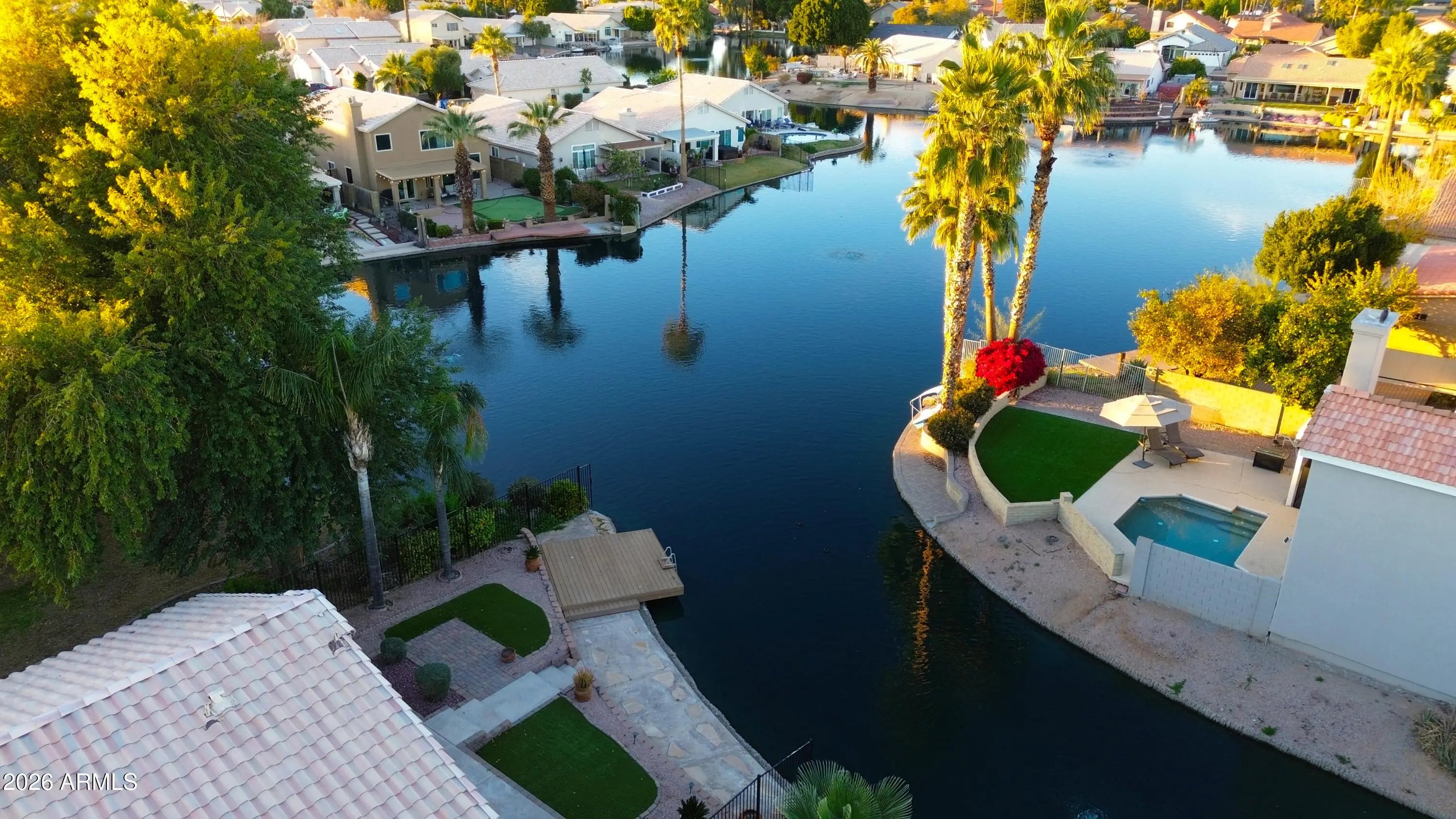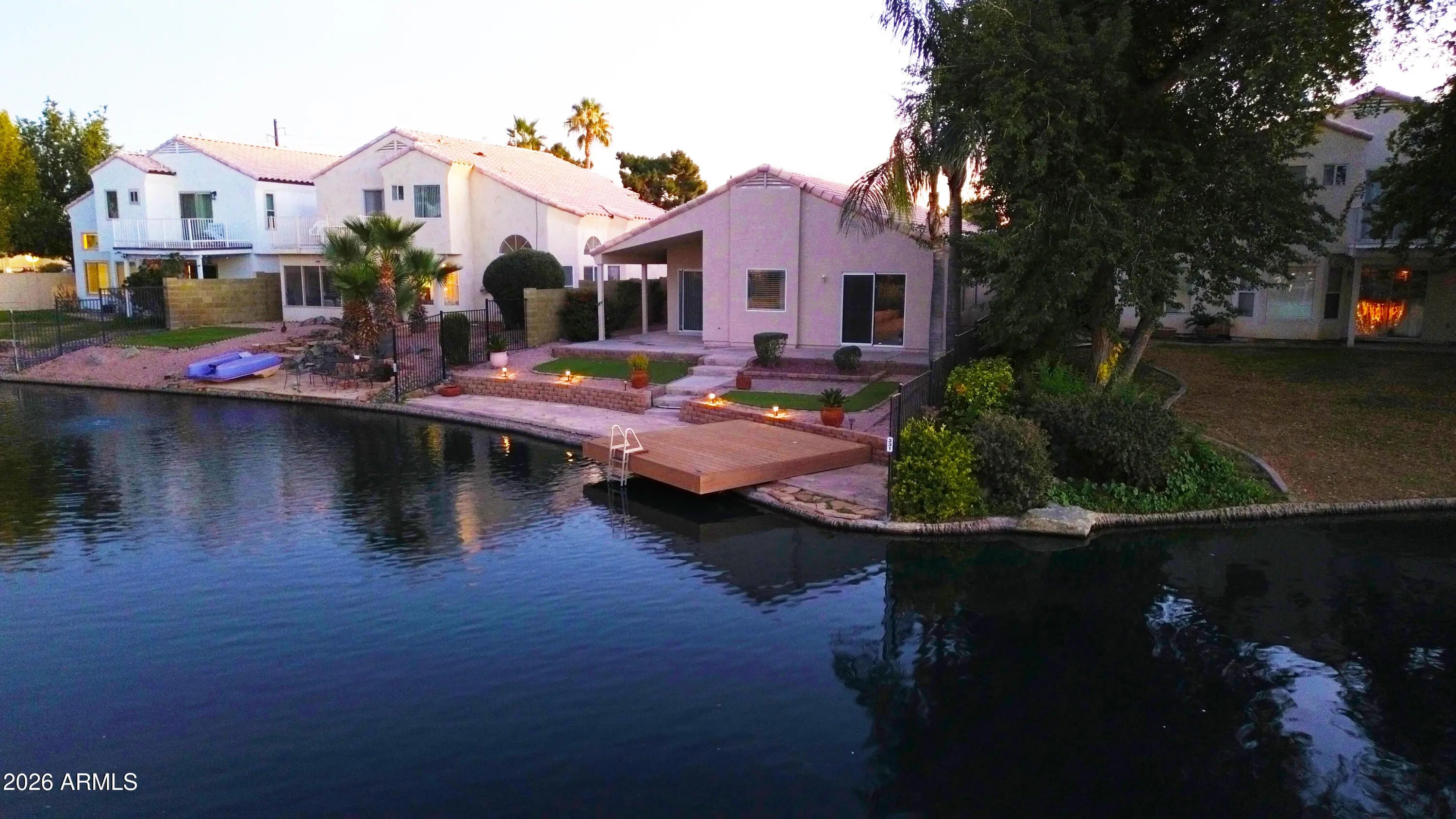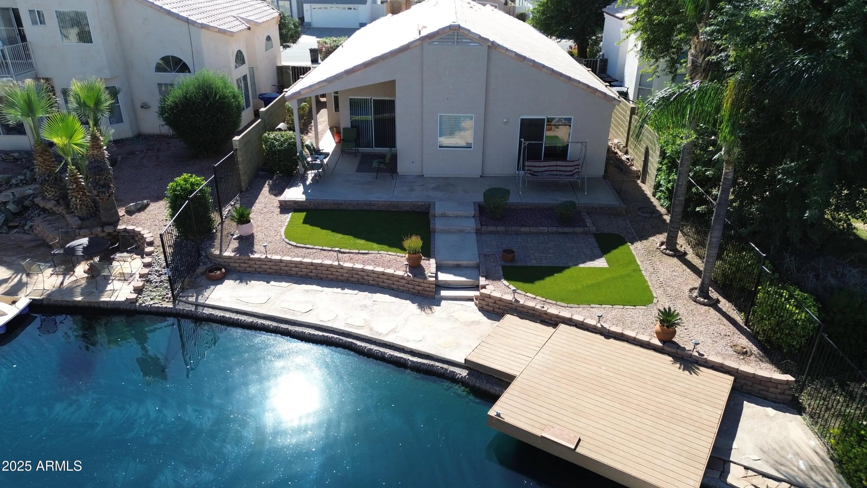 Welcome Home!!! This gorgeous 3 bedroom 2 bath waterfront home in Chandler is in a fantastic location. Close to restaurants, shopping, schools, parks, down town Chandler & easy access to the 202 Fwy. You'll love the layout of this home. Your kitchen offers new granite counter tops & sink, white appliances, a pantry & an island/breakfast bar for extra prep & storage. Your spacious master suite offers a plethora of natural light, a walk in closet, dual granite vanity, a walk in tiled shower & a soaking tub to enjoy, as well as direct access to your backyard that looks out over the lake. This water front property also offers new ceiling fans, plantation shutters, a bay window in the living room, vaulted ceilings, a two car garage & a front security door for your privacy. Your low maintenance backyard offers a covered patio with extended pavers, artificial grass, a boat dock & stunning lake views. This gem in the desert is a Great Buy & a Must See!!!