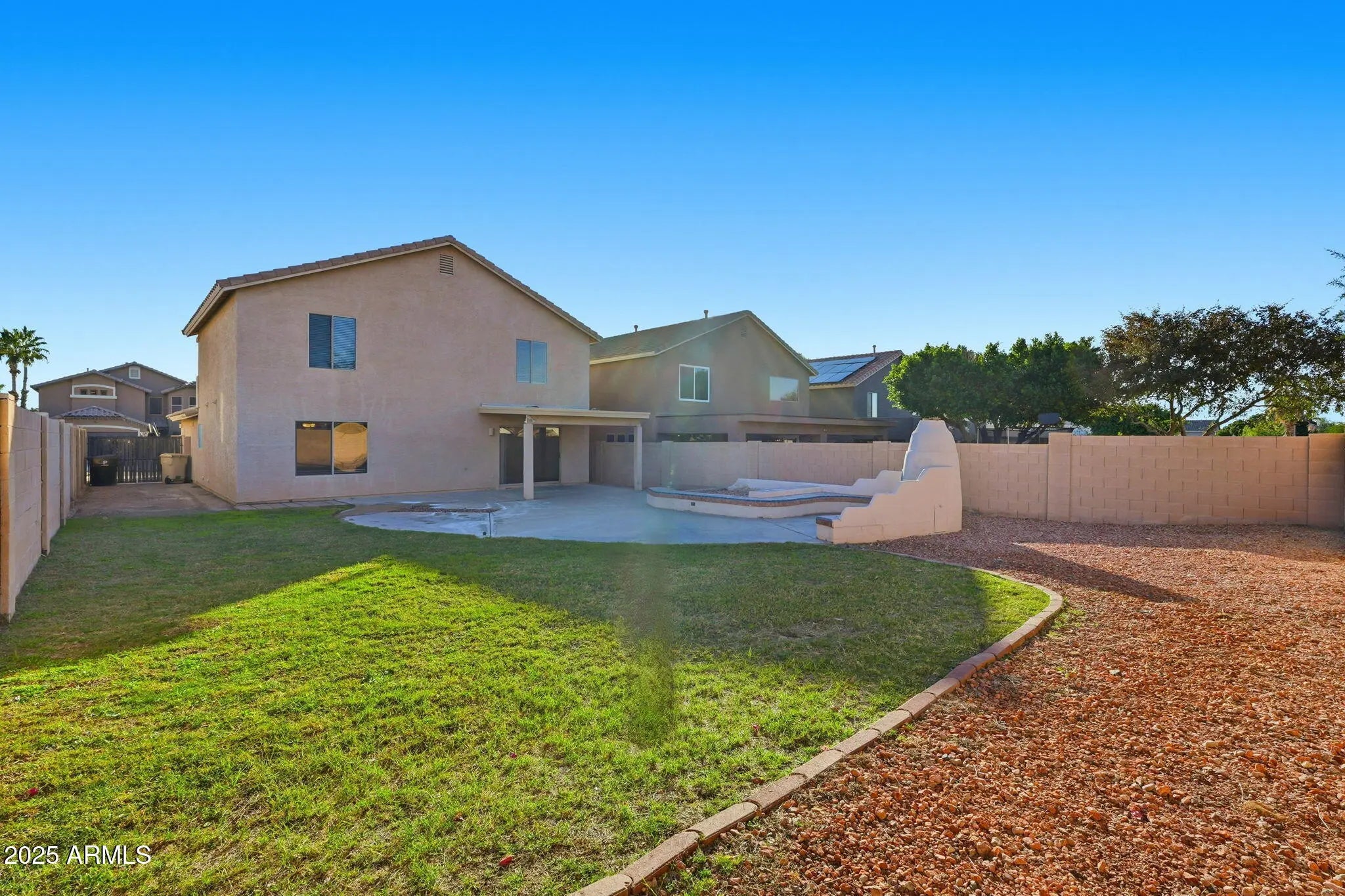 Spacious 2-story home featuring 4 bedrooms and 2.5 bathrooms with an inviting open floor plan, kitchen bar, and cozy living area. The primary suite includes a double vanity plus a separate tub and shower, with another full bath also offering a double vanity. Enjoy the versatile loft, a relaxing back porch, and a fenced backyard complete with a charming kiva-style outdoor fireplace—perfect for Arizona evenings and entertaining.