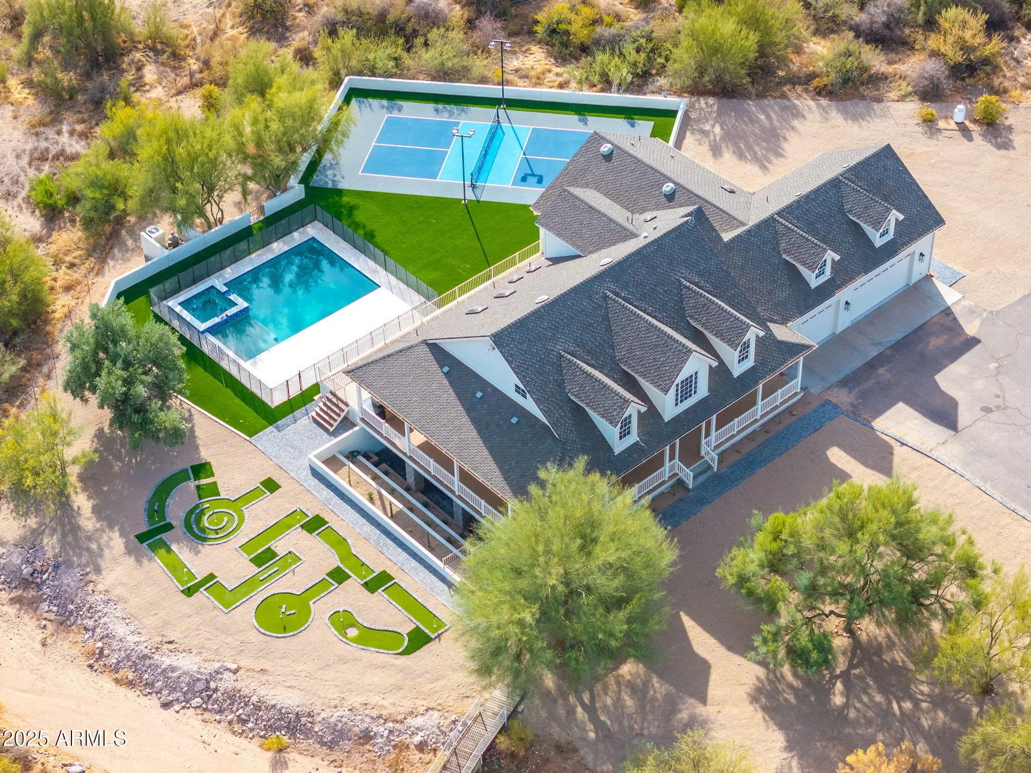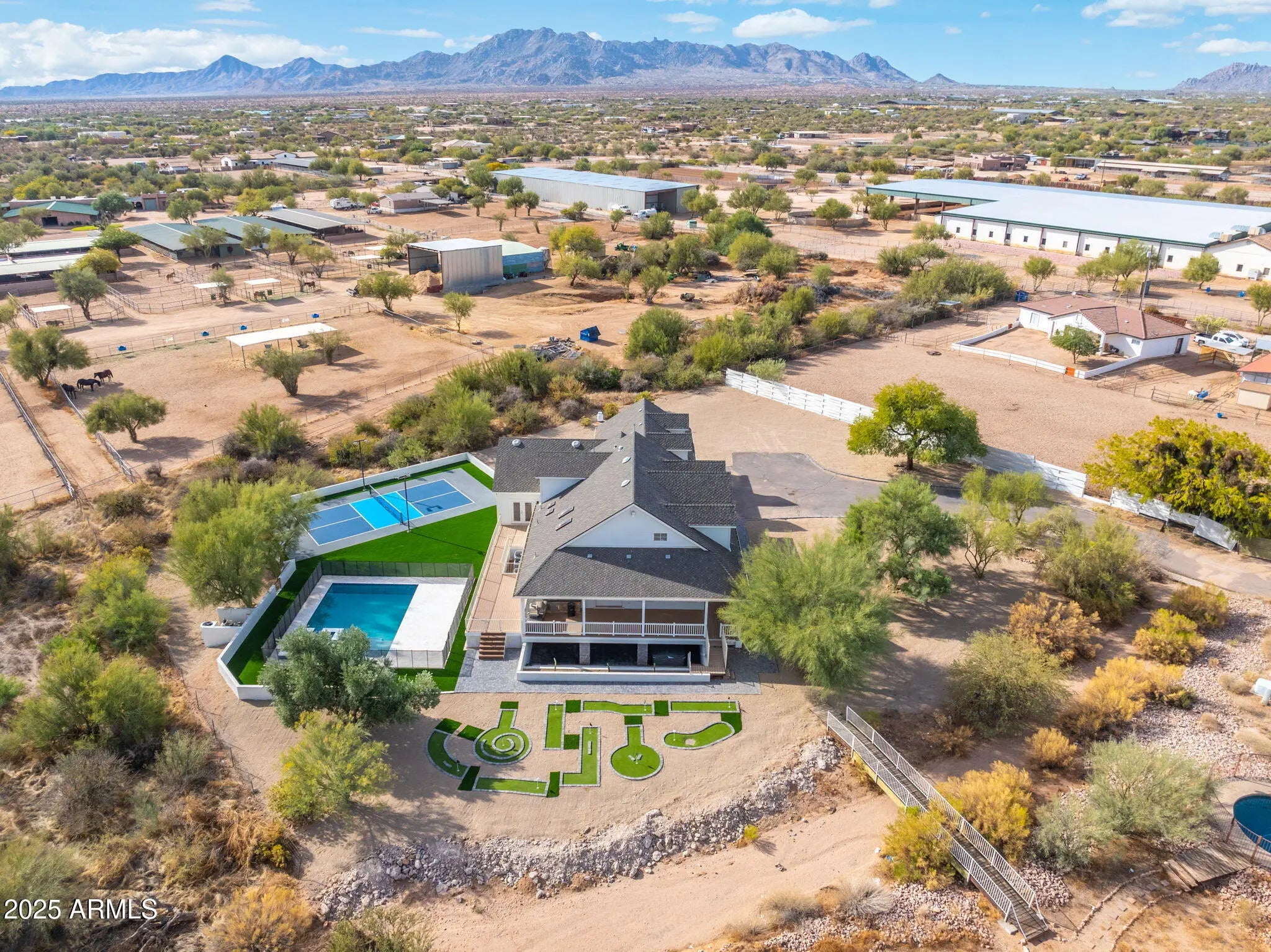 Huge House that has it all! Brand new Pickleball, Pool and Spa, as well as Mini Golf. Big lot with room to add whatever you like while still taking advantage of all the ammenities. Horse rights with room for stalls! The loan has a prepayment penalty for another 11 months, so can either do an extended purchase contract or lease purchase until close.