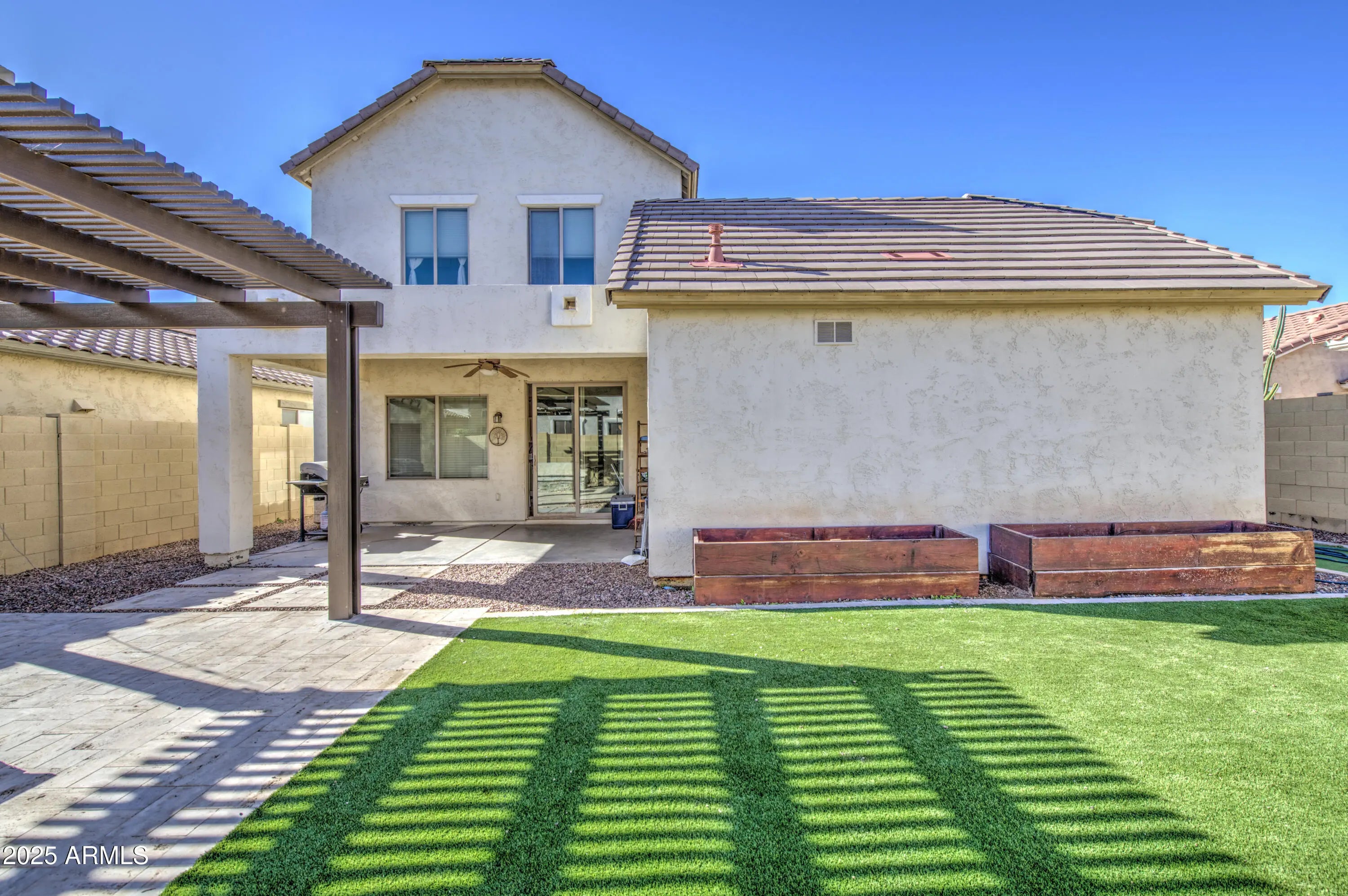 Beautifully Designed Two-Story Home in Cecina's Exclusive Gated Community. Discover this stunning residence that perfectly blends elegance, comfort, and functionality. Featuring 3 spacious bedrooms and 2.5 bathrooms, this home offers ample space for both everyday living and entertaining. Elegant Flooring, Lots of Natural Light, Open Concept Kitchen with an Island and a Breakfast Bar, The yard offers a covered patio, low-maintenance turf with a putting green, and a stylish ramada with built-in seating and a cozy firepit-Perfect for Gatherings all year round!