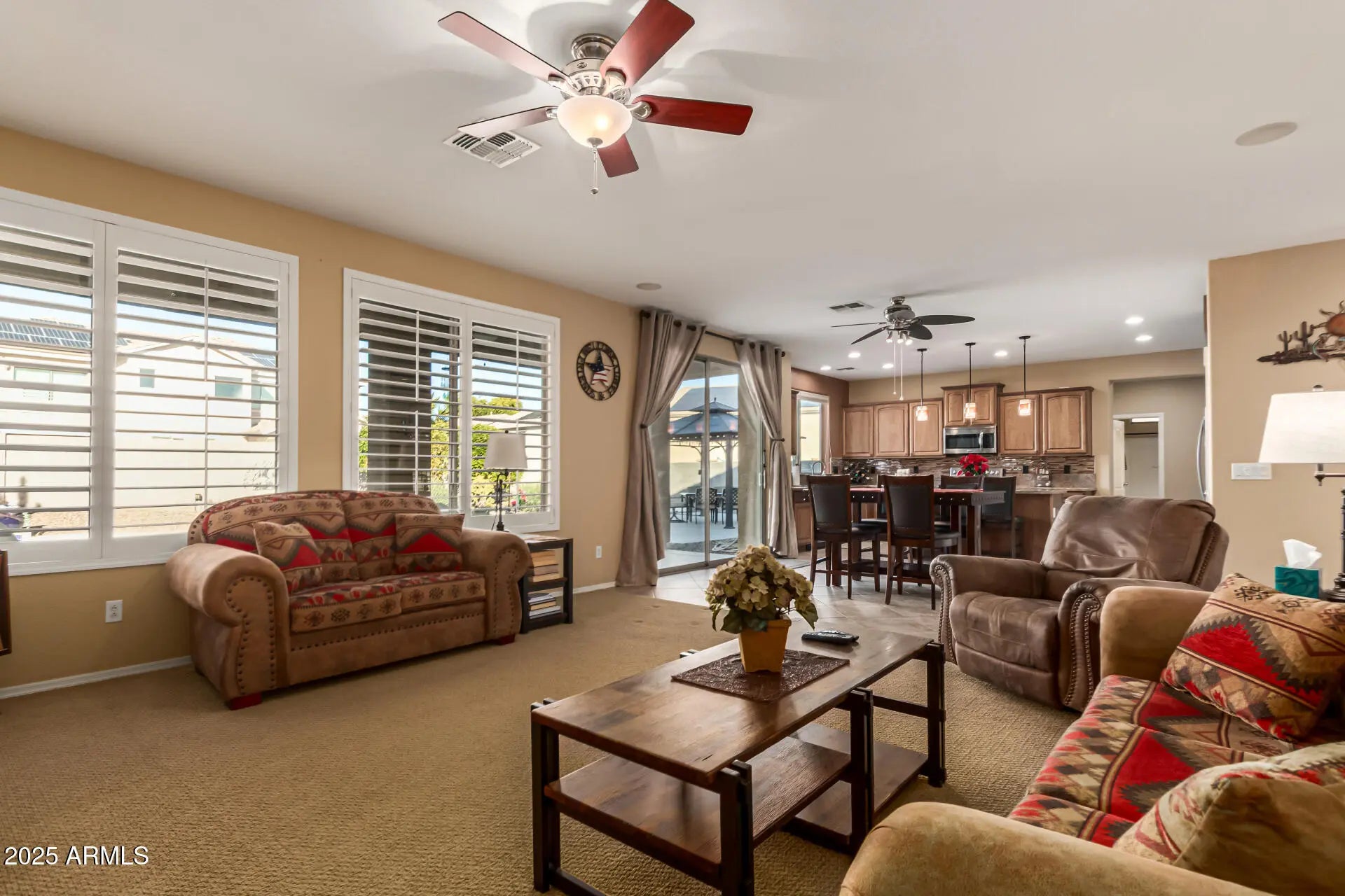 Welcome Home! This GINORMOUS 5 Bedroom+Flex Space+Loft, 3 Bath Home, w/ Split 3-Car Garage, RV Gate & Extra driveway space (envision all the ''toys''!) & gorgeous pool & heated spa, awaits YOU! Want more? Your chef's kitchen features SS appliances/granite counters/breakfast island/pantry/coffee bar area. Keep going? Soaring 20-ft ceiling in living area/Plantation Shutters/9 Keep-you-cool ceiling fans/Guest BR or In-Law Suite w/Full Bath on main level. Still not enough? Your oasis yard includes not only the pool/spa, but a lighted ramada, shed on the side, & concrete pad behind the RV for even more child/adult playthings! Not convinced yet? Extensive LED lighting w/ adjustable ''warmth'' settings, new spa heater (2024). Close to shopping/restaurants/schools/Loop 303. Alas.. paradise found!