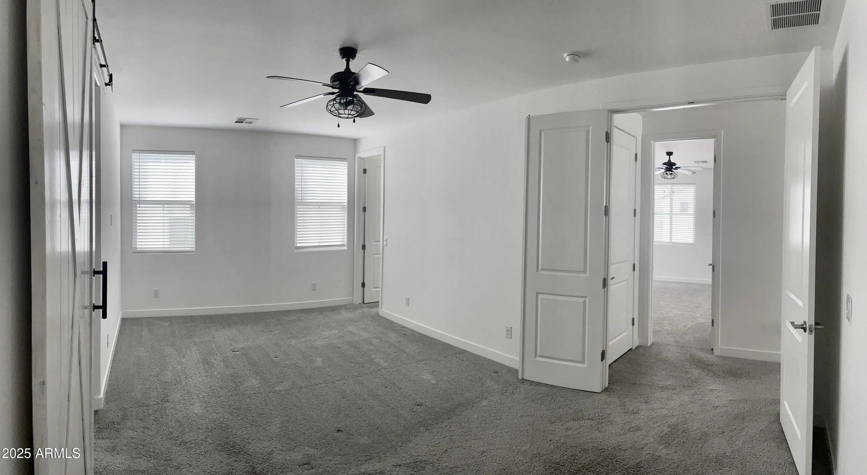 New Price Reduction! Move-in ready with brand new carpet installed February 2026! A bright, warm and spacious atmosphere flows throughout this lovely modern home. This spacious four bedroom residence offers two primary suites - one upstairs and one downstairs - while the other two bedrooms are upstairs and are generously sized.Each primary suite features sliding barn doors opening to a private ensuite bath. Walk-in closets in all bedrooms with most walk-in closets featuring windows providing an abundance of beautiful natural light. An open great room pairs beautifully with the upgraded white kitchen cabinetry, quartz counter, center kitchen island & stainless appliances. Wood looking ceramic tile downstairs and NEW installed carpet in all bedrooms, upstairs hallway and stairway. Existing 1st FHA assumable w/qualify loan at 2.625%, loan bal. of approx. $312K. The two car garage features an epoxy floor, shelving and direct entry to home. The backyard is complete with ground pavers and turf grass for low-maintenance living. Resort-style Cadence Community amenities are in abundance featuring a large community pool with water slides, a lap pool & hot tub, parks, playgrounds, sports courts, fitness center, community center, game room, STIR community social functions, and an event center. Close to Highways 24, 60, 202, and only minutes away from numerous shopping destinations and dining choices.