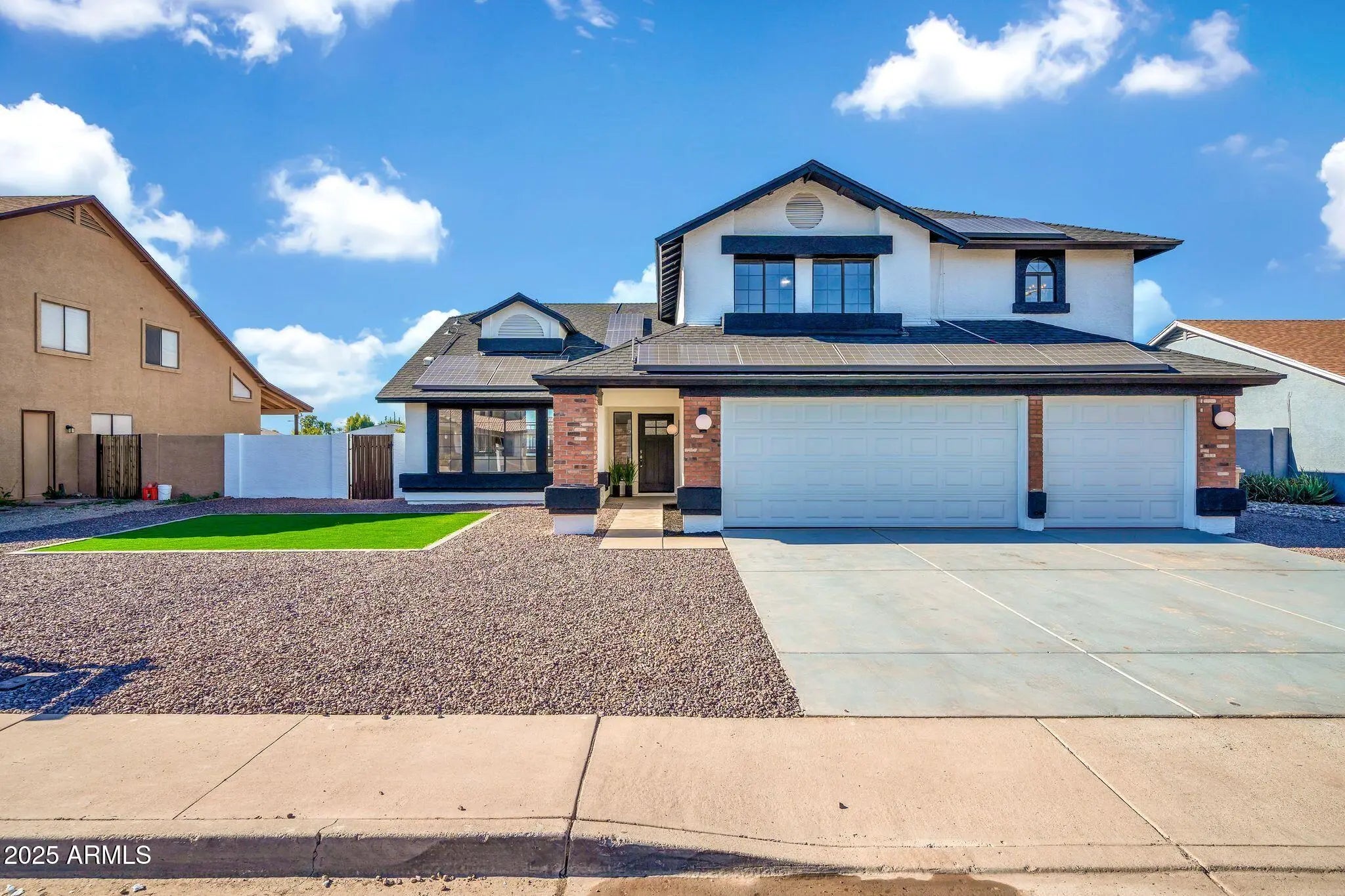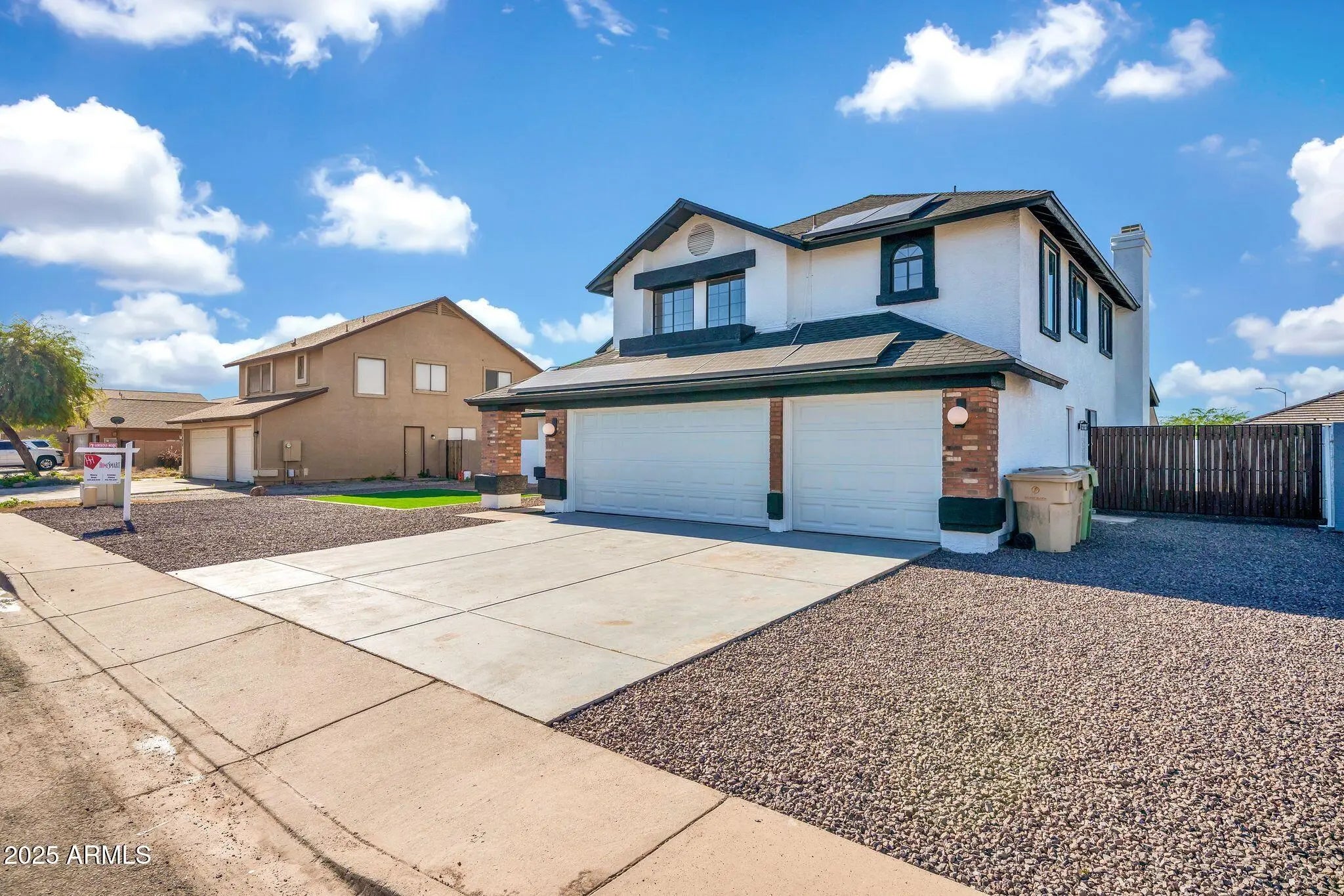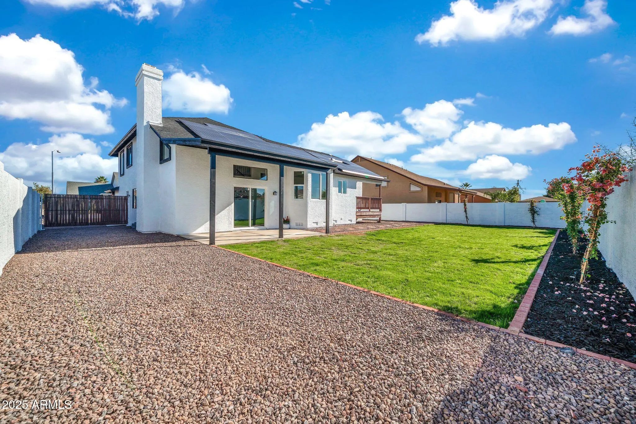 STUNNING HOME that checks all of the boxes! no HOA and RV gate with ample space for your toys. This home has a brand new roof and the interior has been tastefully remodeled with a full bathroom and a bedroom downstairs for added convenience plus new tile flooring throughout the whole house NO CARPET, new paint, new kitchen cabinets, new lightning, beautiful backyard with new irrigation system, new garage doors and more!. Energy efficient home with leased solar panels. Make this home yours today! ESPECTACULAR CASA con todo lo que necesitas! no HOA y RV gate con mucho espacio. Techo nuevo, el interior con hermoso diseno, una recamara y bano abajo, pisos de ceramica y NO alfombra en toda la casa, nueva pintura, gabinetes de cocina nuevos, puertas de garage nuevas, sistema de irigacion