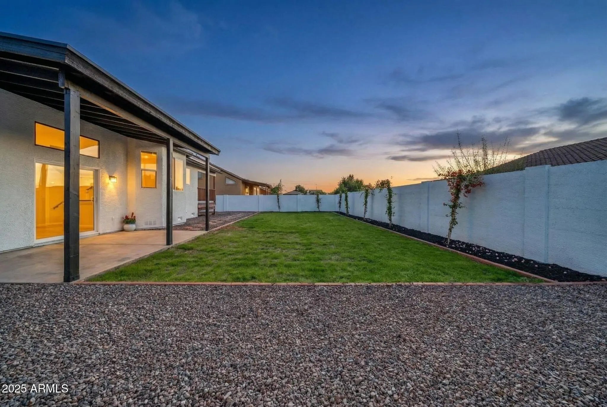 East/West Exposure, Gravel/Stone Front, Grass Back, Synthetic Grass Frnt, Auto Timer H2O Back