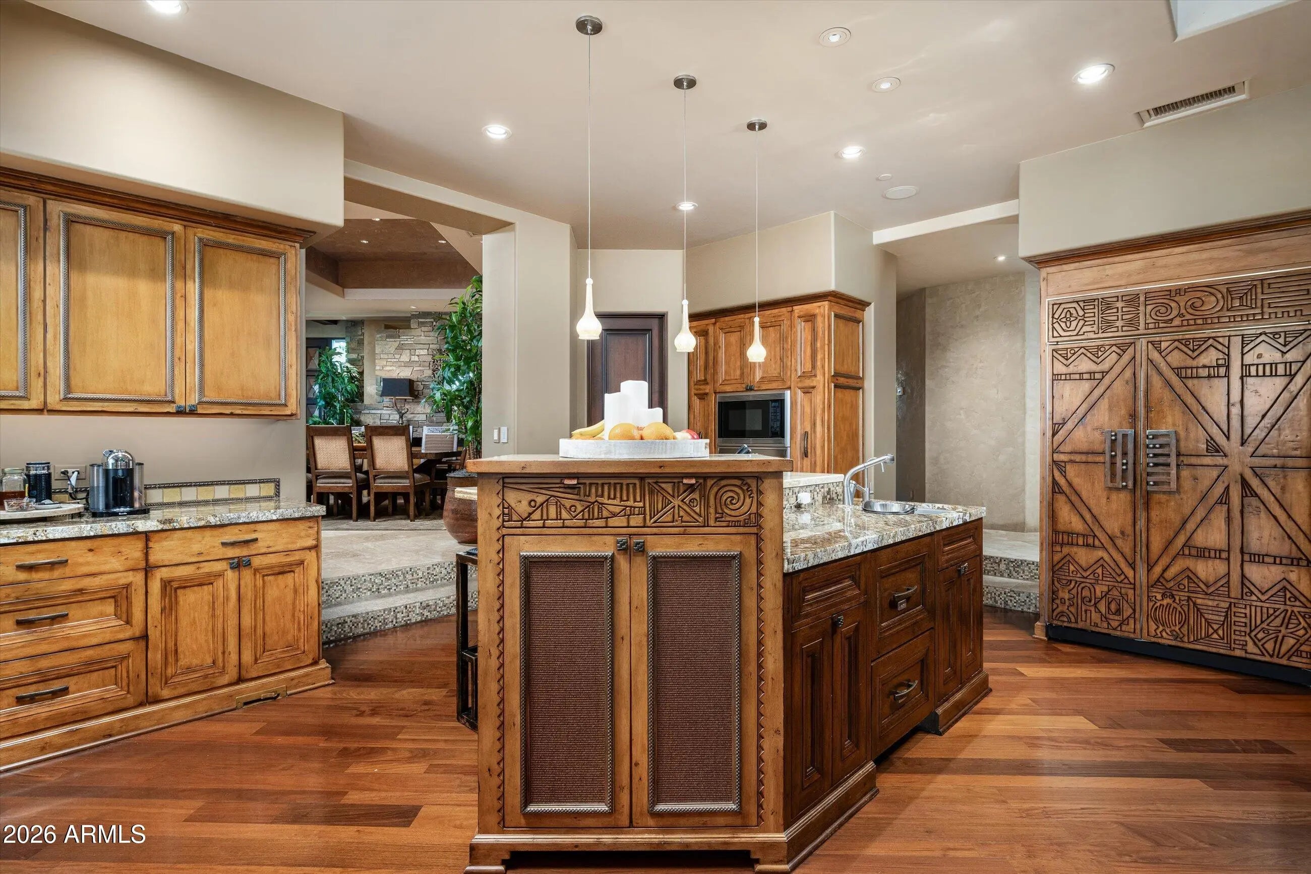 Welcome to Hearthstone in Mirabel, a timeless contemporary design by Terry Kilbane crafted by Manship Builders. Offering coveted access to a GOLF MEMBERSHIP at The Mirabel Club. Exceptional attention to detail with an extensive use of stone, copper and hand-hewn woods. Interior details include limestone and walnut and oak plank flooring, Venetian plaster, hand-carved alder cabinetry, stone and granite slab counter surfaces and custom lighting fixtures. Crestron home automation and lighting. Split floor plan with exercise room/office off the primary suite. Outdoor entertaining includes a large cover patio with built-in radiant heaters, fireplace, heated pool, two spas and a gas fire pit. South-facing golf course lot with warm, winter sunset views.