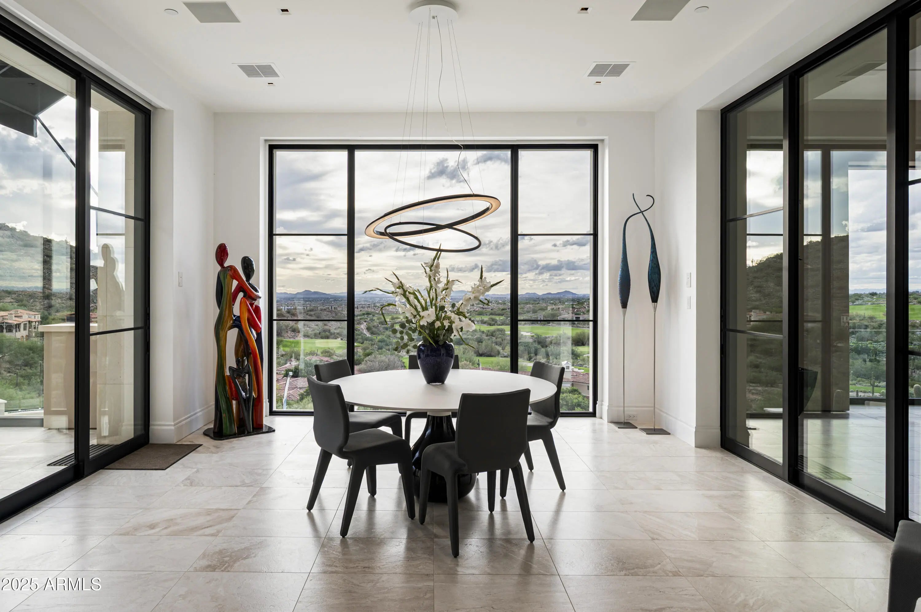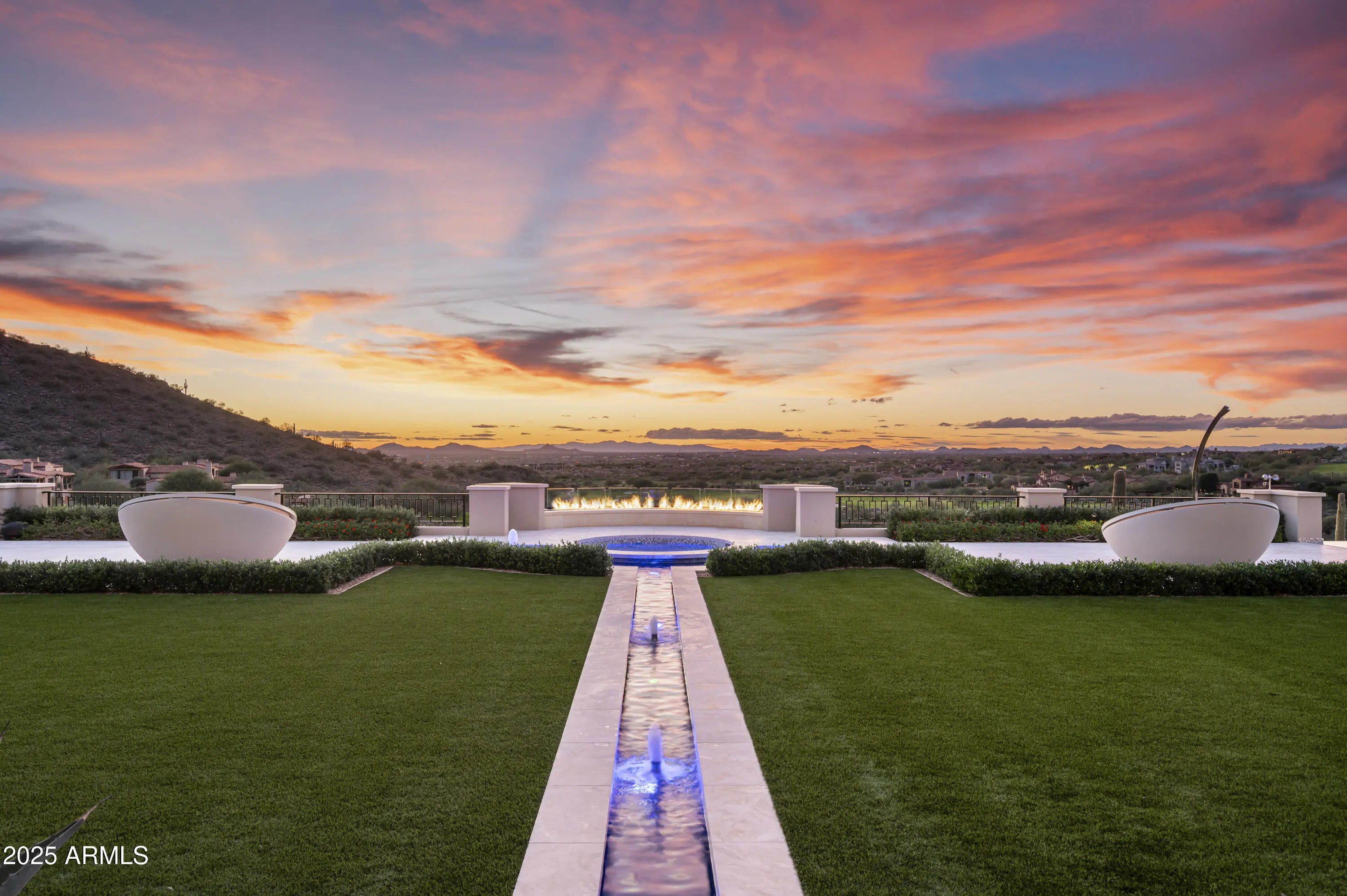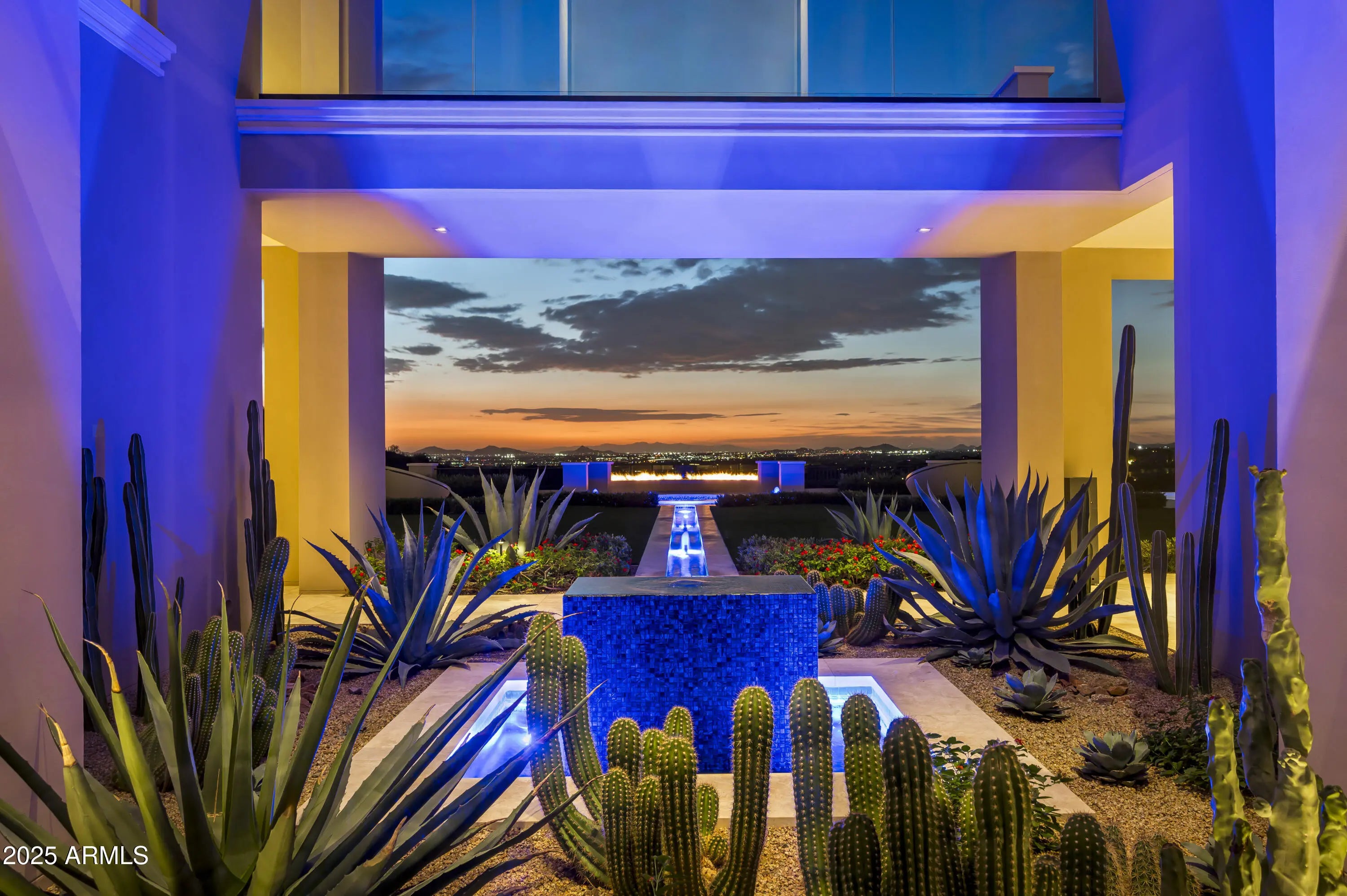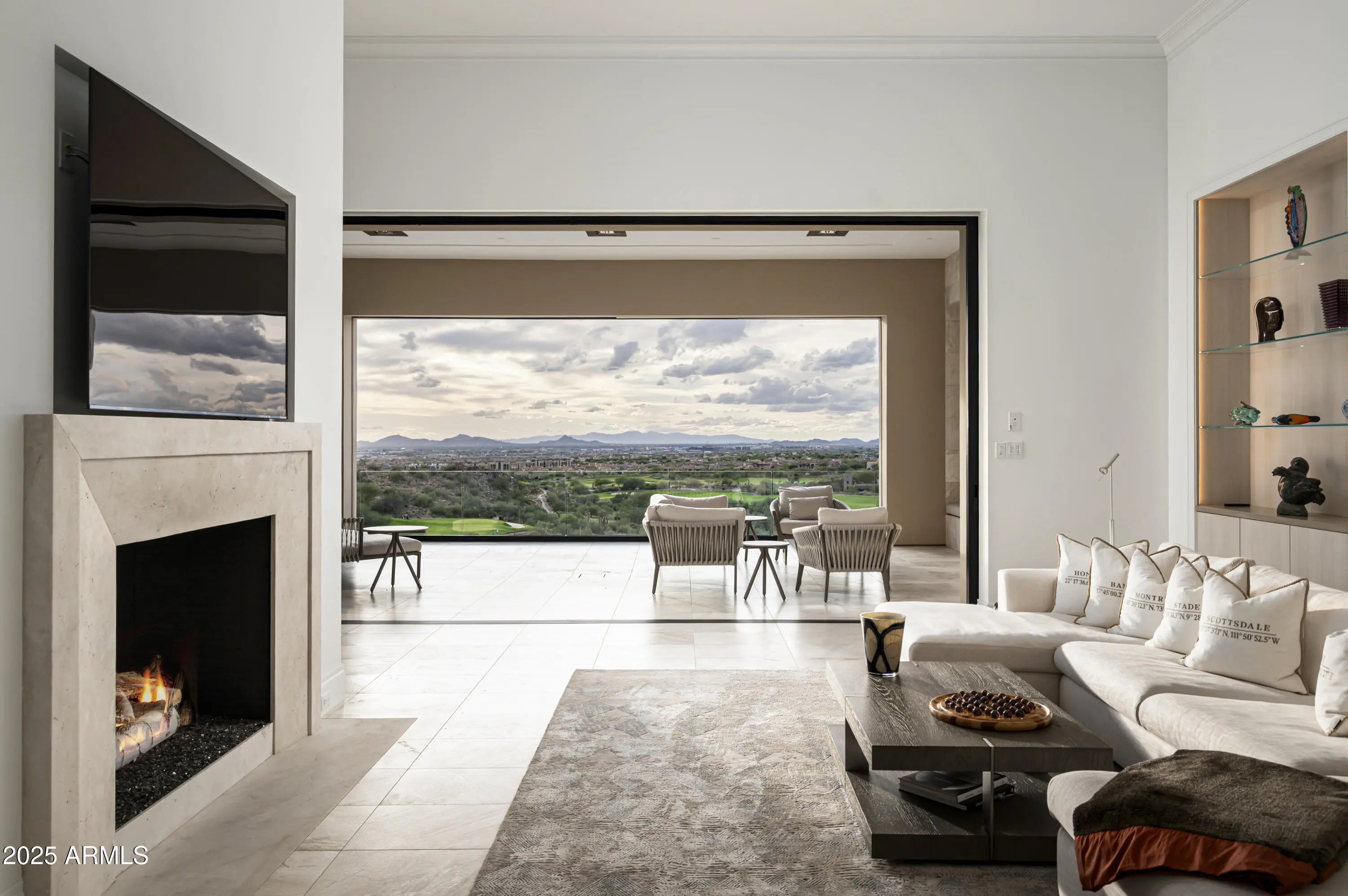 A residence of architectural significance and unmatched craftsmanship, this modern estate sits on an extraordinary nearly 13-acre private cul-de-sac lot in the prestigious Horseshoe Canyon of Silverleaf. Designed by PHX Design Architecture and built by Salcito Custom Homes in 2021, it captures dramatic, unobstructed views of the golf course, mountains, and city lights—offering an unmatched level of scale, privacy, and sophistication. The hallmark of the home is its unparalleled indoor-outdoor connection: every room opens directly to the pool and spa terrace, creating a continuous flow that elevates daily living and showcases the beauty of the desert landscape. This architectural feature is truly one-of-a-kind and the defining centerpiece of the home's design. Encompassing 15,163 sq. ft. of livable space and 23,260 sq. ft. under roof, the estate offers 5 bedrooms, 5 full and 4 half bathrooms, two beautifully appointed offices - including a wood-paneled executive study and a curated collection of refined living and entertaining spaces. The Downsview gourmet kitchen features dual islands, Taj Mahal quartzite, Wolf, Sub-Zero, Miele appliances. The formal living room is anchored by an architectural marble fireplace adjacent to a full bar, opening seamlessly to the terraces beyond. The elegant formal dining room offers a full experience- featuring a custom designed, humidified, air conditioned, glass-enclosed Brillante wine cellar and breathtaking view corridors. Additional spaces include a warm and inviting family room with a double-sided fireplace, a state-of-the-art home theater, a dedicated fitness room, and a poolside game/rec room. Premium finishes and materials are showcased throughout: Artitalia wood flooring, Diana Royale stone, custom cabinetry, Rocky Mountain hardware, Western and Loewen window systems, and an Arcadia Custom Accoya entry door. Slab selectionsincluding Athos White, Crystallo Lumix, Egeo Blue Ondulato, Brilliant Black quartzite, and Calacatta Gold suedeare thoughtfully placed to elevate every space with richness and texture. Outdoor living is resort-caliber, centered around a Pebble Sheen infinity-edge pool and an all-tile spa finished with custom Oceanside Muse mosaic glass. Multiple covered patios, terraces, two outdoor fireplaces, a built-in outdoor shower, and an expansive all-season cabana with bar, A/C, heating, retractable glass walls, and automated sunshades create an unmatched environment for year-round entertaining. Technologically advanced and highly efficient, the home is powered by Josh AI whole-home automation, 13 Carrier Greenspeed HVAC units, and includes three laundry rooms, a Celtic elevator, a 6-car garage with a large auto court, and a 2,344 sq. ft. pre-plumbed future flex space above the garage. Privately positioned in one of Silverleaf's most exclusive enclaves, this estate embodies the pinnacle of modern luxuryarchitecturally inspiring, technologically advanced, and crafted with an exceptional level of precision. A true masterwork designed for both grand-scale entertaining and serene everyday living. Silverleaf, located in North Scottsdale, Arizona, is a prestigious guard-gated community known for its luxurious estates, exclusive golf courses, private Club, and stunning desert landscapes. The Tom Weiskopf-designed Silverleaf Golf Course is a highlight for golf enthusiasts. With a blend of Spanish and Mediterranean-inspired architecture, the community offers a high standard of living, including upscale amenities like spas, fine dining, and exclusive shopping. Residents enjoy a harmonious balance between modern luxury and the natural beauty of the desert environment, making Silverleaf a sought-after destination for those seeking an exceptional lifestyle in North Scottsdale.
