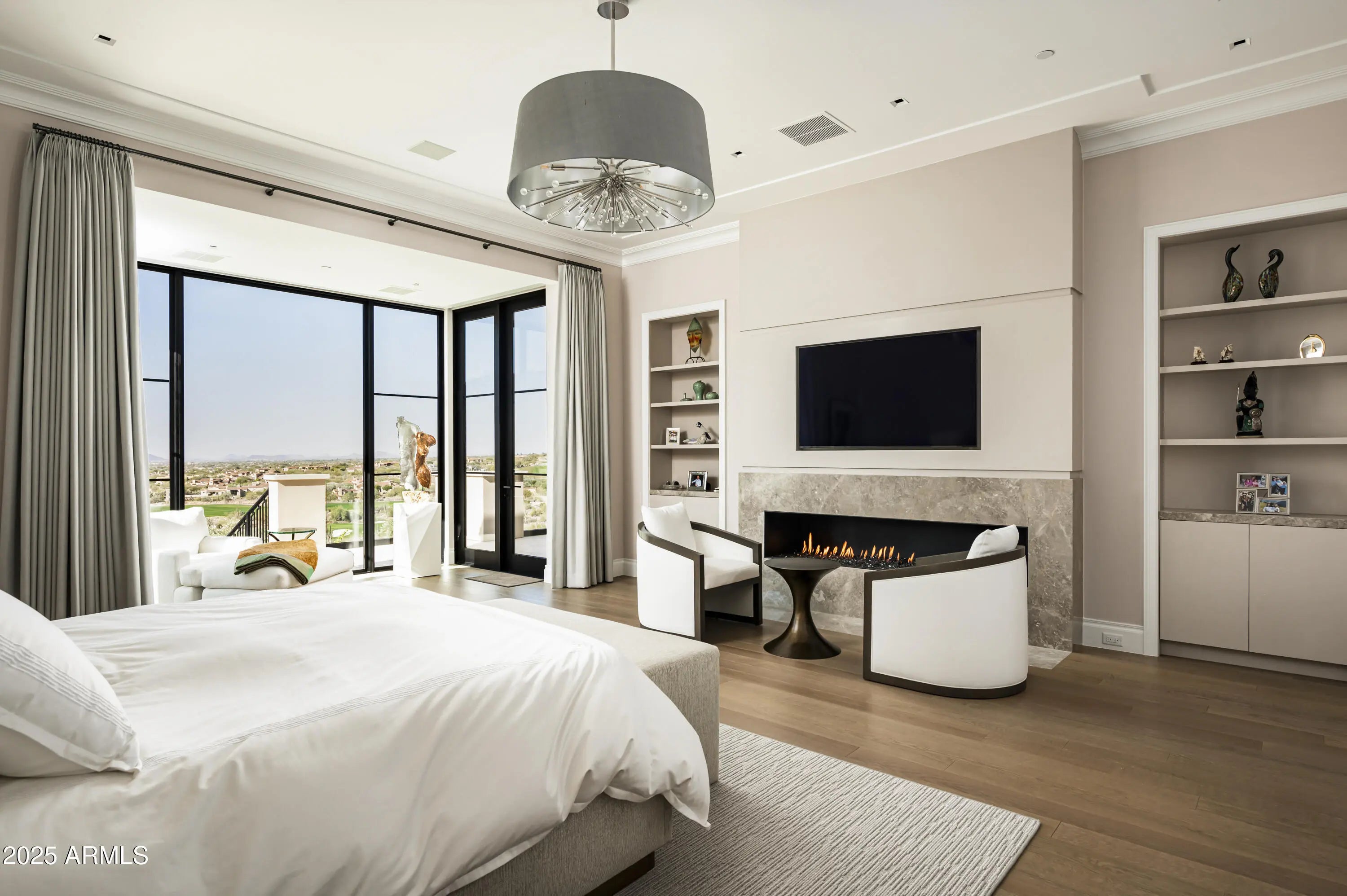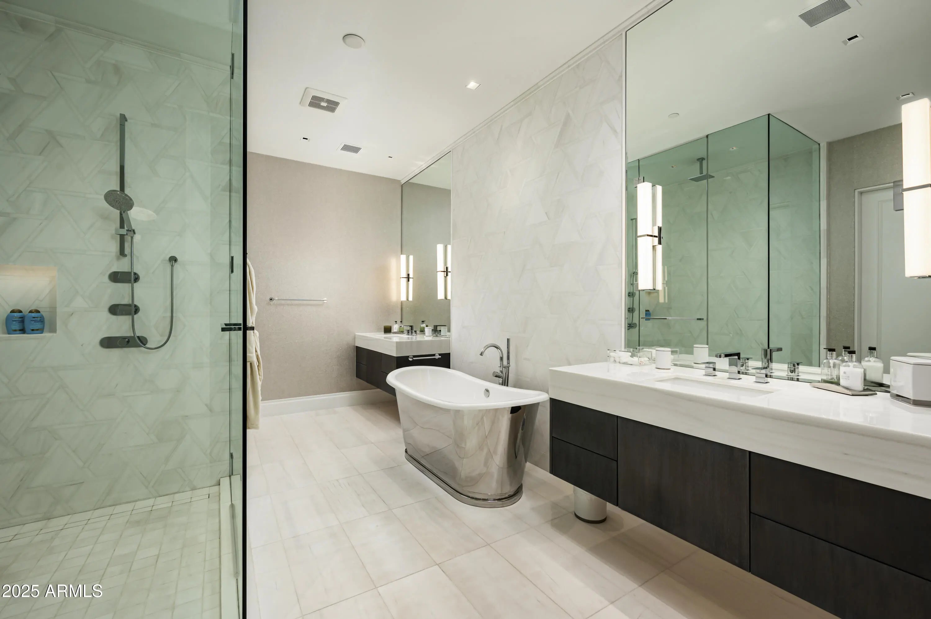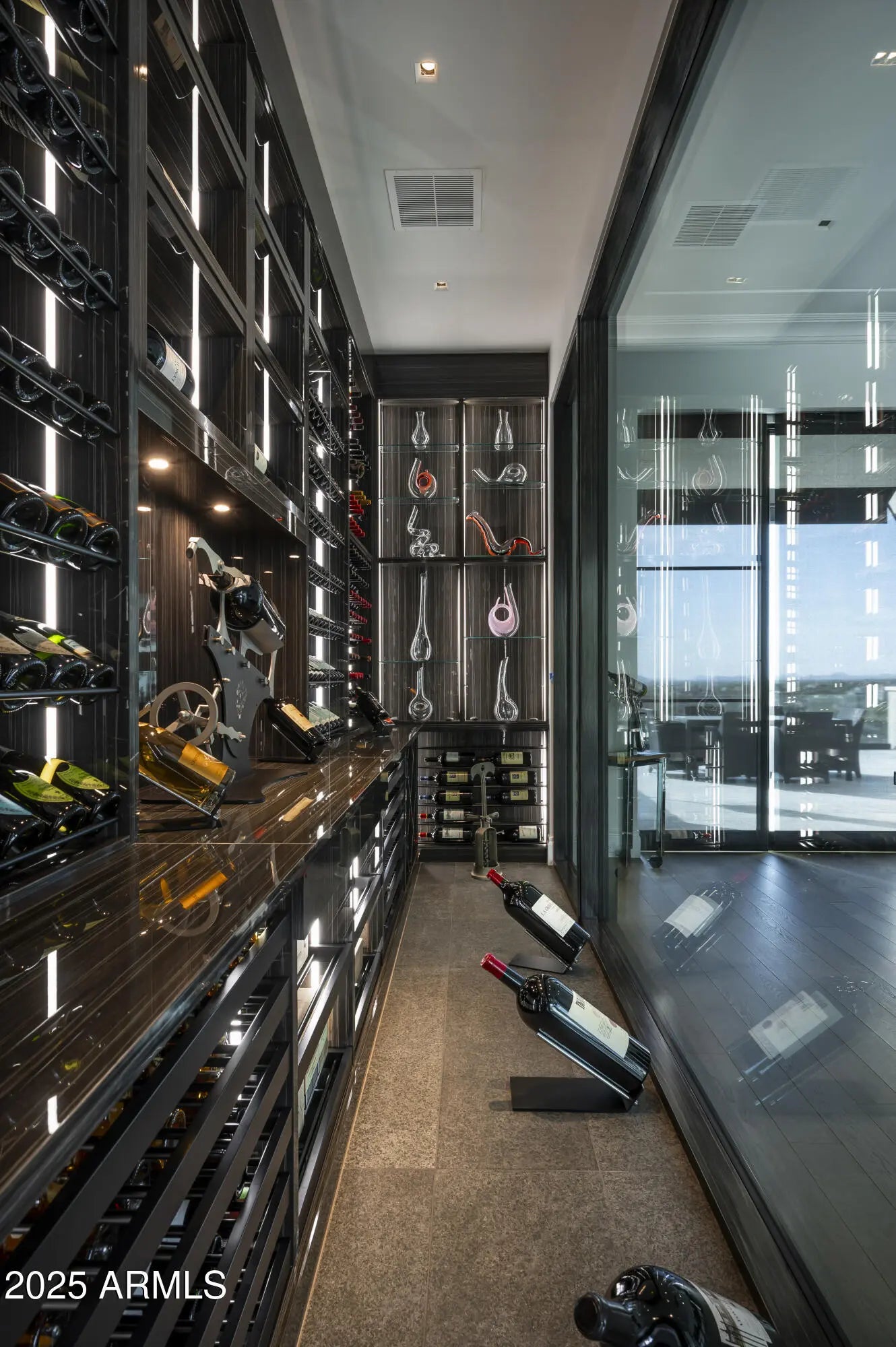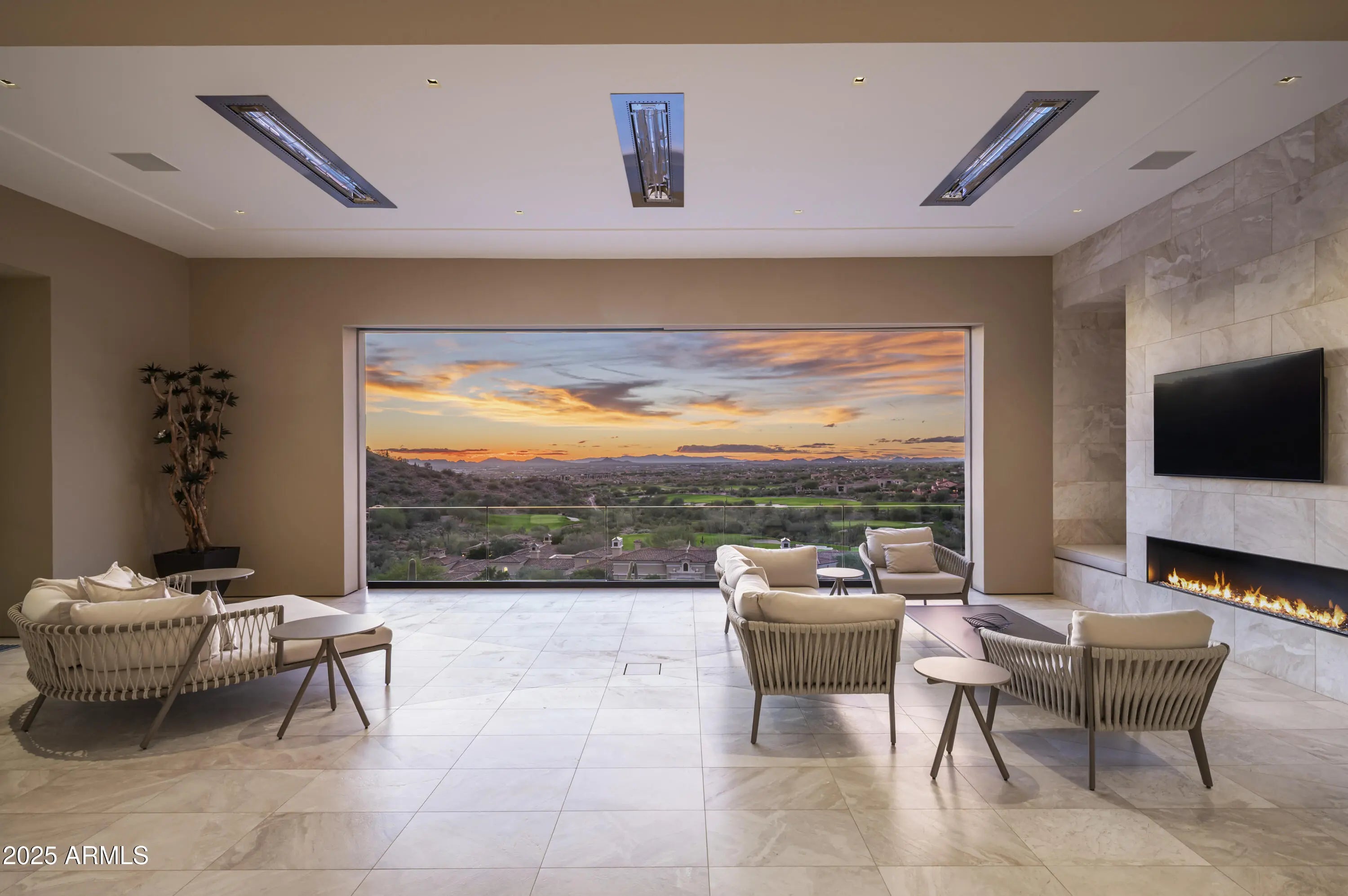 A residence of architectural significance and unmatched craftsmanship, this modern estate sits on an extraordinary nearly 13-acre private cul-de-sac lot in the prestigious Horseshoe Canyon of Silverleaf. Designed by PHX Design Architecture and built by Salcito Custom Homes in 2021, it captures dramatic, unobstructed views of the golf course, mountains, and city lights—offering an unmatched level of scale, privacy, and sophistication. The hallmark of the home is its unparalleled indoor-outdoor connection: every room opens directly to the pool and spa terrace, creating a continuous flow that elevates daily living and showcases the beauty of the desert landscape. This architectural feature is truly one-of-a-kind and the defining centerpiece of the home's design. Encompassing 15,163 sq. ft. of livable space and 23,260 sq. ft. under roof, the estate offers 5 bedrooms, 5 full and 4 half bathrooms, two beautifully appointed offices - including a wood-paneled executive study and a curated collection of refined living and entertaining spaces. The Downsview gourmet kitchen features dual islands, Taj Mahal quartzite, Wolf, Sub-Zero, Miele appliances. The formal living room is anchored by an architectural marble fireplace adjacent to a full bar, opening seamlessly to the terraces beyond. The elegant formal dining room offers a full experience- featuring a custom designed, humidified, air conditioned, glass-enclosed Brillante wine cellar and breathtaking view corridors. Additional spaces include a warm and inviting family room with a double-sided fireplace, a state-of-the-art home theater, a dedicated fitness room, and a poolside game/rec room. Premium finishes and materials are showcased throughout: Artitalia wood flooring, Diana Royale stone, custom cabinetry, Rocky Mountain hardware, Western and Loewen window systems, and an Arcadia Custom Accoya entry door. Slab selectionsincluding Athos White, Crystallo Lumix, Egeo Blue Ondulato, Brilliant Black quartzite, and Calacatta Gold suedeare thoughtfully placed to elevate every space with richness and texture. Outdoor living is resort-caliber, centered around a Pebble Sheen infinity-edge pool and an all-tile spa finished with custom Oceanside Muse mosaic glass. Multiple covered patios, terraces, two outdoor fireplaces, a built-in outdoor shower, and an expansive all-season cabana with bar, A/C, heating, retractable glass walls, and automated sunshades create an unmatched environment for year-round entertaining. Technologically advanced and highly efficient, the home is powered by Josh AI whole-home automation, 13 Carrier Greenspeed HVAC units, and includes three laundry rooms, a Celtic elevator, a 6-car garage with a large auto court, and a 2,344 sq. ft. pre-plumbed future flex space above the garage. Privately positioned in one of Silverleaf's most exclusive enclaves, this estate embodies the pinnacle of modern luxuryarchitecturally inspiring, technologically advanced, and crafted with an exceptional level of precision. A true masterwork designed for both grand-scale entertaining and serene everyday living. Silverleaf, located in North Scottsdale, Arizona, is a prestigious guard-gated community known for its luxurious estates, exclusive golf courses, private Club, and stunning desert landscapes. The Tom Weiskopf-designed Silverleaf Golf Course is a highlight for golf enthusiasts. With a blend of Spanish and Mediterranean-inspired architecture, the community offers a high standard of living, including upscale amenities like spas, fine dining, and exclusive shopping. Residents enjoy a harmonious balance between modern luxury and the natural beauty of the desert environment, making Silverleaf a sought-after destination for those seeking an exceptional lifestyle in North Scottsdale.