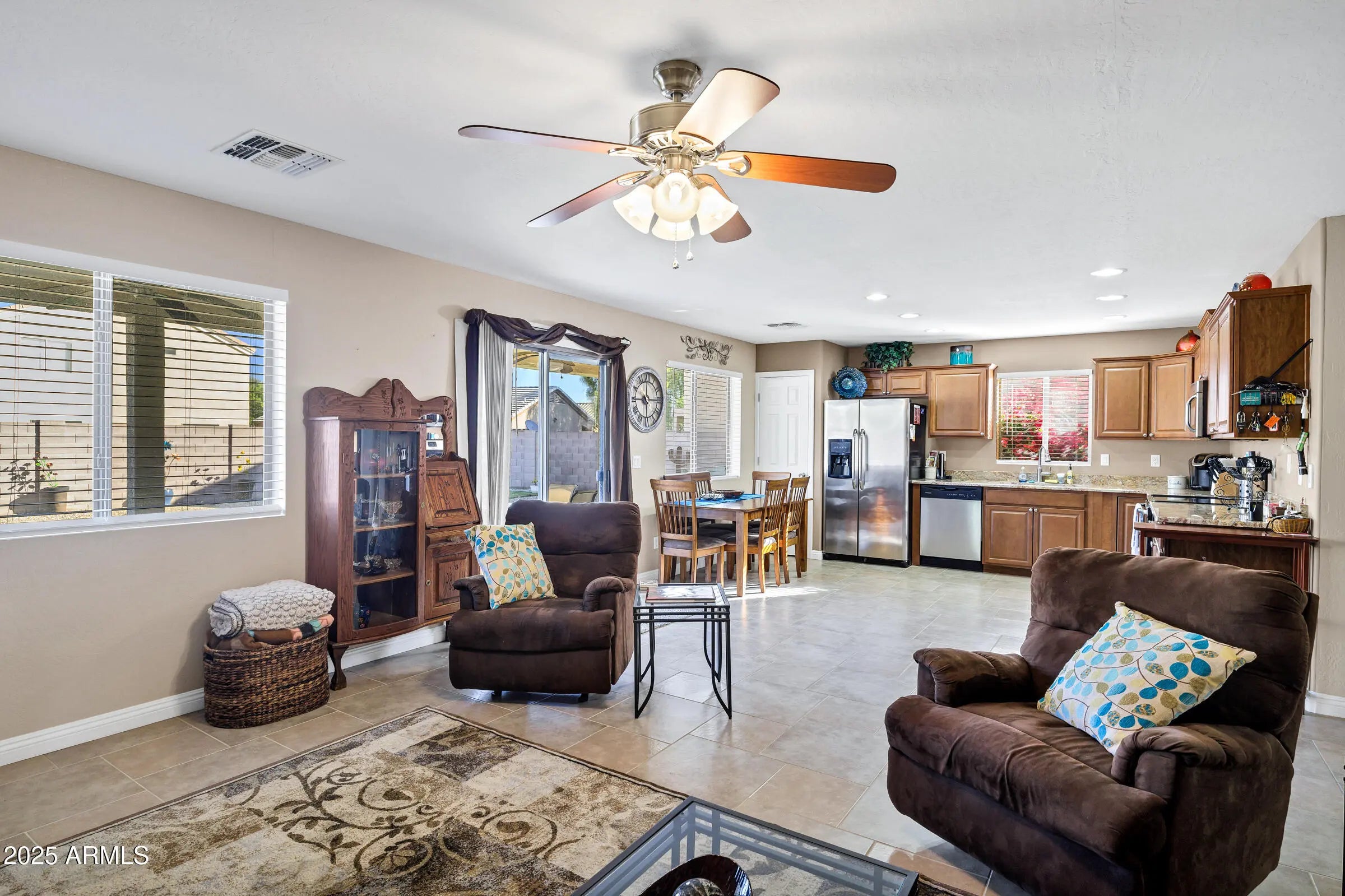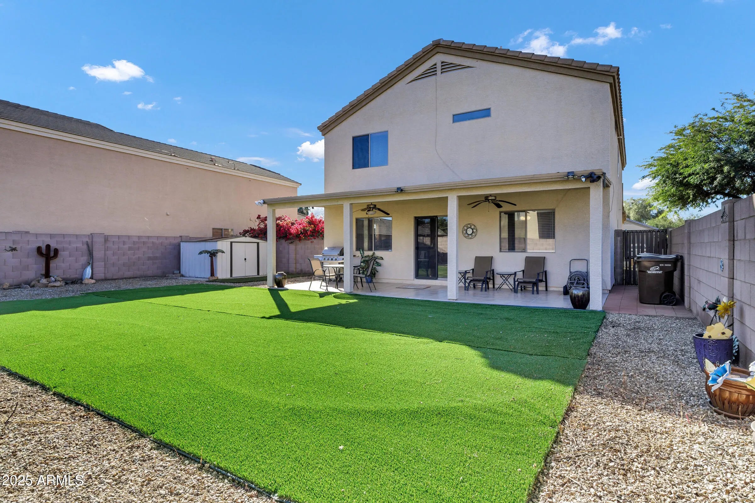 Fully furnished home. Seller to provide exclusions list at contract acceptance. Inside, you'll find an incredibly well-kept interior with beautiful carpet throughout and plenty of natural light. Step outside to a covered, tiled patio complete with fans and lighting, perfect for relaxing or entertaining, overlooking a beautifully landscaped backyard in the desirable community of San Tan Heights. Enjoy a new and improved community center with a gorgeous pool, weight room, banquet room, and more!