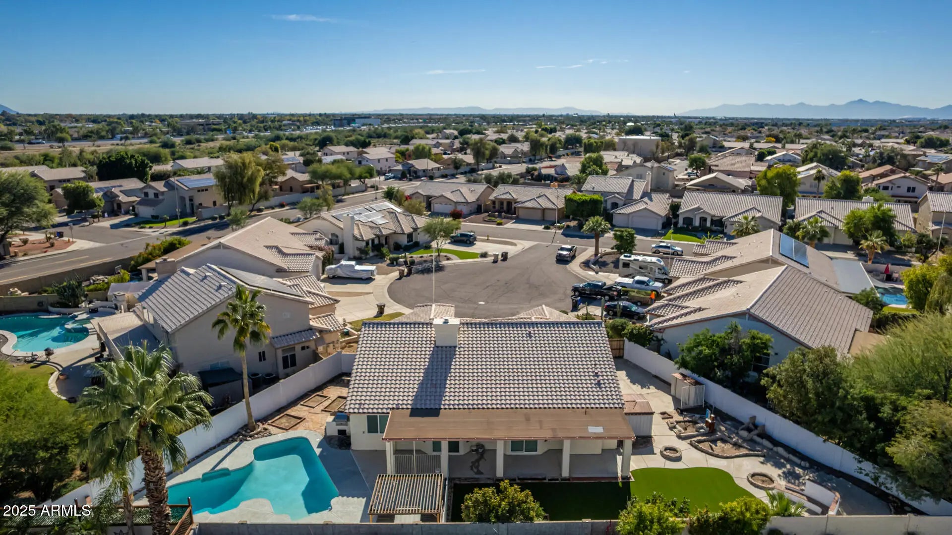 Be amazed by this beautifully reimagined 3-bedroom, 2-bath + den home, perfectly positioned on a spacious 11,141 sq ft lot in the center of a peaceful cul-de-sac' with NO HOA! Offering 2,297 sq ft of thoughtfully designed living space, this property lives like brand-new construction. From the moment you arrive, the 3-car garage, RV gate, and inviting curb appeal set the tone for the transformation inside. Between 2024 and 2025, the entire interior was rebuilt from the studs, featuring new electrical, plumbing, drywall, HVAC system, insulation, lighting, windows, cabinetry, countertops, flooring, paint, kitchen, appliances, bathrooms, and ceilings. Nearly everything inside this home is new, providing modern comfort and peace of mind. Step inside to a versatile den/office and spacious formal living and dining roomsperfect for work, entertaining, or quiet gatherings. The stunning, fully updated kitchen offers abundant cabinetry, a center island, breakfast bar, and a seamless flow into the great room. Enjoy cozy evenings in front of the new electric fireplace or casual dining in the bright eat-in kitchen. New water softener 8/2025, new salt cell for pool 2025, turf back yard new 2025. With its expansive lot, warm layout, and top-to-bottom renovation, this exceptional home offers space, style, and the turnkey convenience today's buyers love.