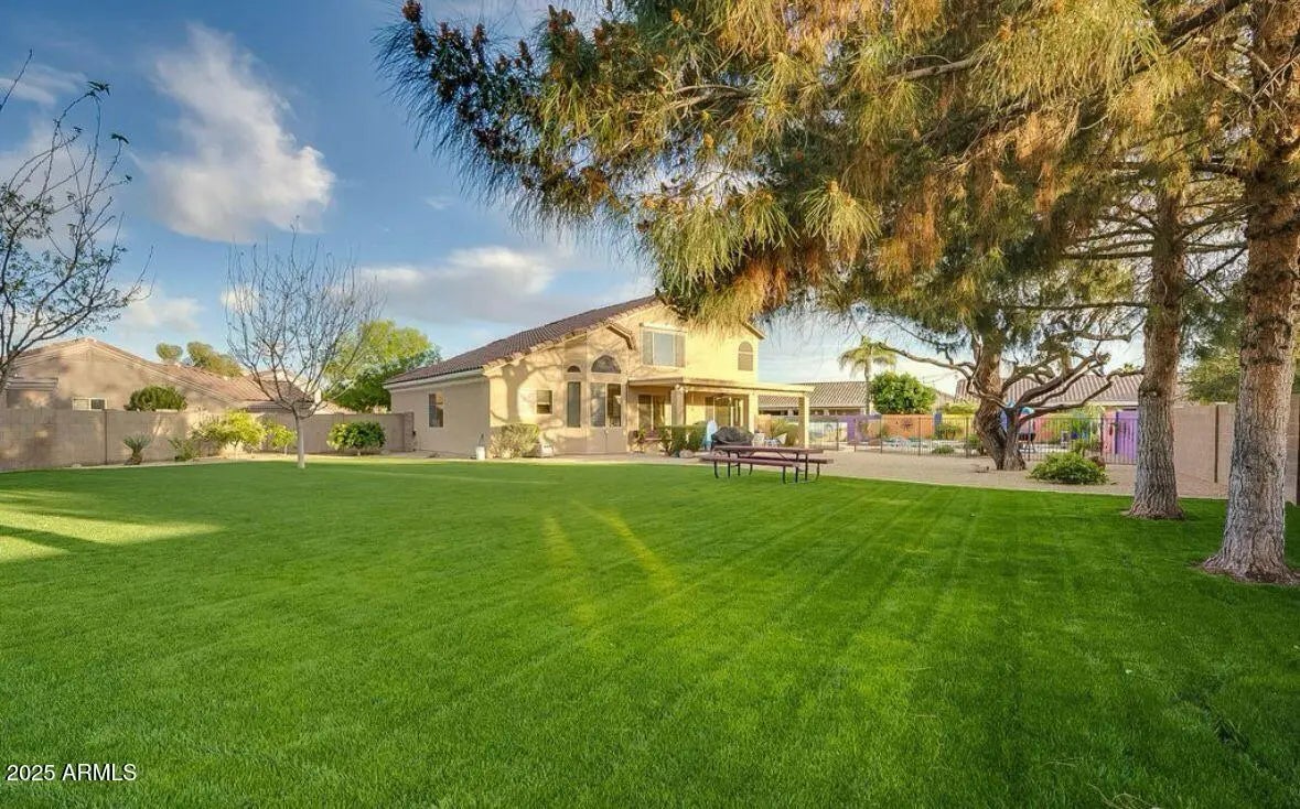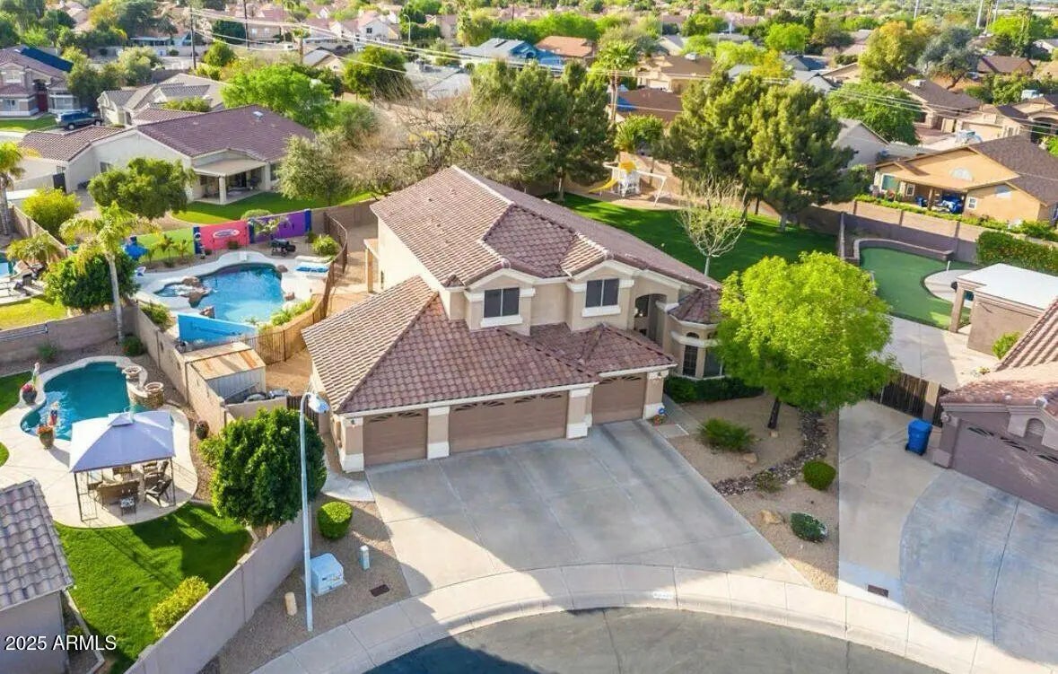 No Application Fees! Exceptional opportunity for a spacious 4 bedroom, 3 bathroom Gilbert home situated on a large cul-de-sac lot, with landscaping and pool service included in the rent. This well-maintained home offers outstanding living space with vaulted ceilings, two-tone neutral paint, tile flooring throughout with no carpeting, upgraded fixtures, and window blinds throughout. The floor plan includes a large family room, separate formal living room, and formal dining area, providing excellent flexibility for entertaining and everyday living. The updated kitchen features granite countertops, tile backsplash, farmhouse sink, stainless steel appliances, backyard views, and a separate dining area. The spacious primary suite includes a walk-in closet and an oversized private bathroom with double sink vanity, garden tub, and separate step-in shower. The expansive backyard is a standout feature with a fenced pool and spa, large grass area, and covered patio, perfect for enjoying Arizona living. A rare four car garage provides exceptional parking, storage, and workspace. Located in a highly desirable Gilbert neighborhood near Ray and Cooper Roads, this home offers convenient access to shopping, dining, and entertainment throughout Gilbert and Chandler. Nearby amenities include Freestone Park, Downtown Gilbert, San Tan Village, and multiple recreation options. Easy access to Loop 202 provides smooth commuting throughout the East Valley while still enjoying a quiet residential setting. All Denali Real Estate residents are automatically enrolled in the Resident Benefits Package (RBP) for $55.00/month which includes Renter's Liability Insurance, Credit Building to help boost the resident's credit scores with timely rent payments, up to $1M Identity Theft Protection, HVAC air filter delivery (for applicable properties), our best-in-class resident rewards program, and much more!