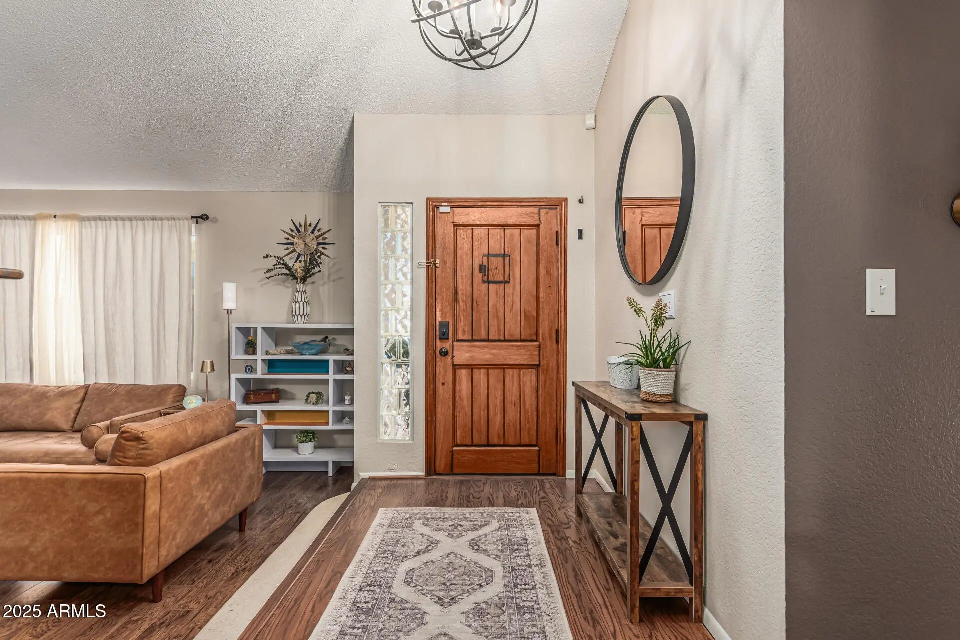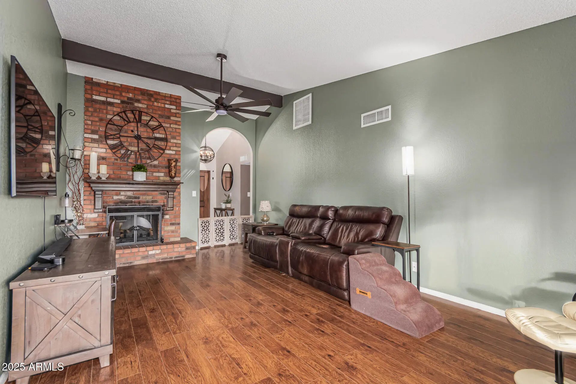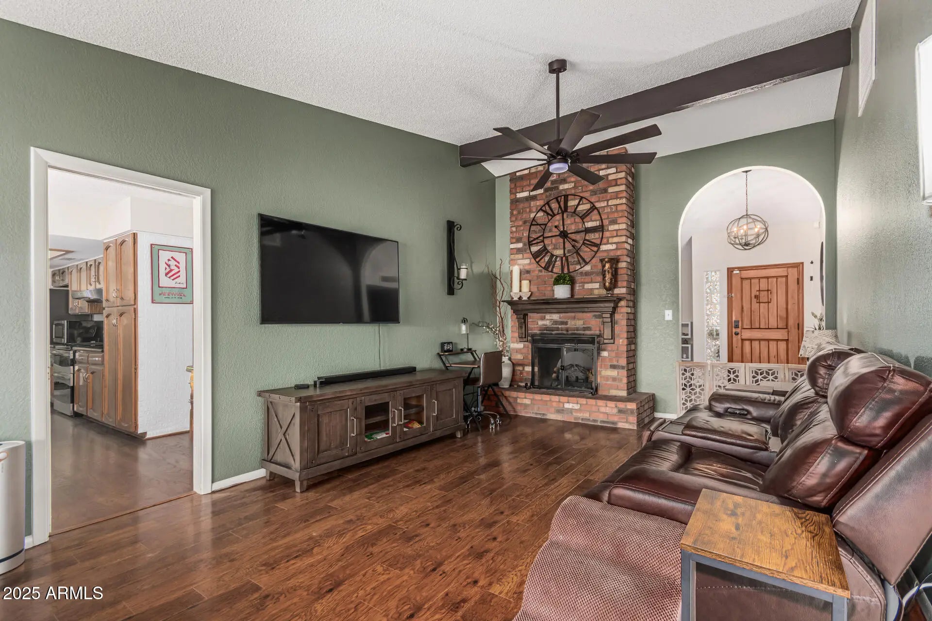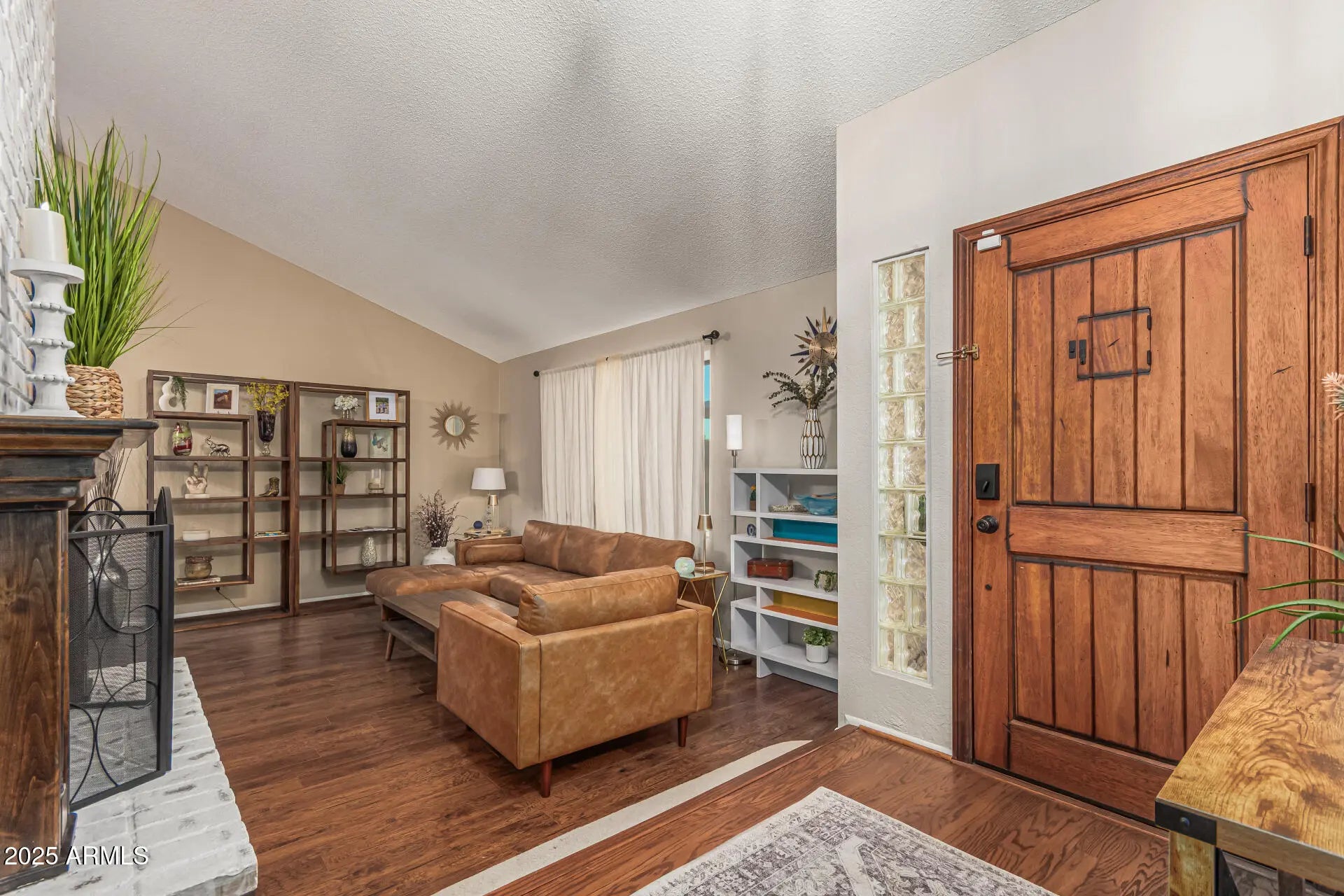 Palm Springs meets North Scottsdale in this Mid-Century Modern retreat. Single-level living with a sunken living room anchored by a double-sided fireplace featuring limewashed brick on one side & classic exposed brick on the other. Wall-to-wall hardwood floors, natural lighting, & fresh paint in every room. Major '24 upgrades include all-new windows, designer lighting, updated electrical & plumbing, new water heater, replaced refrigerator & washing machine, & a fully serviced HVAC system w/ added insulation for enhanced cooling efficiency. Resort-style backyard with artificial turf, new pool deck, PebbleTec finish, water feature jets, updated tile, LED pool lighting, & a covered patio. New water softener. Both bathrooms have been fully renovated. Located next to an elementary school.