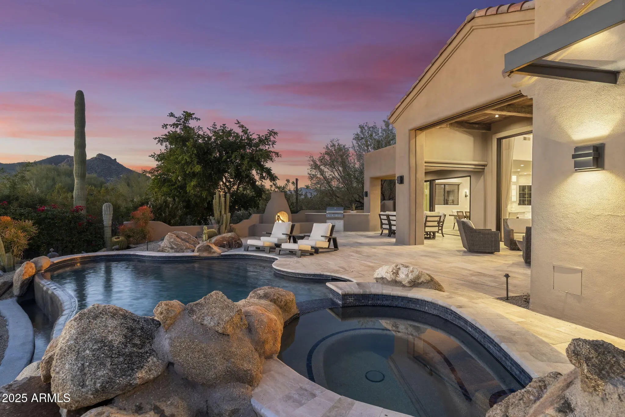 Extraordinary offering within world-renowned guard-gated Boulders Resort on exceptional lot just moments from the Club. Sunlight, water and sweeping mountain horizons define this completely reimagined 5BR/5BA zero-step desert estate with guest casita positioned where fairways, greenery, and reflective water converge. Views span Winfield and Black Mountains, distant Camelback and the Continentals beneath vast skies and memorable sunsets. The residence pairs refined wood and stone, reclaimed beam ceilings, handcrafted cabinetry and doors, spa-inspired baths with soaking tub and walls of glass for seamless indoor-outdoor living. An infinity-edge pool and spa, sculptural boulders, fireplaces, and a gated courtyard with private casita create a year-round resort retreat ideal for Arizona living