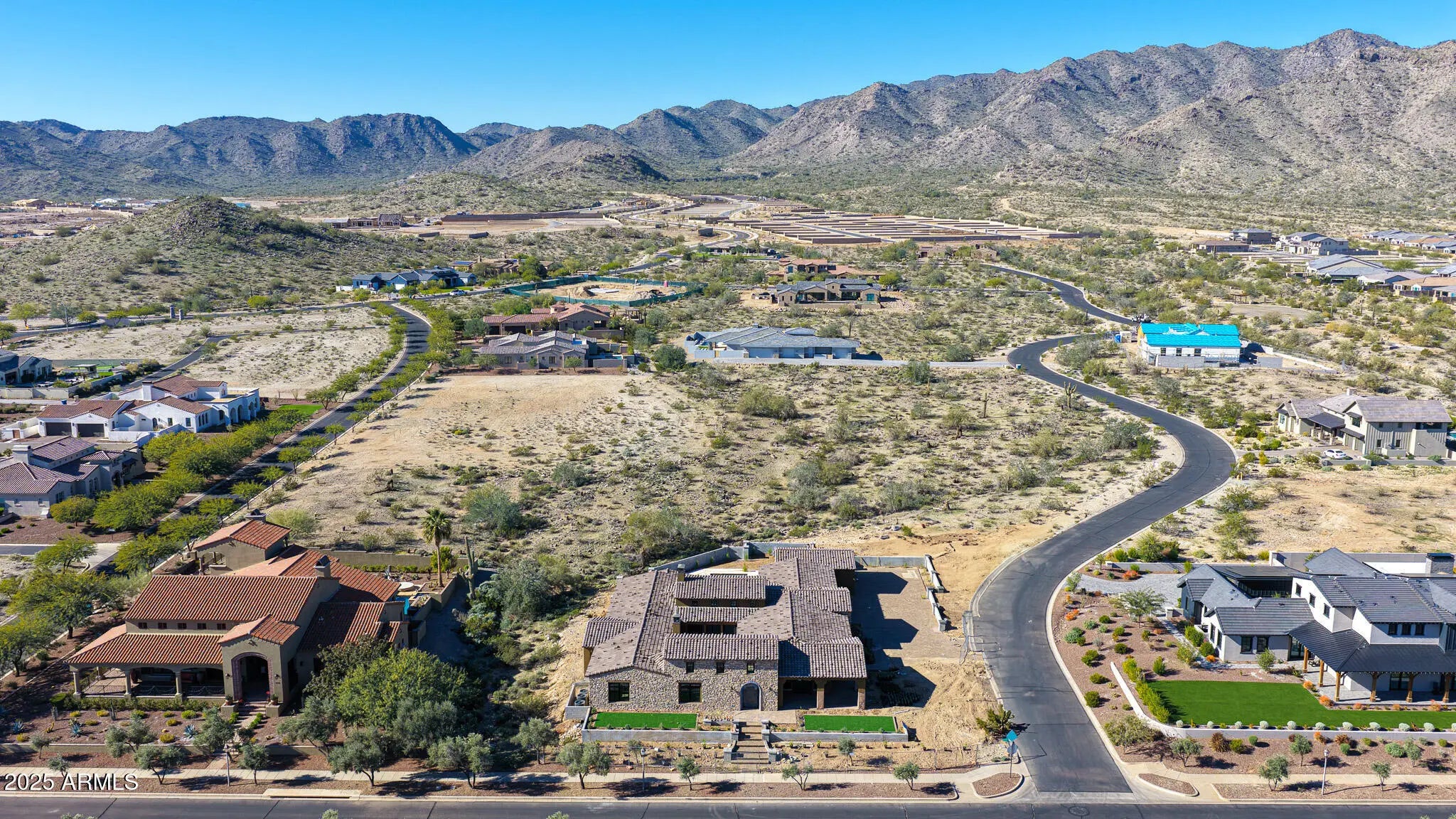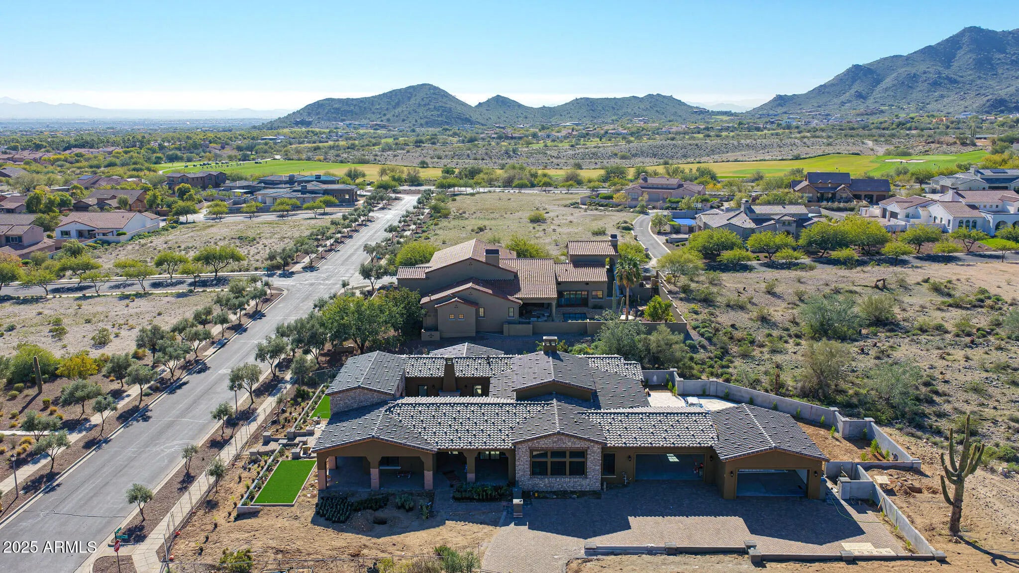 Located within the coveted custom enclave of Regent Hills in Verrado, this stunning custom estate is situated on a sprawling ¾+ acre homesite (0.82 acres) and exemplifies exceptional craftsmanship thoughtful design. Inspired by Rural Mediterranean architecture, this single-level residence offers 4 bedrooms and 4.5 baths, seamlessly blending luxury, comfort, and sophistication. At the heart of the home is a beautifully designed interior courtyard, finished with travertine pavers and featuring one of two fireplaces. The residence wraps gracefully around this courtyard, creating a seamless connection between indoor and outdoor living spaces; ideal for both everyday enjoyment and entertaining. European white oak flooring flows throughout the home, including the chef's kitchen, which is appointed with custom white oak cabinetry, striking quartz countertops, and elevated professional-grade appliances; truly a culinary showpiece. Additional interior highlights include a private casita featuring a bedroom, full bath, walk-in closet, and its own living area, all with direct access to the courtyard. The oversized four-car garage provides ample space for vehicles, recreational toys, and a golf cart. Outdoors, the backyard showcases breathtaking mountain views, a sparkling swimming pool, built-in BBQ, and elegant natural stone pavers; perfect for enjoying Arizona's outdoor lifestyle. No expense has been spared in the construction of this exceptional residence. Scheduled for completion in the first quarter of 2026, this one-of-a-kind custom home presents a rare opportunity. Inquire today to arrange a private sneak peek while the builder puts the final finishing touches on this remarkable Verrado estate. See documents tab for additional description of the features and appointments.