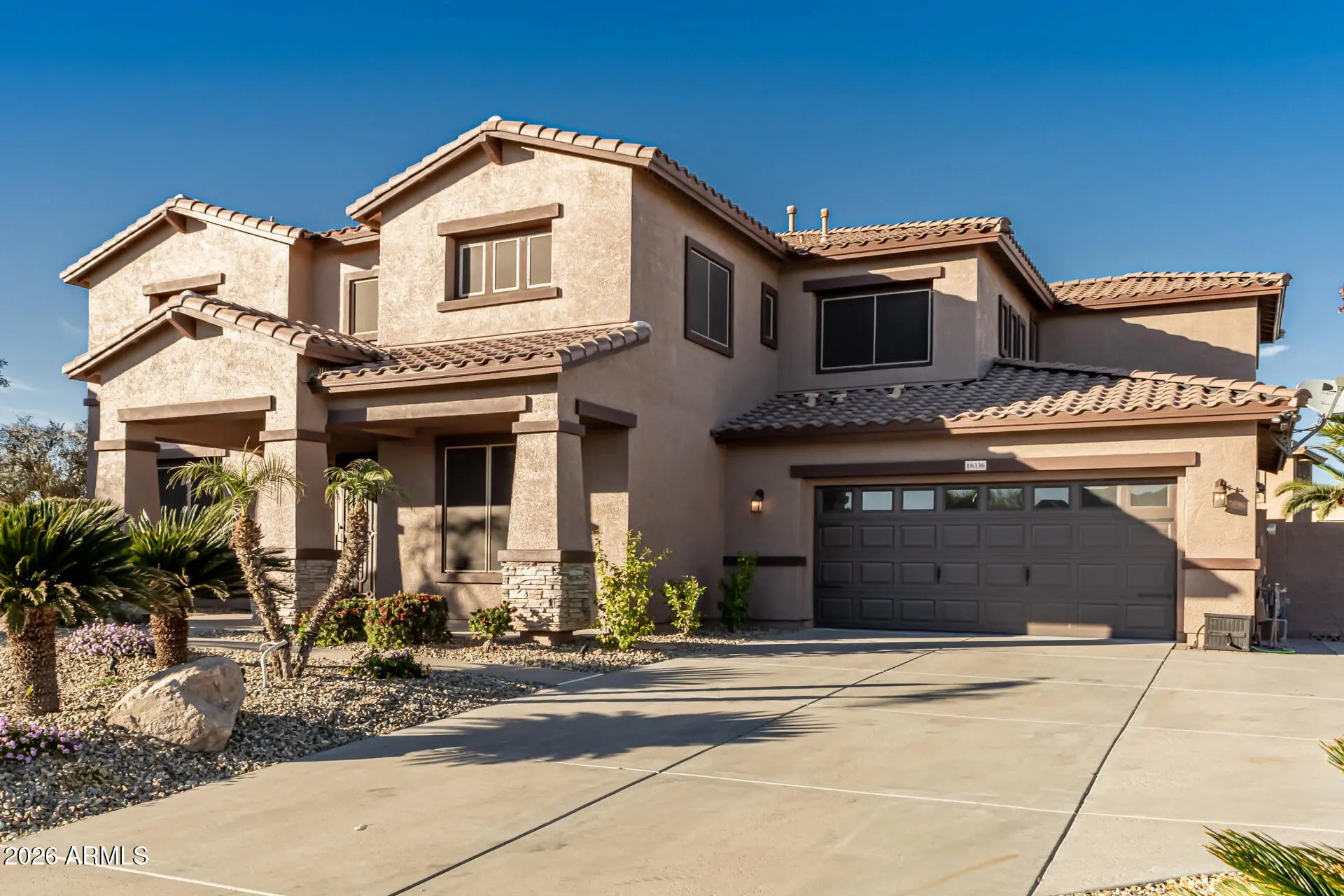 Exceptional luxury living in the highly desirable Sierra Montana community, where refined comfort meets premier Arizona lifestyle. The current owners have invested over $100,000 in recent upgrades, resulting in a truly elevated home complete with designer finishes and thoughtful touches throughout. Enjoy an open, light-filled floor plan with a chef-inspired kitchen and generous living spaces ideal for everyday living and entertaining. Set on over a third of an acre, the private backyard is an entertainer's dream with a sparkling pool, relaxing hot tub, and lush landscaping—perfect for Arizona's year-round outdoor living. Retreat to the serene primary suite and embrace the exceptional quality found throughout this impressive residence. Residents of Sierra Montana enjoy proximity to top local amenities, including beautiful parks like Surprise Community Park and Asante Community Park, ideal for outdoor fun and gatherings, as well as recreational favorites like the Surprise Aquatic Center. For arts and culture, explore the West Valley Arts Council | Arts HQ Gallery, or enjoy bowling and entertainment at Uptown Alley. Outdoor enthusiasts will appreciate easy access to desert hiking and nature at White Tank Mountain Regional Park and nearby Lake Pleasant Regional Park. Just minutes from everyday conveniences, dining, shopping, and community events, this exceptional Sierra Montana residence offers luxury, lifestyle, and location in one of Surprise's most sought-after neighborhoods. 18336 W Banff LN Upgrades: New Lighting Throughout New Luxury Vinyl Flooring New Luxury Baseboard throughout New Custom Kitchen Sink New Custom Cooktop New Garbage Disposal New Dishwasher New Quartz Countertops in All Bathrooms and Laundry New Ceiling Fans Throughout New Fixtures throughout New Cabinet/Drawer Hardware Throughout New Interior Paint Throughout New Side Mount Garage Door Opener New Epoxy Flooring Throughout Garage New Sink in Garage New Whole Home Water System (owned) New Hot Water Heater New Backyard landscape New Drip Irrigation New Backyard Programmable Lighting New Window Screens Throughout New Backyard Access Gates