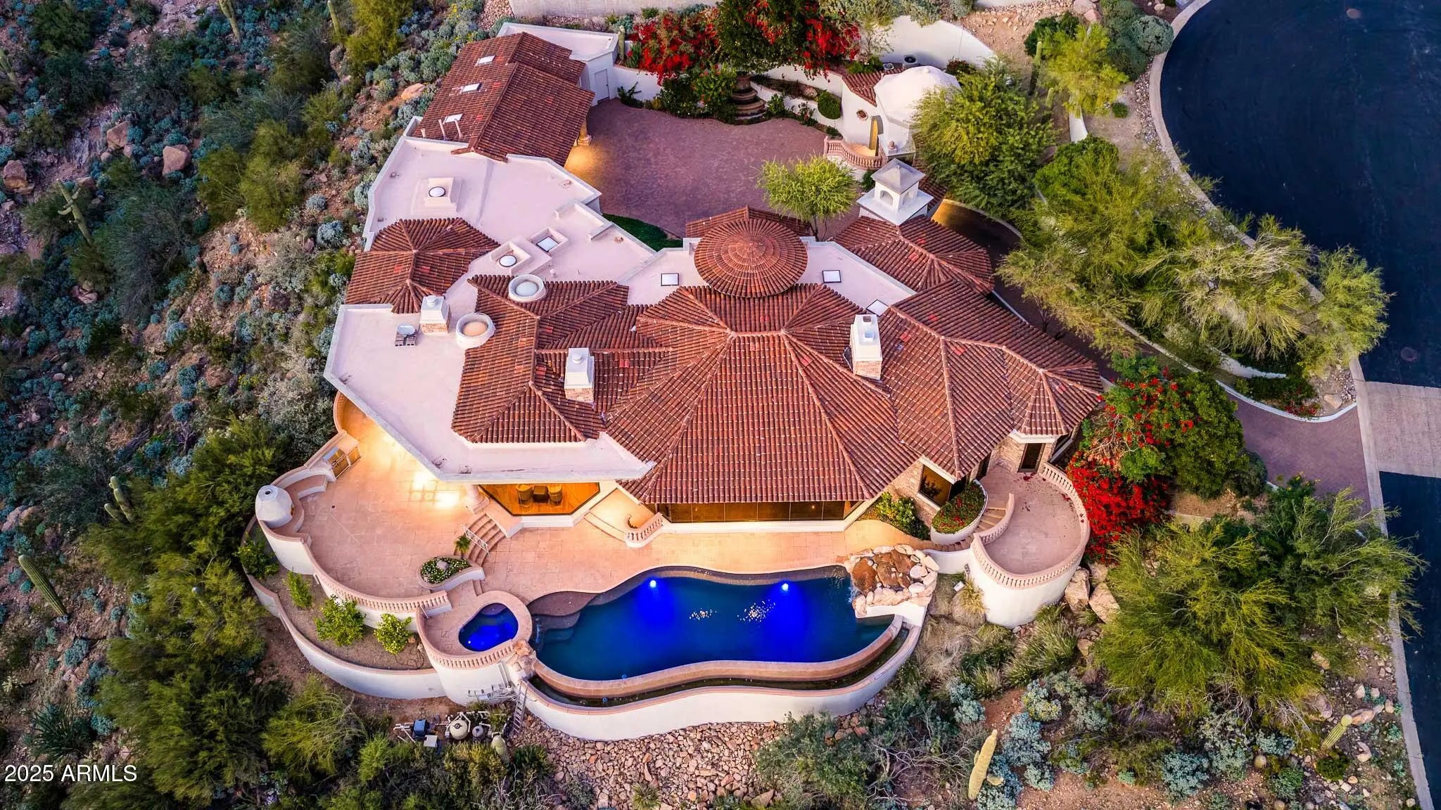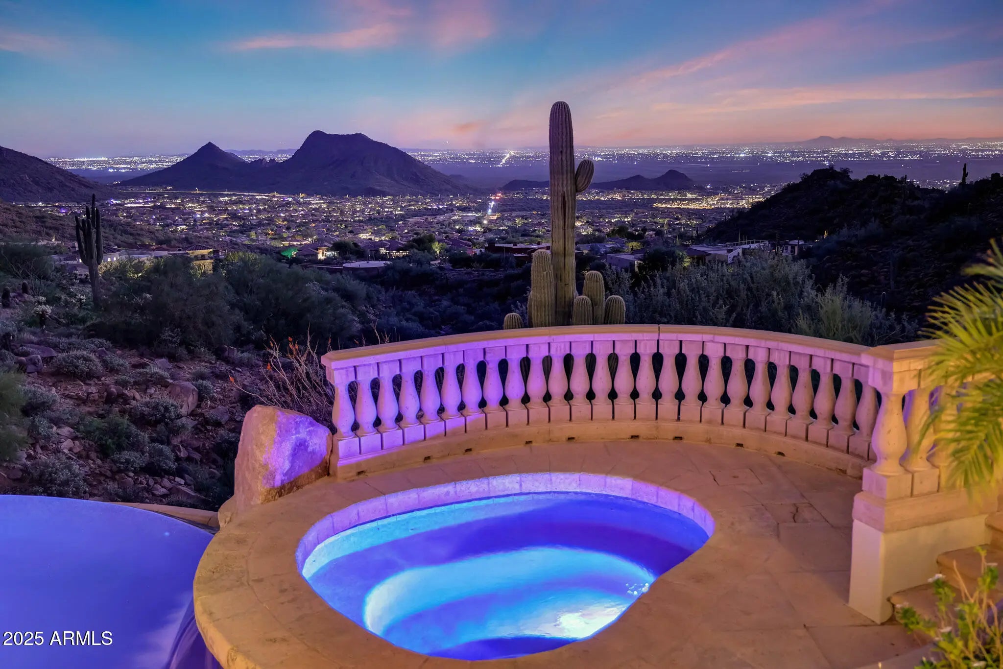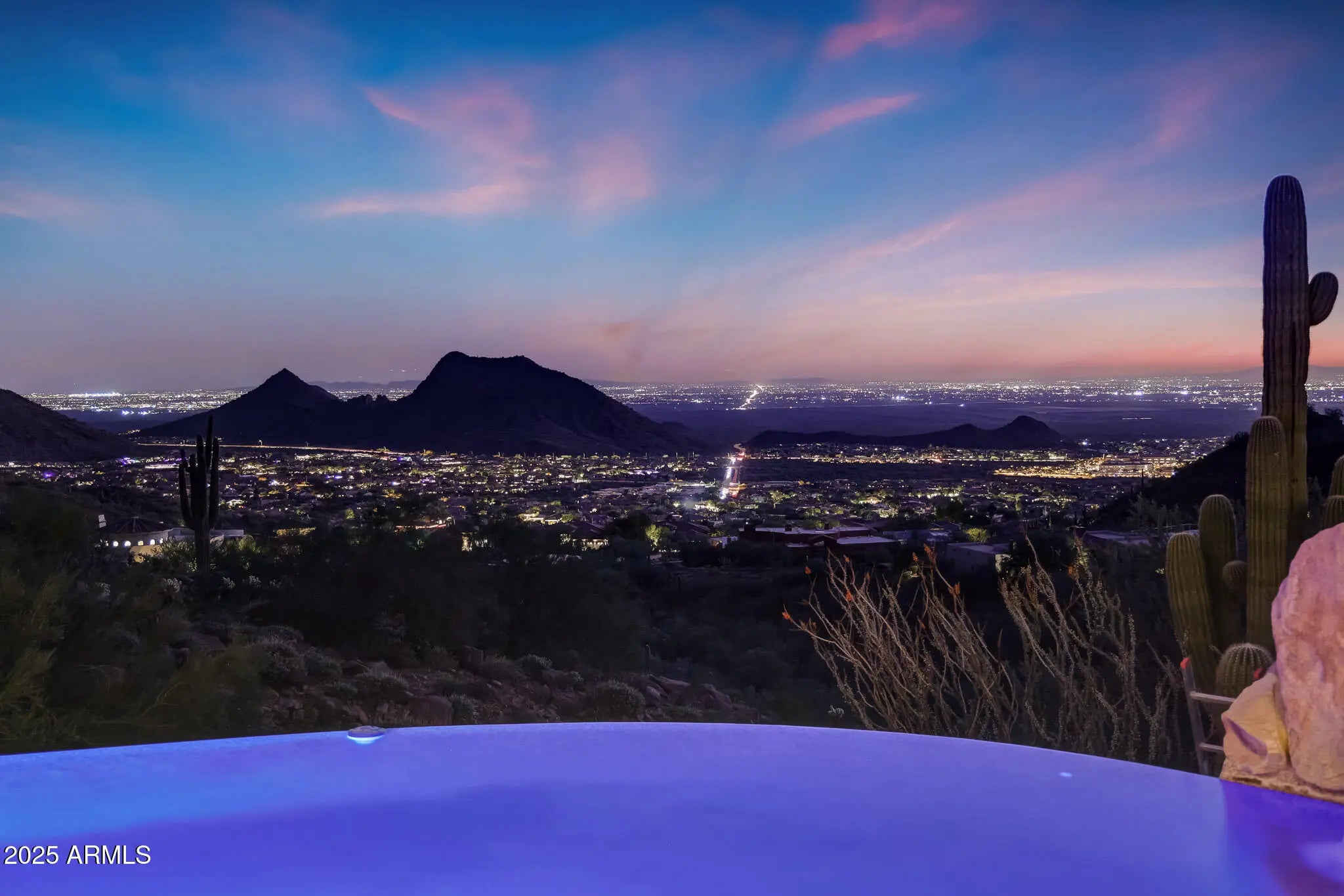 Experience unbeatable MOUNTAIN, CITY LIGHT, and SUNSET VIEWS perched high above the valley in the prestigious, double-gated Silverwing enclave of Scottsdale Mountain. This hillside estate offers 5BD w/ CASITA & 4.5BA with likely the BEST VIEW in Scottsdale. PLUS, the home sits on one of the community's highest lots, backing to protected NAOS for PERMANENT PRIVACY, making it special and unlike anything you have seen before. Every aspect of the home reflects thoughtful planning and uncompromising quality. Expansive walls of glass frame the scenery from nearly every room, while multiple patios seamlessly connect indoor and outdoor living. Each bedroom enjoys direct access to outdoor spaces, ensuring the dramatic views are always front and center. The primary suite features a Canterra stone fireplace, comfortable sitting area, private balcony, and a spa-like bath with dual vanities, generous custom closet storage, and a soaking tub positioned to overlook the canyon below. The resort-style backyard is highlighted by a heated negative-edge pool with grotto waterfall and spa, complemented by a built-in BBQ and fireplace ideal for entertaining or unwinding under Arizona's star-filled skies. The protected desert landscape below guarantees lasting seclusion, with no neighboring homes in sight. The outdoor areas also feature inviting courtyards, shaded patios, and a backyard designed to maximize comfort while capturing the surrounding vistas. The private casita is ideal for guests or multigenerational living and is thoughtfully appointed with an ensuite bathroom, wet bar, spacious walk-in closet, dedicated washer and dryer hookup, and separate entrance. One oversized secondary bedroom offers flexibility as a media room, office, or bonus space and includes a convenient wet bar. This is a rare opportunity to own a meticulously crafted and cared for estate where privacy, views, and timeless design come together in one unforgettable setting. With recent updates including brand new water heaters, updated pool pumps, exterior paint, AC units, resealed flat roof, and re-pebbled heated spa, it's ready for you to move right in! Don't forget the HOA amenities of pickleball/tennis courts, guard gate, and secondary gate. What more could you need?