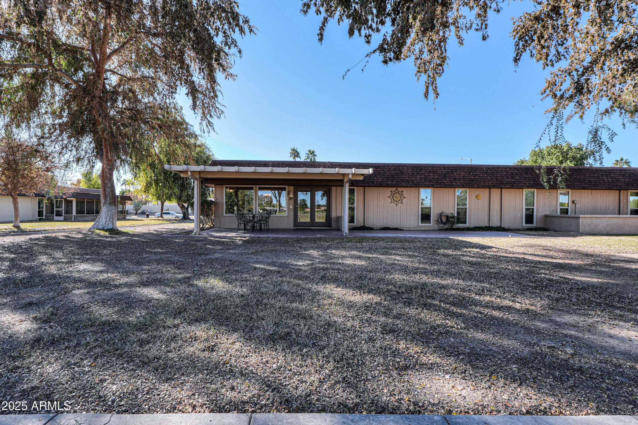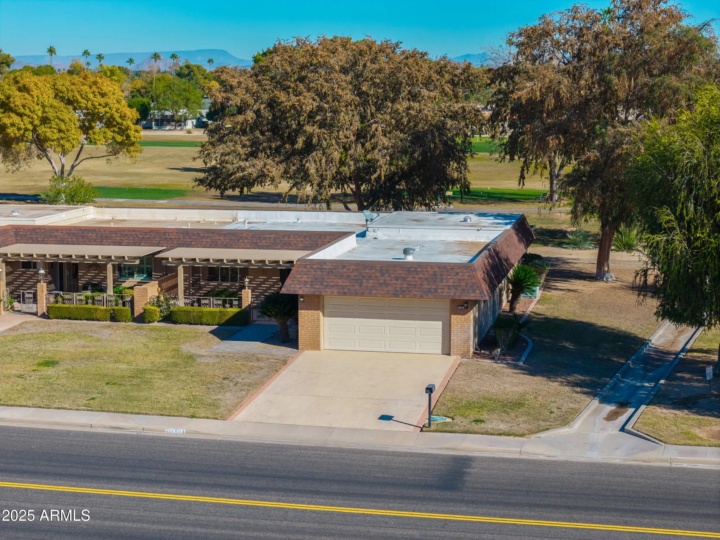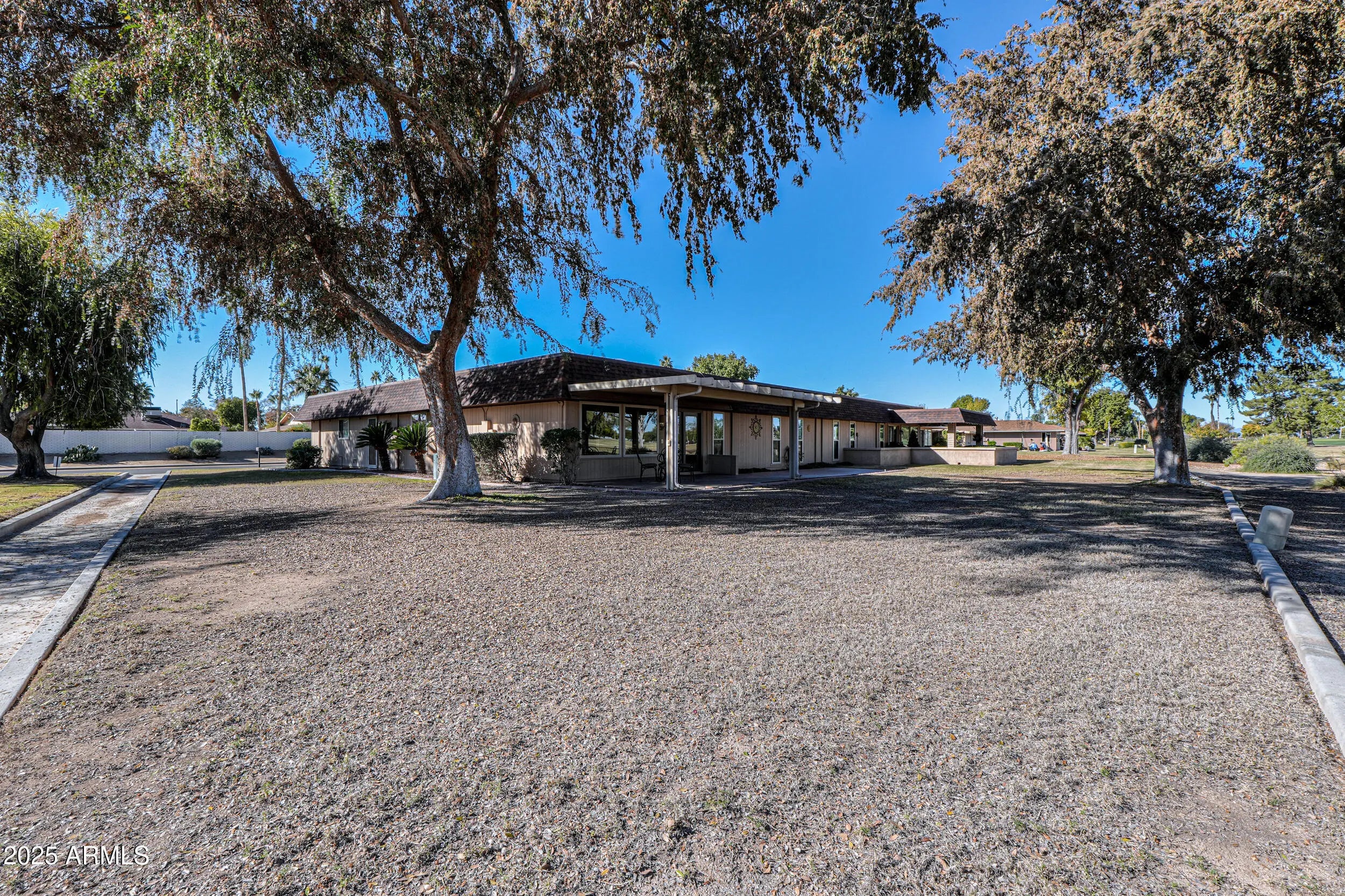 Welcome to this well-maintained, golf course view lot, 2-bedroom, 2-bath Gemini/Twin Home in the heart of Sun City's desirable Willowbrook community. Offering 1,658 sq ft of single-level living, this home features a spacious layout with a separate den/office, tile and vinyl flooring throughout, and a cozy fireplace in the living area. The updated kitchen (2017) includes electric cooktop, built-in microwave, pantry, and ample counter space. Both bathrooms were fully updated in 2020. Major improvements include a new roof in 2019 and HVAC replacement in 2010. Enjoy a private courtyard, covered patio, attached 2-car garage, and access to community amenities including pools, spa, clubhouse, golf, pickleball, and walking paths in this age-restricted community