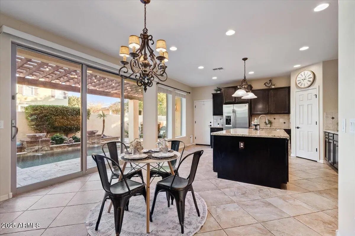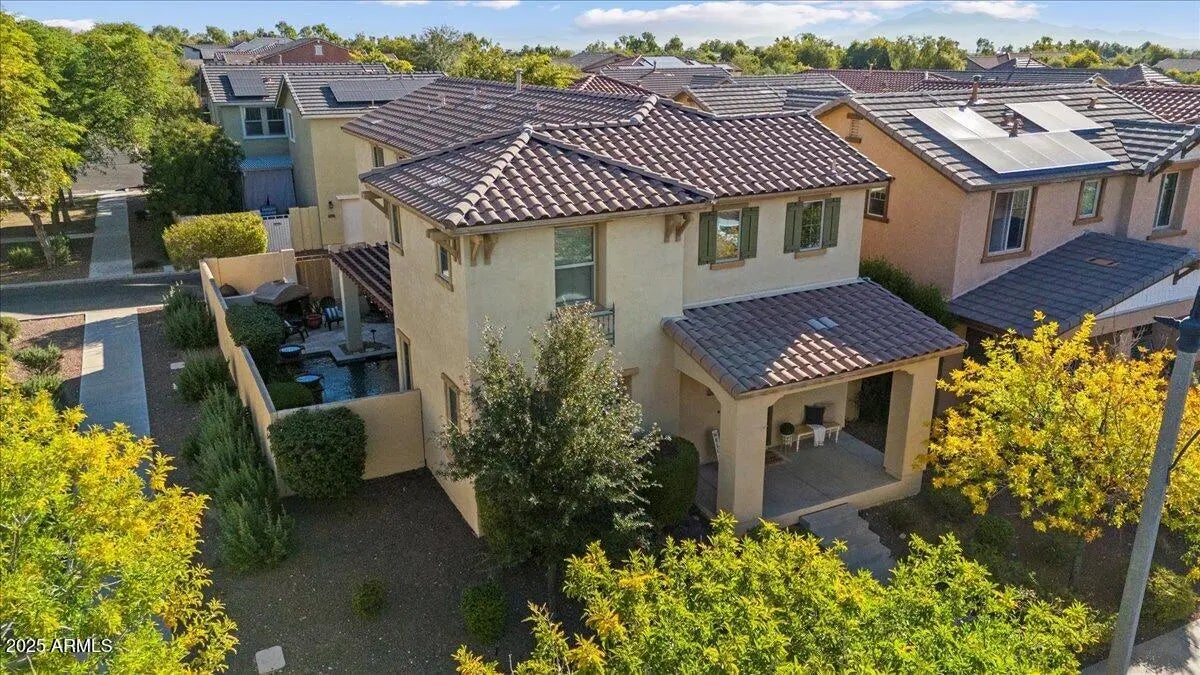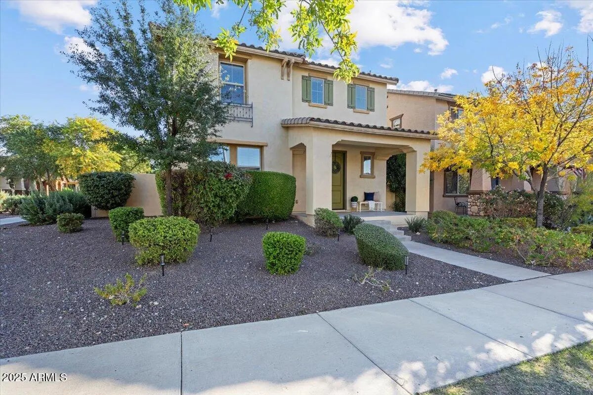 This gorgeous 3 bed, 2.5 bth Heritage District pool home is turnkey and ready for you to embark on Verrado living. This beautifully upgraded home offers resort-style comfort with a private heated pool, an upgraded kitchen designed for both everyday living and entertaining, and a location that truly can't be beat. Enter through your large front porch, into the open concept living, dining & beautiful kitchen, with granite countertops, staggered cabinets, and views to your lush backyard. The oversized slider makes the space open to outdoor living. Head upstairs to an oversized primary ensuite, that easily can double as a private retreat or add an office space to the nook. Double sinks, separate garden tub, and shower, and walk-in closet round out the primary bedroom. Additional 2 guest bedrooms, guest bath, and upstairs laundry, complete the 2nd story. Located near Verrado Heritage Schools, parks, and the upcoming Verrado Marketplace, this home is perfectly situated. Enjoy Verrado's many amenities-hiking trails, golf courses, spas, restaurants, schools, shopping and so much more. Verrado is an award-winning community that emphasizes community and outdoor living, hosting events, farmer's markets, and ways to get involved. Verrado lifestyle awaits.