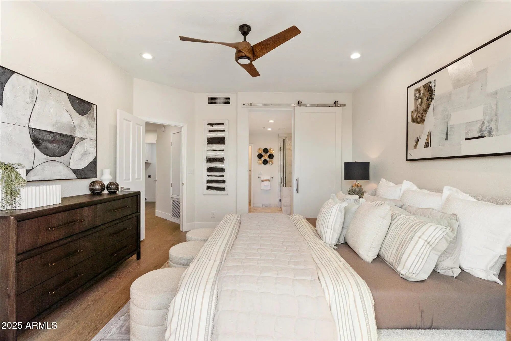 SELLER IS OFFERING CONCESSIONS toward Buyer's closing costs or interest rate buy-down PLUS SELLER will pay one year of Property Tax with accepted contract by 4/30/26! Welcome to this stunning, fully designer remodeled townhome in the exclusive gated community of La Villita, ideally located along the Hayden Greenbelt in the heart of Scottsdale. Offering over 2,500 sq ft, this 4-bedroom, 3-full bath residence features a desirable floor plan with the primary suite and an additional bedroom on the main level. The light-filled interior showcases vaulted ceilings, engineered wood plank flooring, and an expansive Great Room with an electric fireplace and striking two-story quartz feature wall, seamlessly connecting to the dining area for easy living and entertaining. The updated kitchen is thoughtfully designed with custom soft-close white cabinetry, quartz countertops, designer backsplash, new high-end appliances, island seating, a breakfast nook, and ample storage. The main-level primary suite offers a spa-inspired bath with dual vanities, quartz counters, custom tile shower, soaking tub, white cabinetry and walk-in closet. A secondary bedroom and full bath on the first floor provide flexibility for guests or multi-generational living, while upstairs features two oversized bedrooms and a full bath, including one with a private balcony overlooking the greenbelt. Outdoor living includes a new paver patio, turf accents, and views of Camelback Mountain. Additional upgrades include new motorized window coverings, power exterior sunshades, and a brand new roof. Residents enjoy a heated pool, spa, and walking paths, just minutes from Old Town Scottsdale, shopping, dining, golf, and entertainment--offering a refined, low-maintenance lifestyle in a prime Scottsdale location.