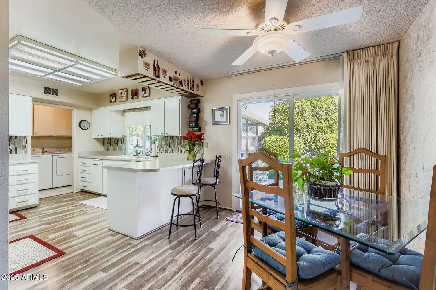 Charming and well-loved duplex. This 2 Bedroom, 2 Bath gemini sits north-south and is bright and happy and has so many upgrades. Sit on the front patio for warm sun or sit on the screened patio in the back for shade and privacy. Upgrades include: dual pane windows (triple pane on front window), new front and back doors 2024, laminate flooring, painted kitchen cabinets and new hardware, replaced appliances, hot water heater 2022, garage opener 2024, HVAC 2018. Rec centers close with pickleball, tennis, golf, gyms, indoor and outdoor pools. Close to Arrowhead Mall and many fine restaurants. Monthly HOA fee includes: yard maintenance, water, sewer, garbage, pest control, exterior painting. No rentals allowed. 2 pets allowed with no weight restriction. You will love this home
