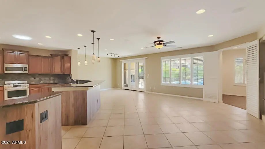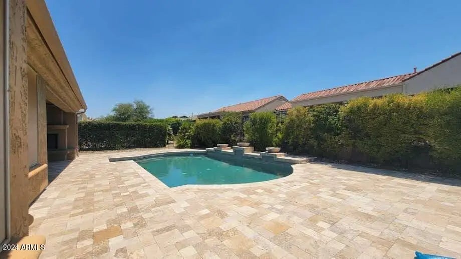 Beautifully upgraded SOLAR home is in the 55+ community of Sun City Festival. Closer to Surprise on Bell Rd than Buckeye. Enjoy AZ outdoor living on an extended backyard patio paved in travertine, in the private pool w/ water feature, or around the built-in gas fireplace. This home is sure to please. Interior upgrades include 18'' tile in all but bedrooms/den, hardwood in Master, Plantation shutters throughout, French door to back patio, upgraded tile in MB & frameless glass Master shower enclosure, Cherry cabinets w/ rubbed bronze hardware, storage cabinets in utility room/garage, extra insulation & ceiling racks in garage, water softener. Kitchen features traditional under cabinet lighting PLUS LED upper/lower cab lighting w/ multiple color choices, pendant lighting, SS appliances, granite w/tile backsplash. Tenant must provide proof of tenant insurance during their tenancy.