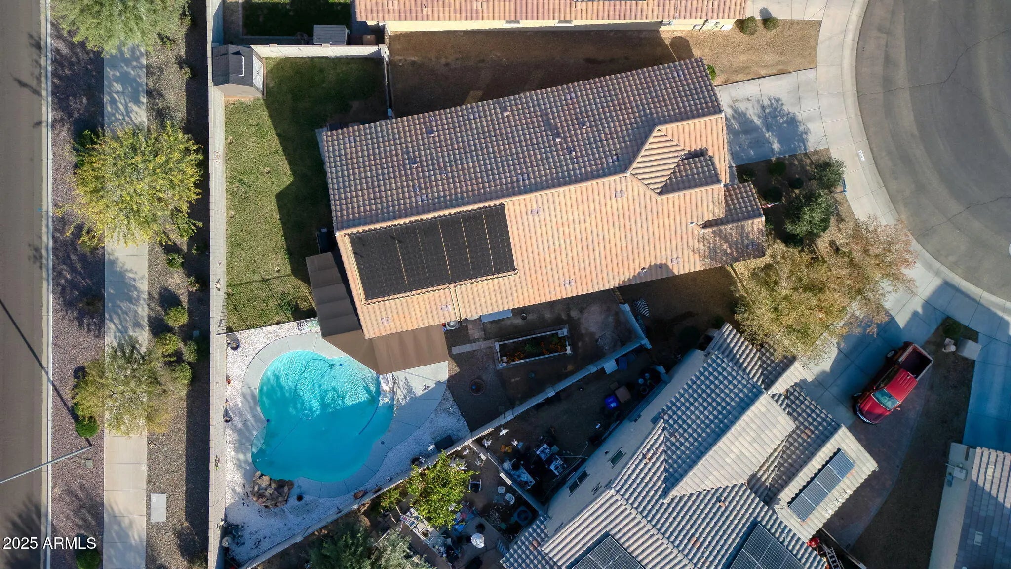Assumable Low Int Loan & Low HOA! :) - Enjoyable Outdoor Living Spaces - Large Lot with RV Gate, Play Pool with RAMP Access and Water Feature, Extended Patio Awnings, and Vegetable Garden. Paid (owned) Thermal Solar to heat the pool. Nice 3+BR Split Plan as Office/Den could be a 4th Br. Come see to enjoy with amenities added. Garage has O'Head 22-Storage Bins Rack Only (Attached to Cieling). Rack Stays, Bins do not. Nice location with Olive Park nearby.