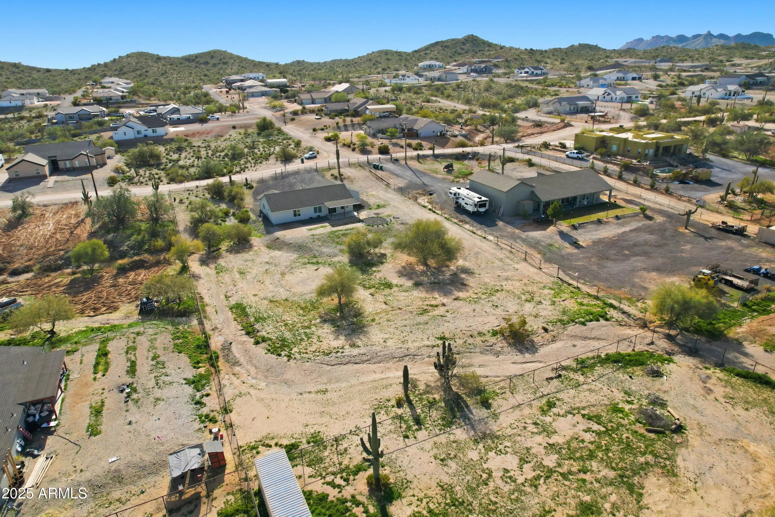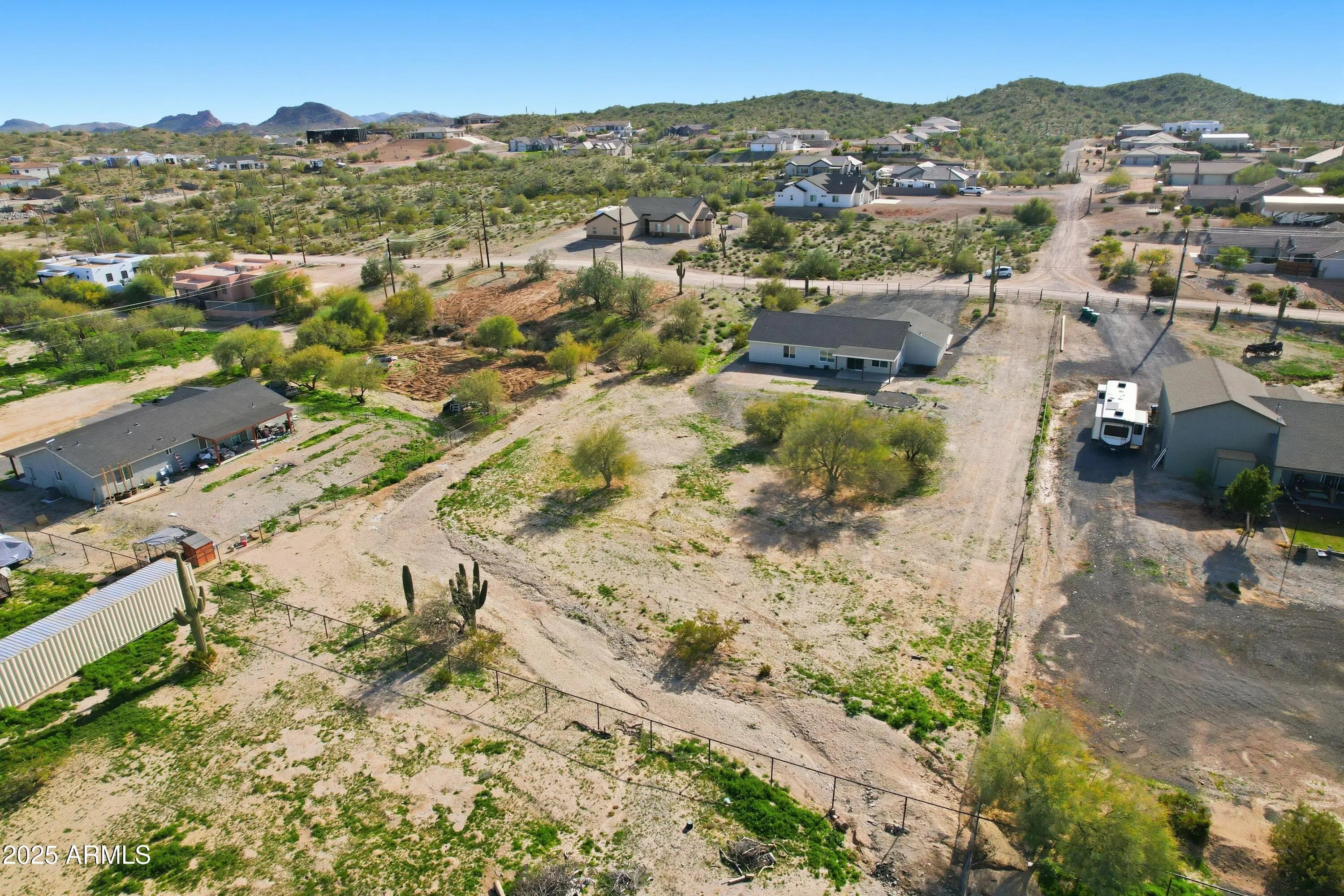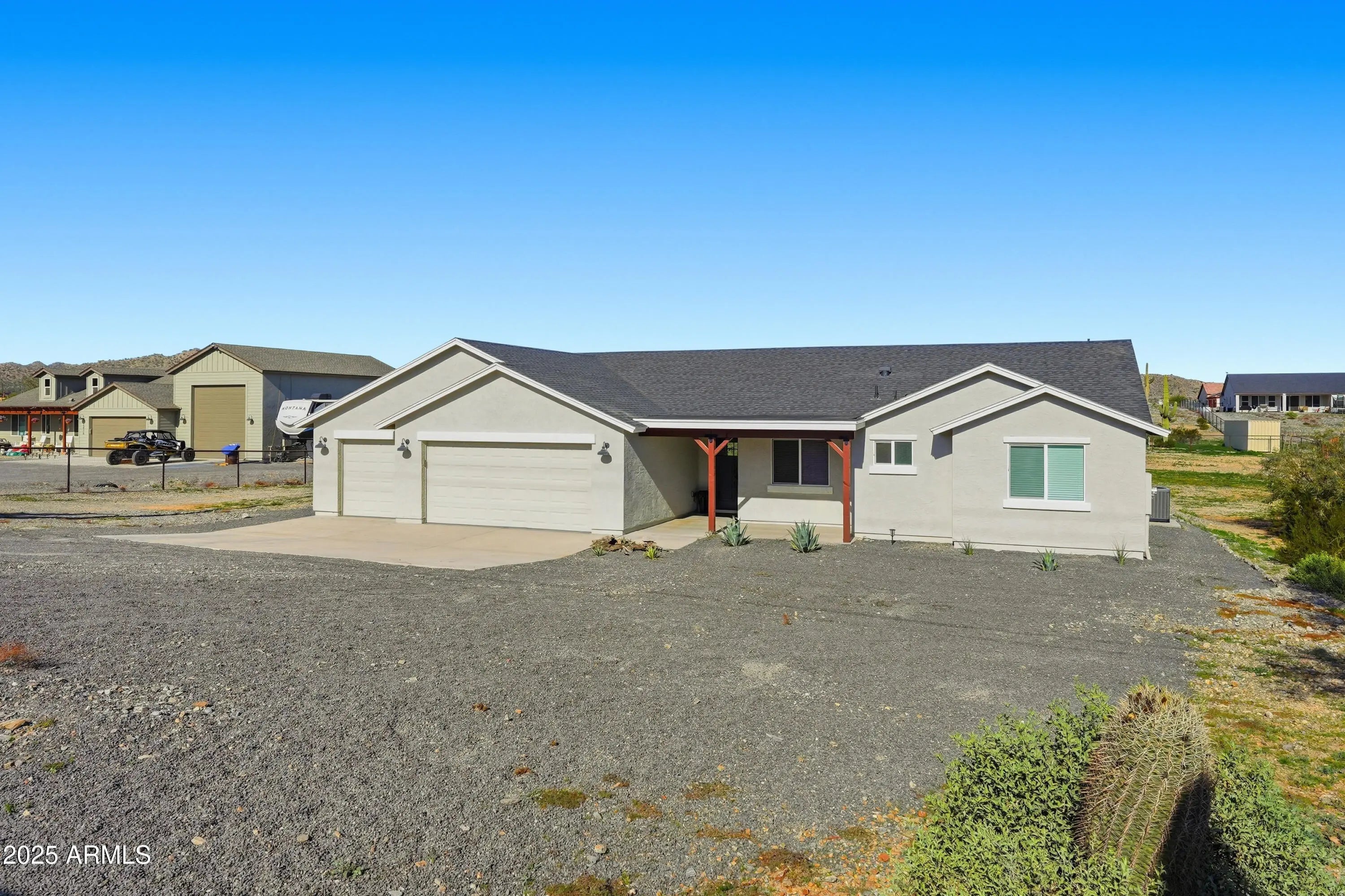 Experience the freedom of true Arizona living and mountain views in this stunning 4 bedroom/2 bath home on a sprawling 1.25-acre lot with NO HOA! Designed for both comfort and style, the open great-room layout features vaulted ceilings and porcelain tile throughout the main living areas. The inviting kitchen shines with quartz countertops, white shaker cabinetry, stainless steel appliances, and a large island perfect for entertaining. You will have room for all of your toys in the expansive 3-car garage. This property and location offers wide open space with endless possibilities for horses, toys, or future expansion. Built with 2x6 construction, spray-foam insulation, and dual-pane windows for energy efficiency. San Tan Regional Park offers horseback riding and mountain biking close by!