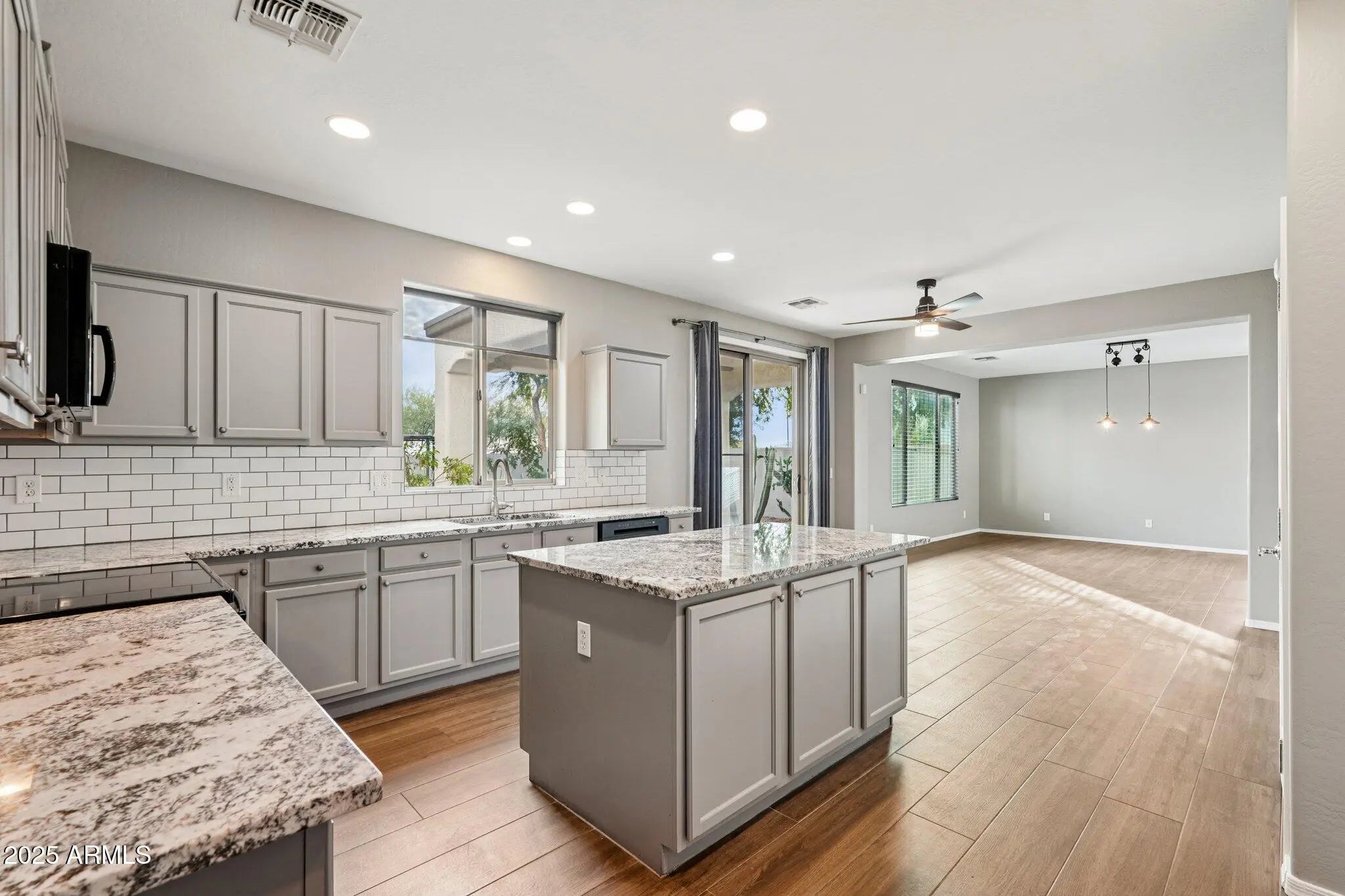 Attention to every detail is evident in this beautifully designed home on a private lot with only one neighboring property. The residence features oversized bedrooms, granite countertops, a spacious kitchen island, fresh interior paint, and upgraded flooring throughout. The three-car garage includes an epoxy-coated floor for a clean, finished look. Enjoy outdoor living in the professionally landscaped backyard with a covered porch and gazebo, as well as a welcoming covered and gated front porch sitting area—perfect for relaxing or entertaining. 5-ton HVAC system updated 2025.