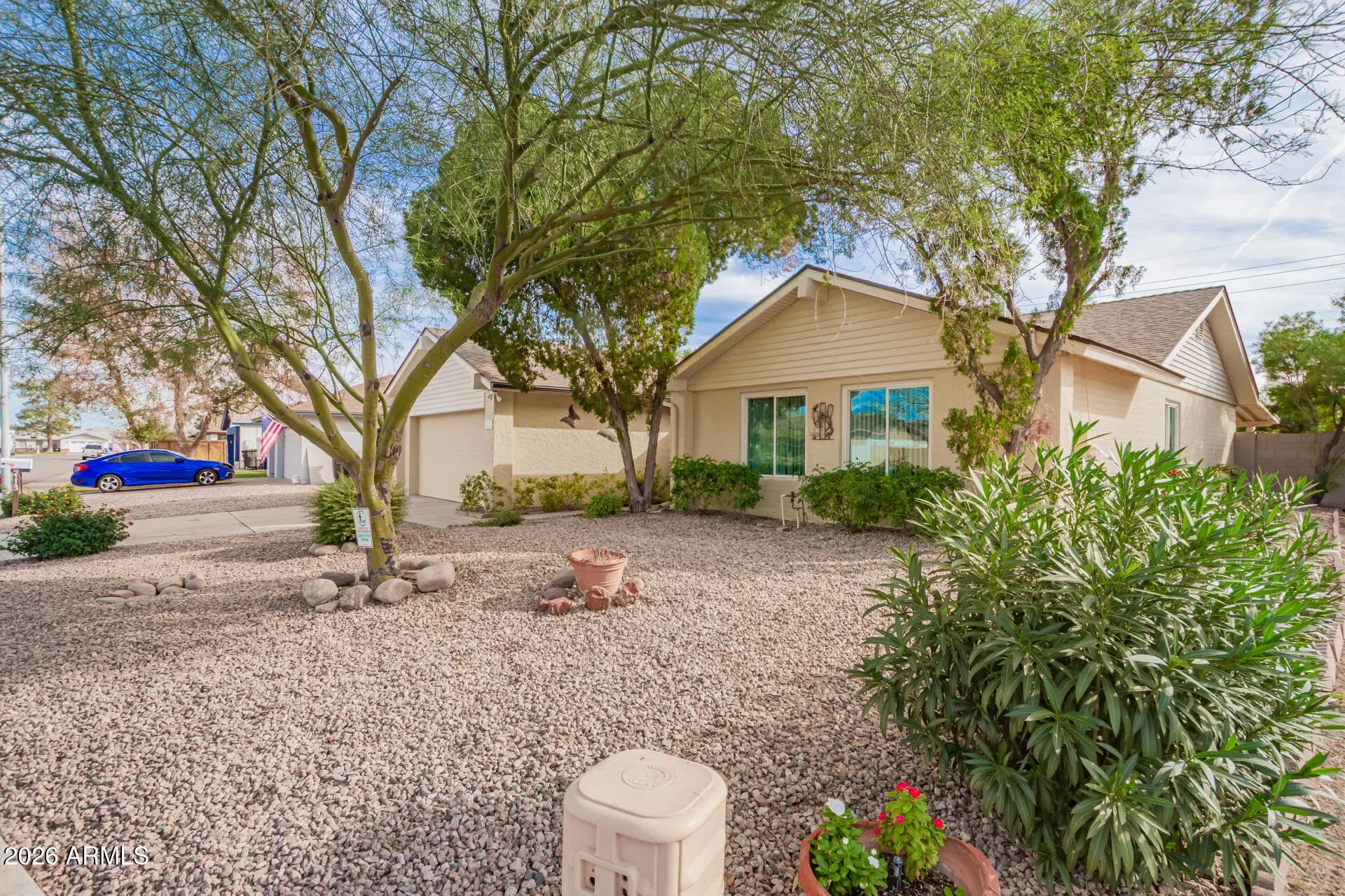 Meticulously cared-for 4-bedroom, 2-bath home sits in an established Chandler neighborhood with no HOA. The home offers a comfortable and functional layout with desirable north-south exposure, supporting energy efficiency & balanced natural light throughout the day. Outdoor living has been thoughtfully designed, featuring a covered patio, pavers & low-maintenance desert landscaping. Mature trees surround the property on the front, back & sides, providing exceptional shade & privacy. The 2-car garage has been upgraded with insulation with pull-down attic stairs leading to an impressive amount of attic storage—ideal for seasonal items or long-term storage. 5 Ring camera's throughout for security, owned water softener and RO system for added convenience. Conveniently located near Downtown Chandler, this home offers easy access to local dining, shopping & entertainment-Chandler Fashion Center, Tumbleweed Park, a variety of parks, schools & community amenities. Commuters will appreciate quick access to major freeways, making travel throughout the Valley simple & efficient.
