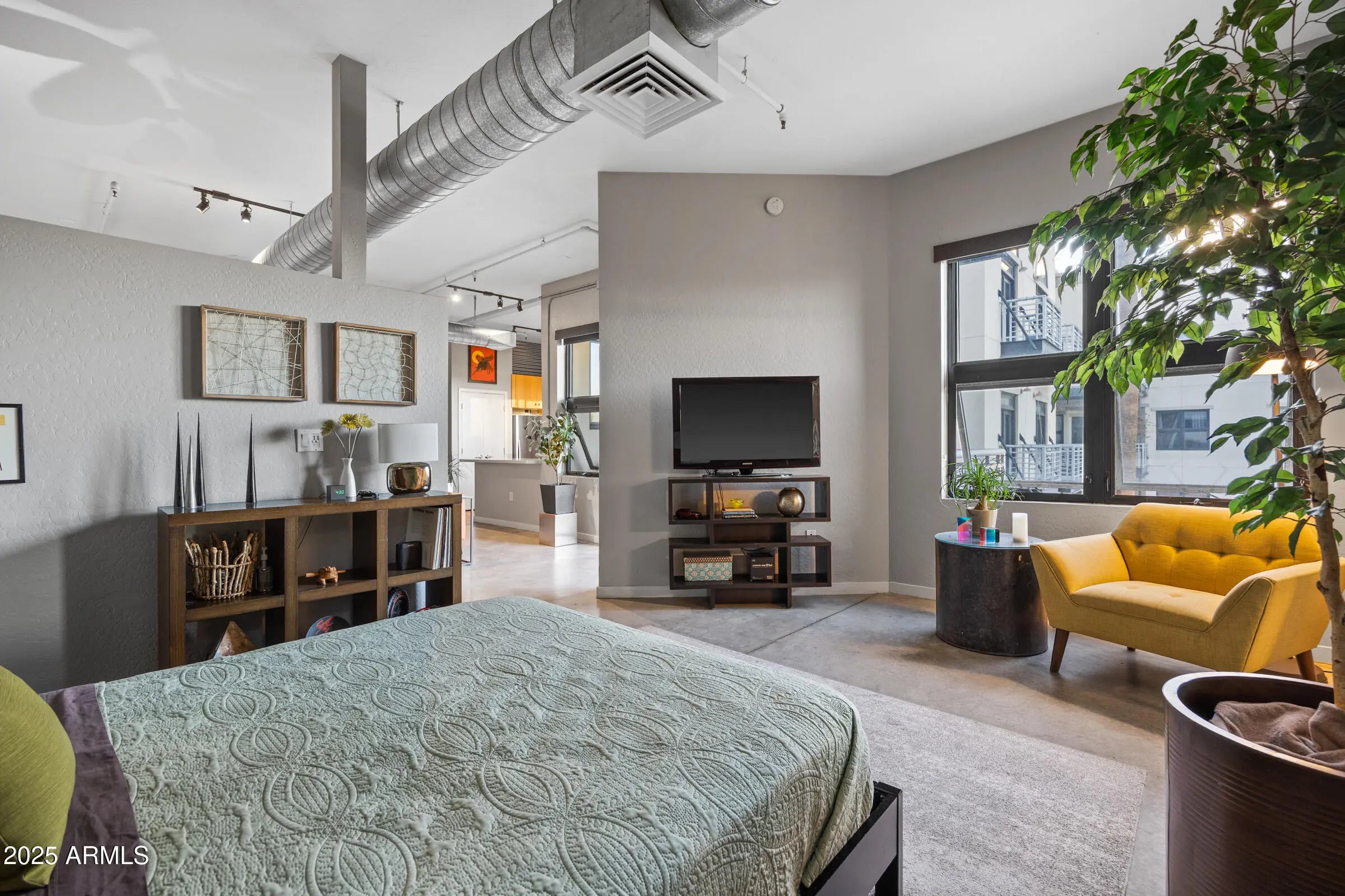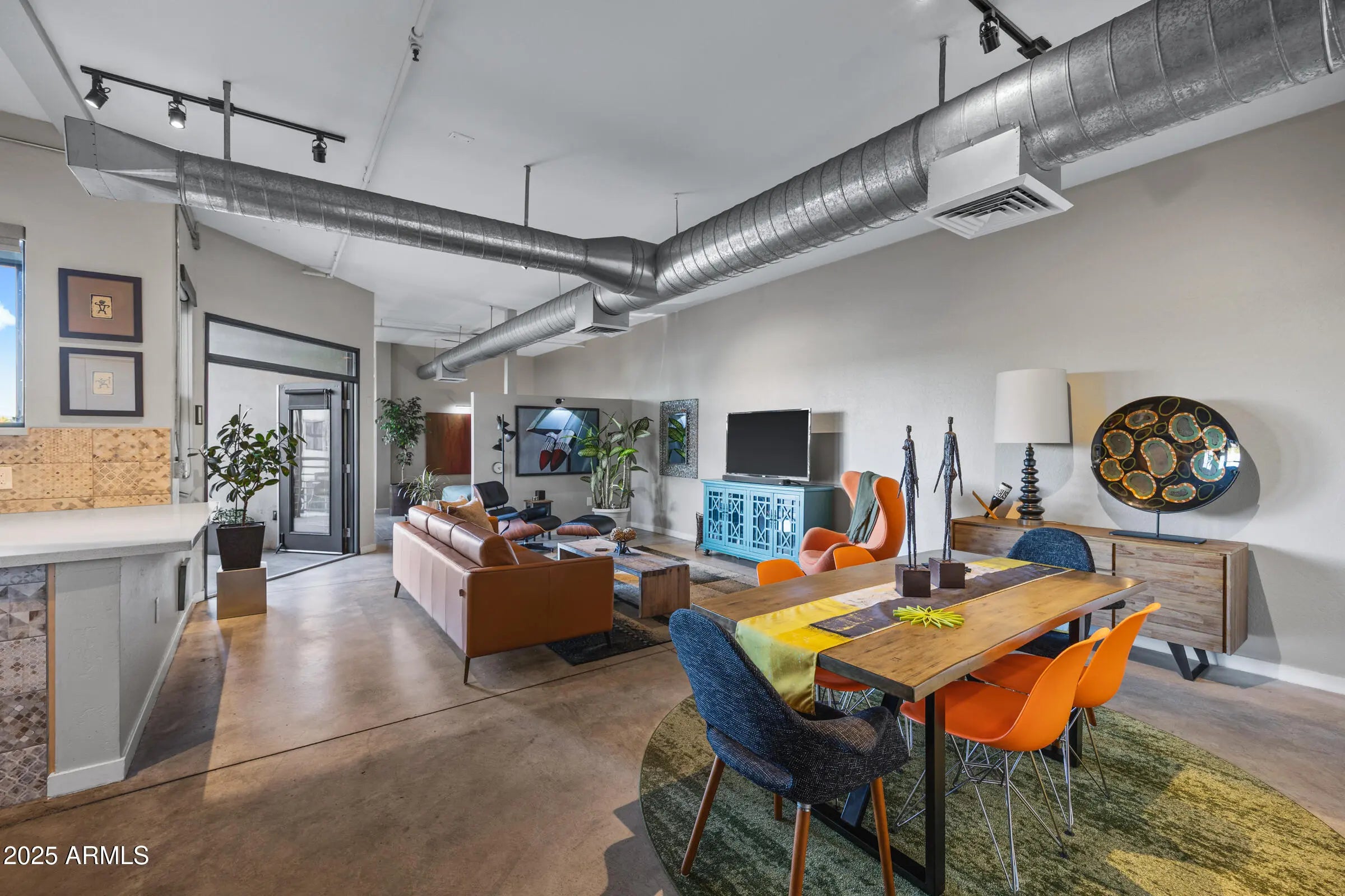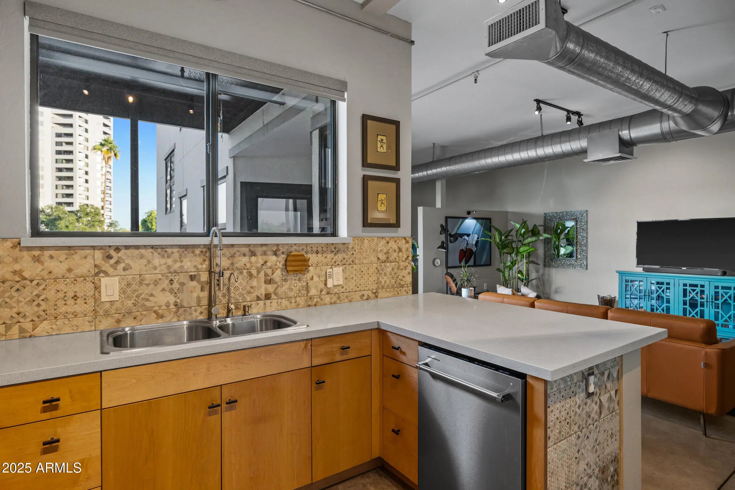 Welcome home to this stunning single-level, 2 bedroom, 2 bathroom penthouse in the highly sought-after Artisan Lofts. One of the premier view units, this residence features an oversized private patio with breathtaking views of Camelback Mountain, offering a rare blend of modern design and timeless character. Inside, you are welcomed by custom polished concrete floors, soaring ceilings, and an abundance of natural light that create an open and inspiring atmosphere throughout. The chef's kitchen is the heart of the home, showcasing warm natural wood cabinetry, luxury stainless steel appliances, a designer-selected backsplash, and sleek quartz countertops with bar seating, perfect for morning coffee or late-night conversations. The kitchen seamlessly opens to the great room, just steps from the dining area, making entertaining effortless. The primary bedroom enjoys direct Camelback Mountain views and features a spacious walk-in closet, while the primary bathroom offers a double quartz vanity and a designer walk-in shower with floor-to-ceiling glass, creating a true spa-like retreat. Every detail has been thoughtfully maintained, resulting in a home that feels both sophisticated and inviting. Step outside to your private patio to take in the stunning mountain views, and enjoy the convenience of two dedicated parking spaces. This one-of-a-kind penthouse truly captures the best of urban luxury and desert charm. Welcome home.