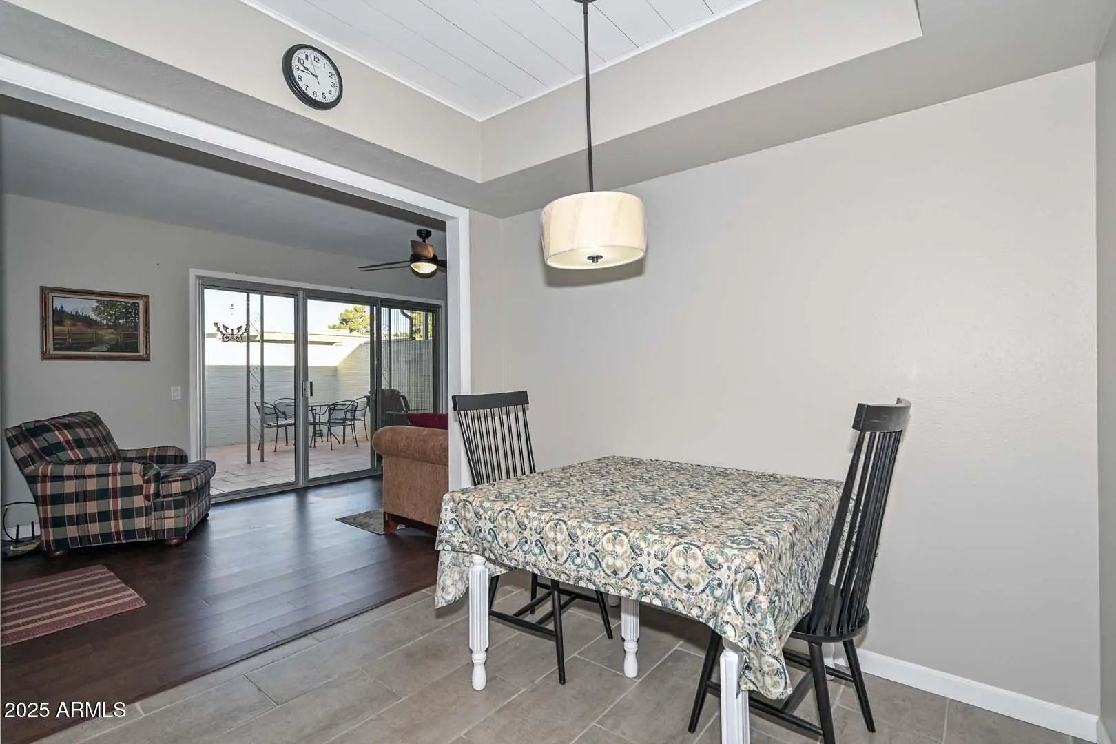 Back on market! Beautiful 2-bed 1-Bath home! Fully renovated interior showcases dark wood-look flooring throughout except tile in kitchen & bathroom, recessed lighting, dual pane windows, wood plantation shutters and ceiling fans.This home has a large great room for entertaining and a family room/Craft room with sliding glass doors to the back patio. Custom kitchen features stainless steel appliances, a tile backsplash, plenty of white cabinetry, Grainte countertops. Don't forget to look up to the shiplap ceiling with two skylights to bring in the natural light. The primary bedroom offers a wood accent wall, a walk-in closet. Bathroom with a updated vanity & Toilet. The second bedroom has an accent wall also & walkin closet. Washer & dryer included! Relax on the private covered back patio