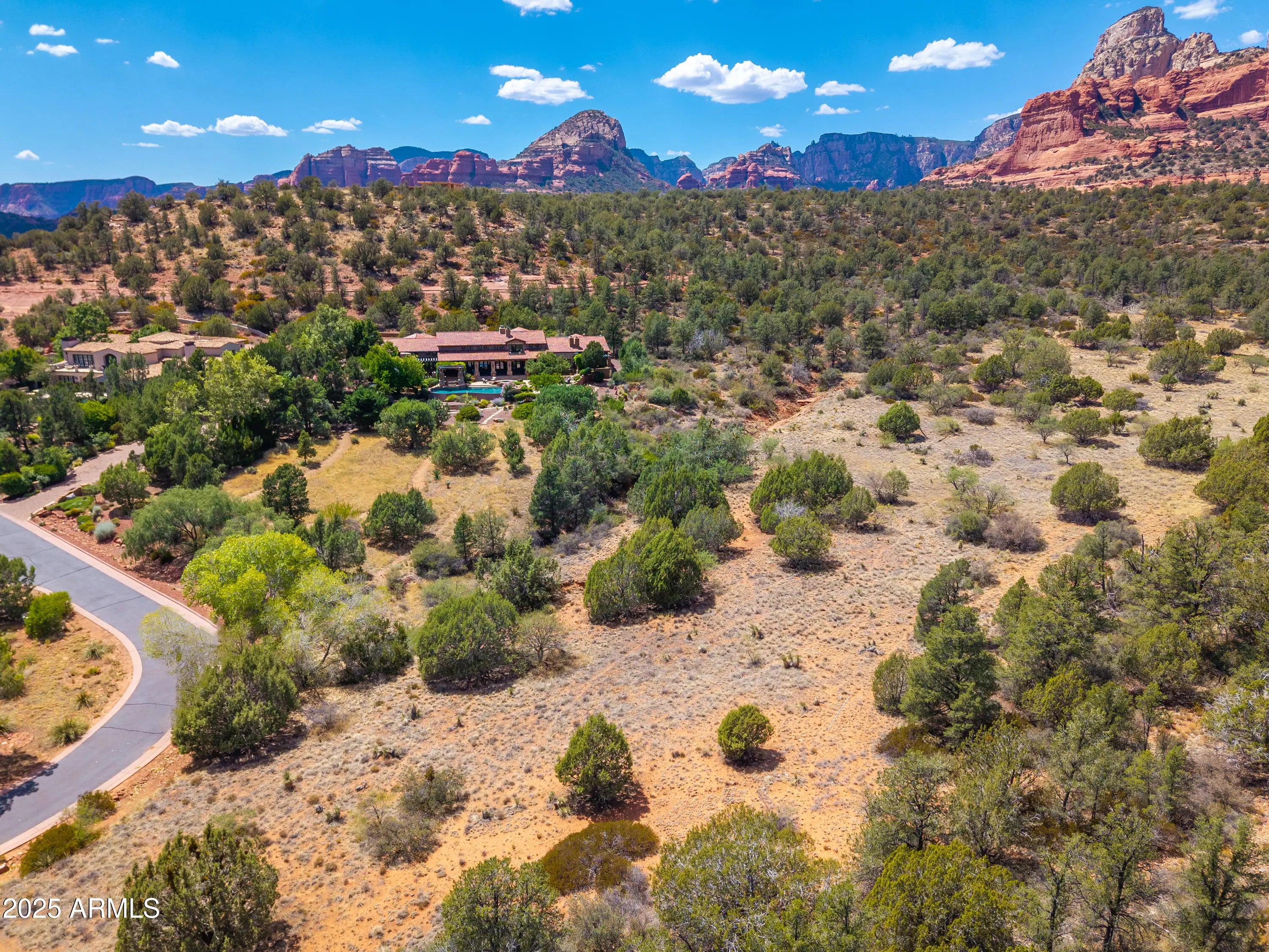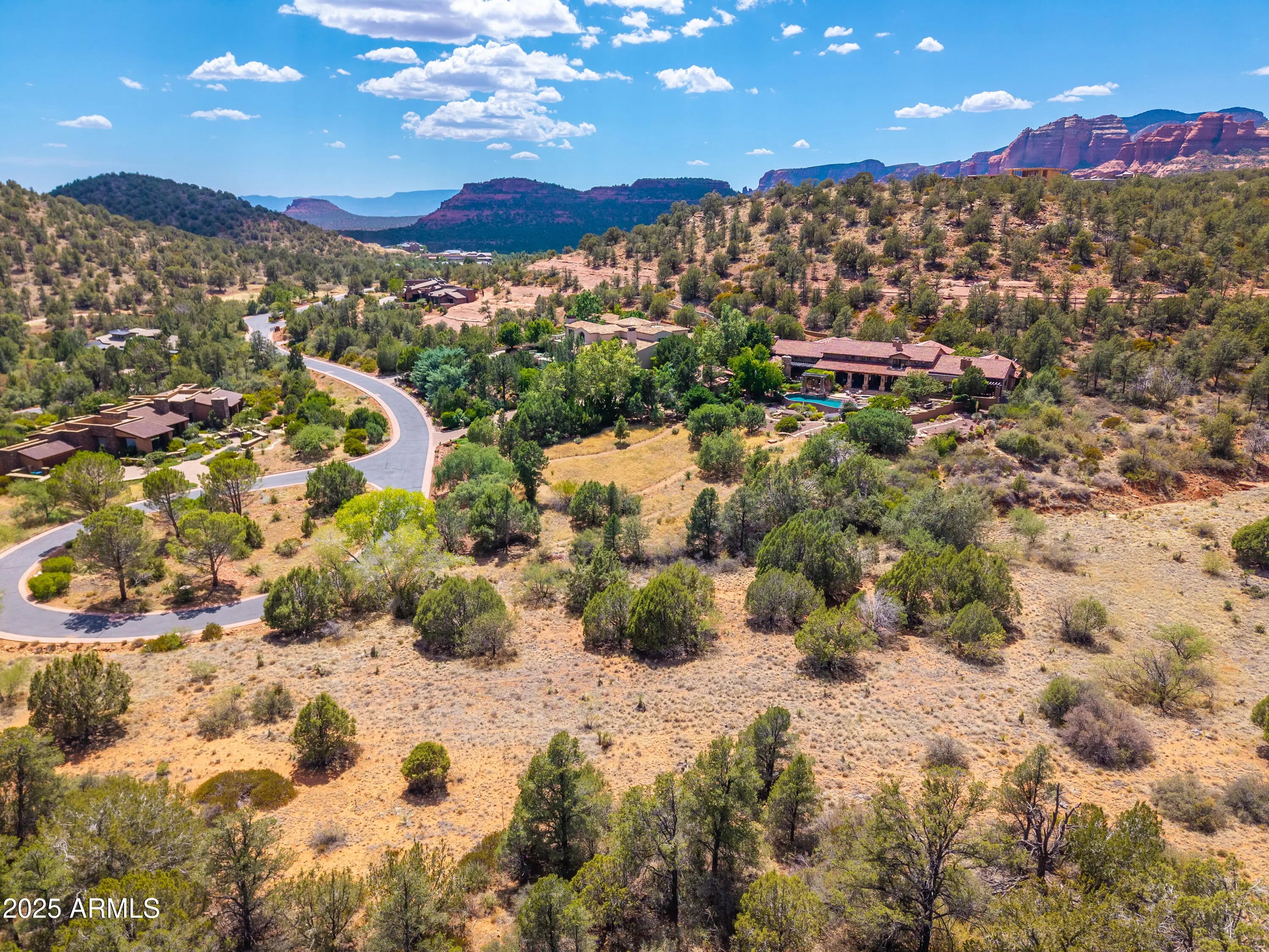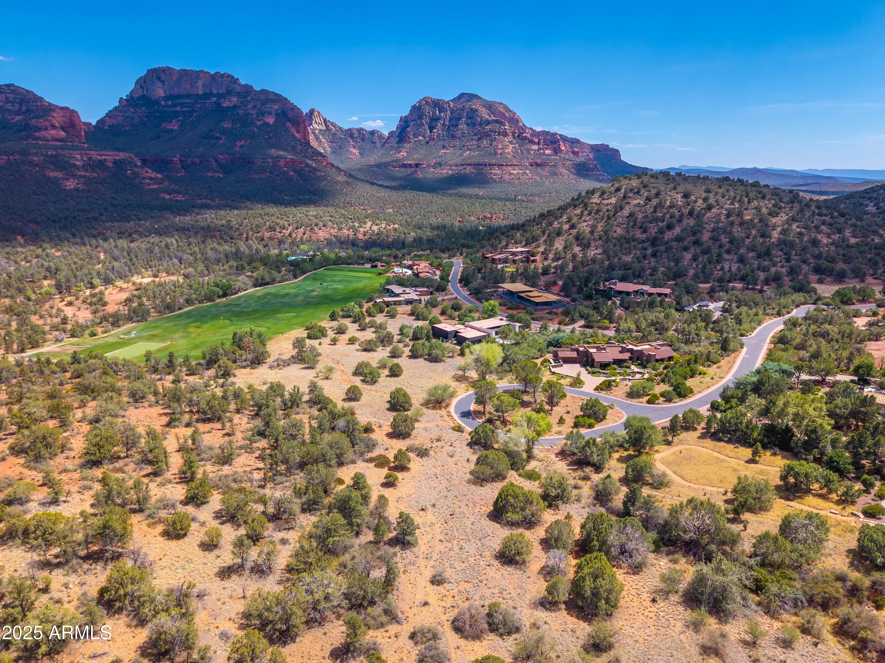 An exceptional opportunity to create a custom luxury estate in one of Sedona's most exclusive settings. Located within the prestigious Seven Canyons Golf Community, this vacant homesite offers breathtaking, unobstructed red rock views that stretch across Sedona's iconic formations and all the way back to Secret Canyon. Positioned to capture what many consider the finest panoramas in the region, this property delivers a rare blend of privacy, elevation, and natural beauty. Set within a gated community with a manned security entrance, the homesite provides both seclusion and peace of mind. The lot borders protected Coconino National Forest land, ensuring that surrounding views remain forever preserved and that the serene natural backdrop will never be compromised. The property is ideally suited for a modern luxury residence designed to embrace Sedona's indoor-outdoor lifestyle. The setting allows for thoughtful architectural possibilities such as a negative-edge pool, in-ground spas, multiple outdoor fire pits and fireplaces, and expansive outdoor dining and entertaining areasall oriented to showcase the dramatic red rock vistas, lush fairway surroundings, and star-filled night skies. The natural topography and existing vegetation provide an excellent foundation for curated landscaping, orchard trees, and shaded outdoor living spaces. Residents of Seven Canyons enjoy access to world-class amenities, including a Tom Weiskopf-designed championship golf course, an elegant clubhouse with dining and social spaces, fitness and wellness facilities, and a private, refined community atmosphere that blends seamlessly with the surrounding wilderness. The combination of luxury amenities and natural beauty makes Seven Canyons one of the most coveted residential communities in the Southwest. Whether envisioned as a primary residence, a luxury retreat, or part of a larger private compound opportunity, this homesite offers remarkable flexibility and long-term value. With protected red rock views, National Forest adjacency, proximity to the driving range, gated security, and premier golf community amenities, 160 Hidden Meadow Drive presents a rare chance to build something truly extraordinary in Sedona. The architectural image shown is an AI-generated rendering and is intended for conceptual visualization purposes only. It does not represent an existing structure or approved plans.