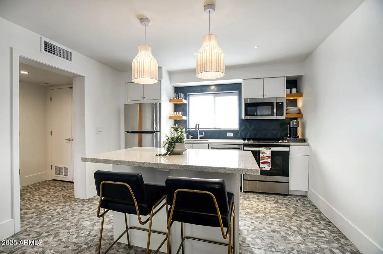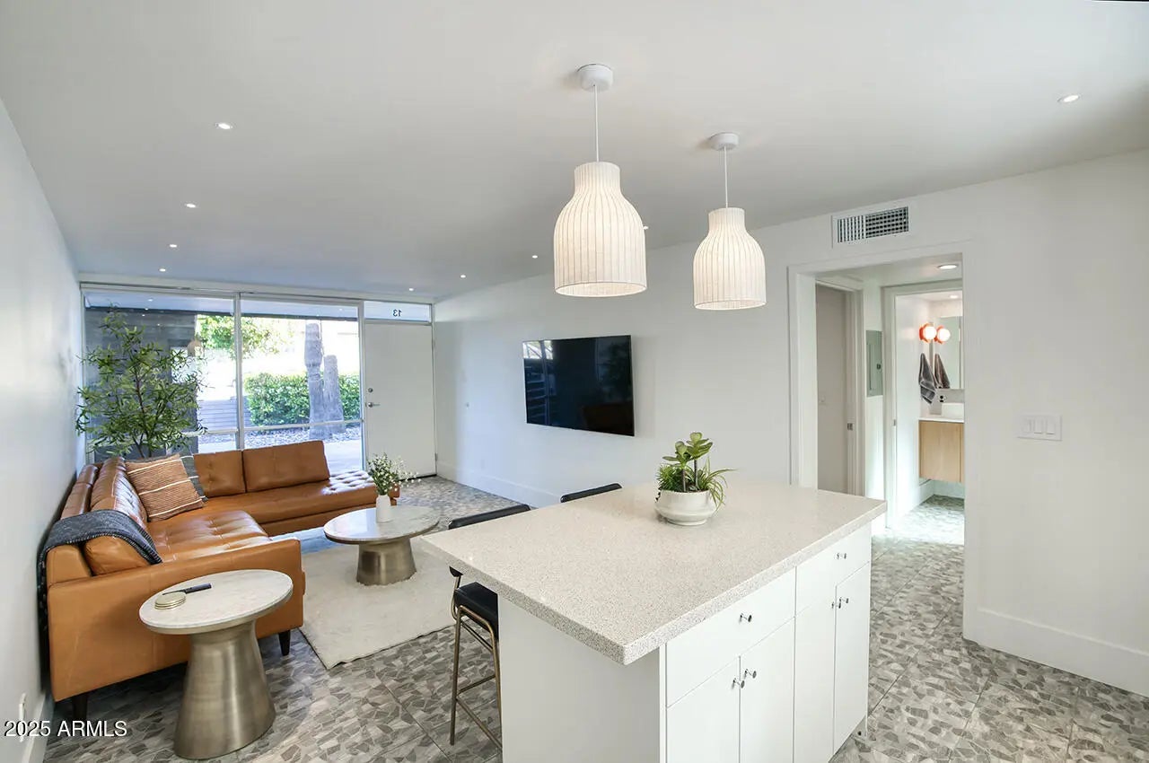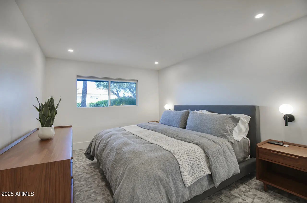 Now available in the highly sought-after mid-century modern community of Bon Vie in Old Town Scottsdale. This FURNISHED rare lower-level condo features a large private outdoor patio and was completely remodeled in 2022 by Kaitlyn Wolfe of Iconic Design, blending timeless design with modern finishes. Ideally located near the Scottsdale Civic Center, Arts & Nightlife District, Chicago Cubs Spring Training Facility, and an array of restaurants and shopping. Just steps from the Scottsdale Greenbelt, it's perfect for walking, biking, and enjoying the outdoors. Opportunities in Bon Vie are limited—this is iconic Old Town living at its best.