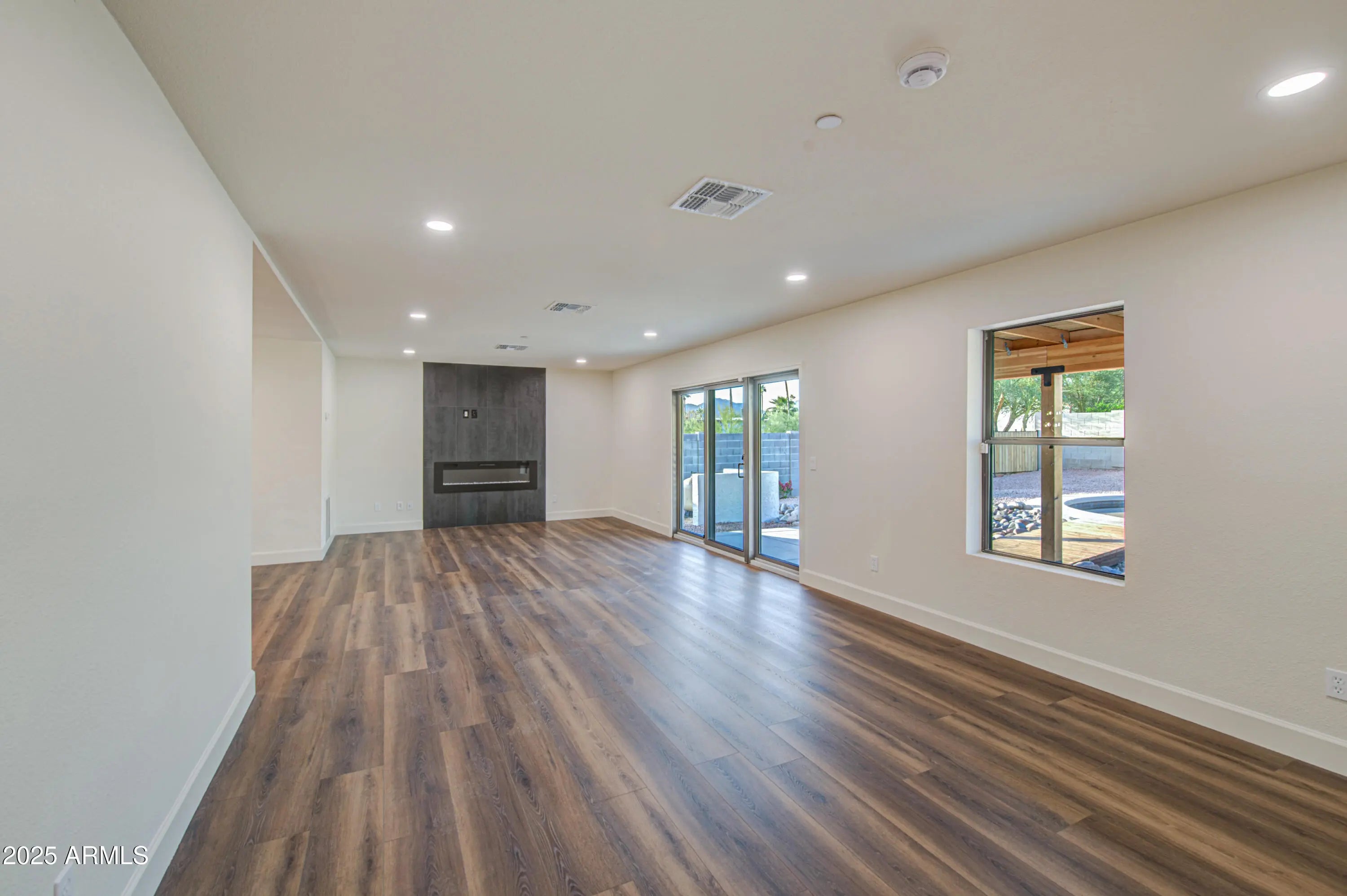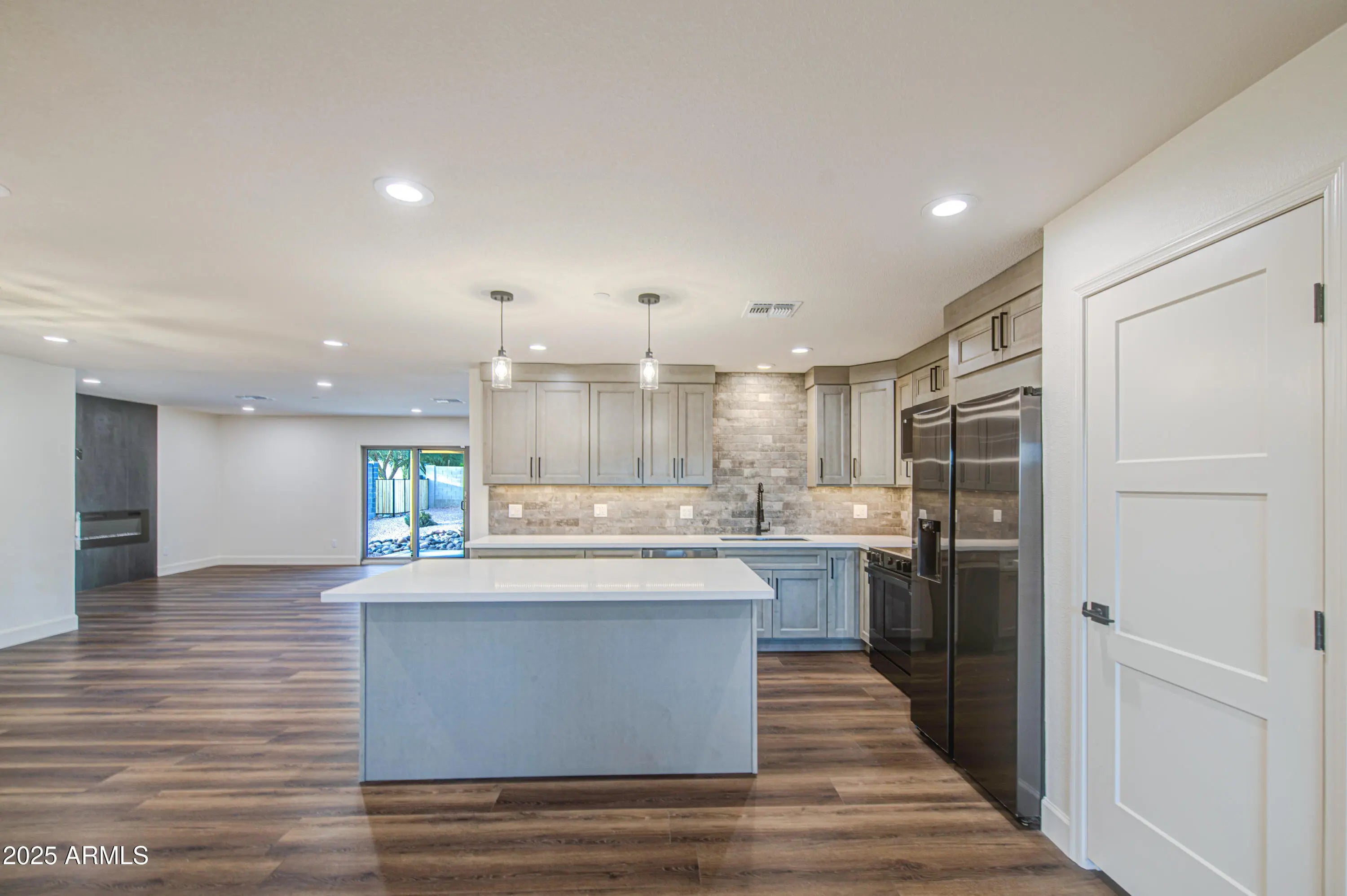 This exceptional fully custom remodeled home offers a sophisticated blend of luxury and craftsmanship. Featuring 4 bedrooms and 2.5 baths, the residence showcases a brand-new Samsung appliance package, Calacatta quartz countertops in the kitchen and baths, upgraded cabinetry, and a sleek electric fireplace. Thoughtfully upgraded with brand-new fire sprinklers throughout. The master bedroom includes a large walk-in closet, custom walk in shower paired with a double vanity sink. Outdoor living is elevated with a pavered front courtyard, large covered patio, and a generous backyard with endless potential, complete with a pebble-tech finished pool. The roof is approximately 5 years old (additional brand new roof on addition). Move-in ready
