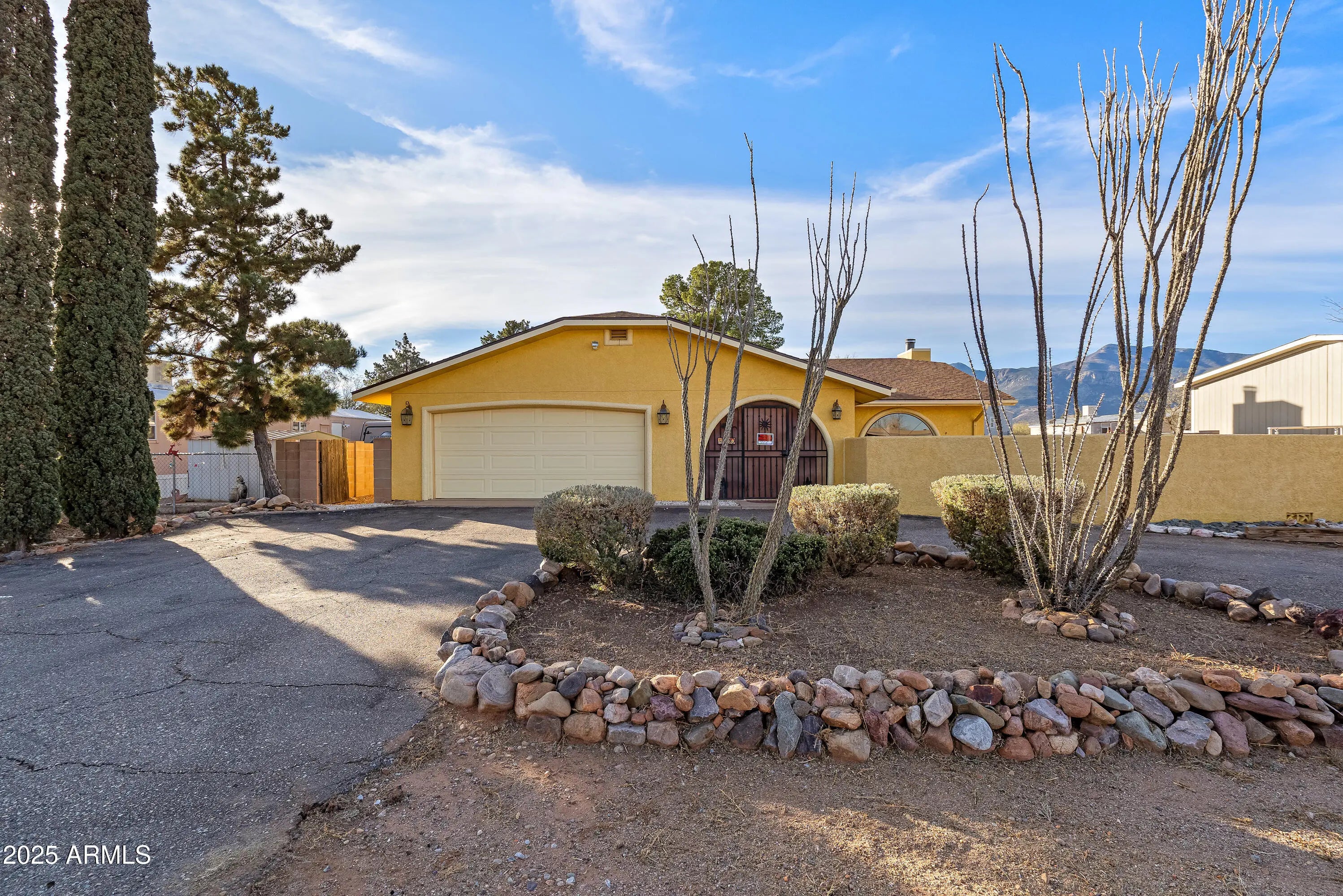 THIS IS IT! Exceptional value for a large, move-in ready home on a nice sized lot with mountain views. Upon arriving you'll appreciate the 2 car garage and great covered courtyard area. The inside features a huge tiled-floor living room, an extra large kitchen with lots of counter space and cabinetry, and a country breakfast nook. The primary bedroom has two closets and the bathroom has a nice stand up shower. Large garden tub/shower combo is featured in the hall bathroom. No carpet in this house! Outside you'll enjoy a large ramada/deck area and great mountain views, plus a fenced yard. Home Starts Here!